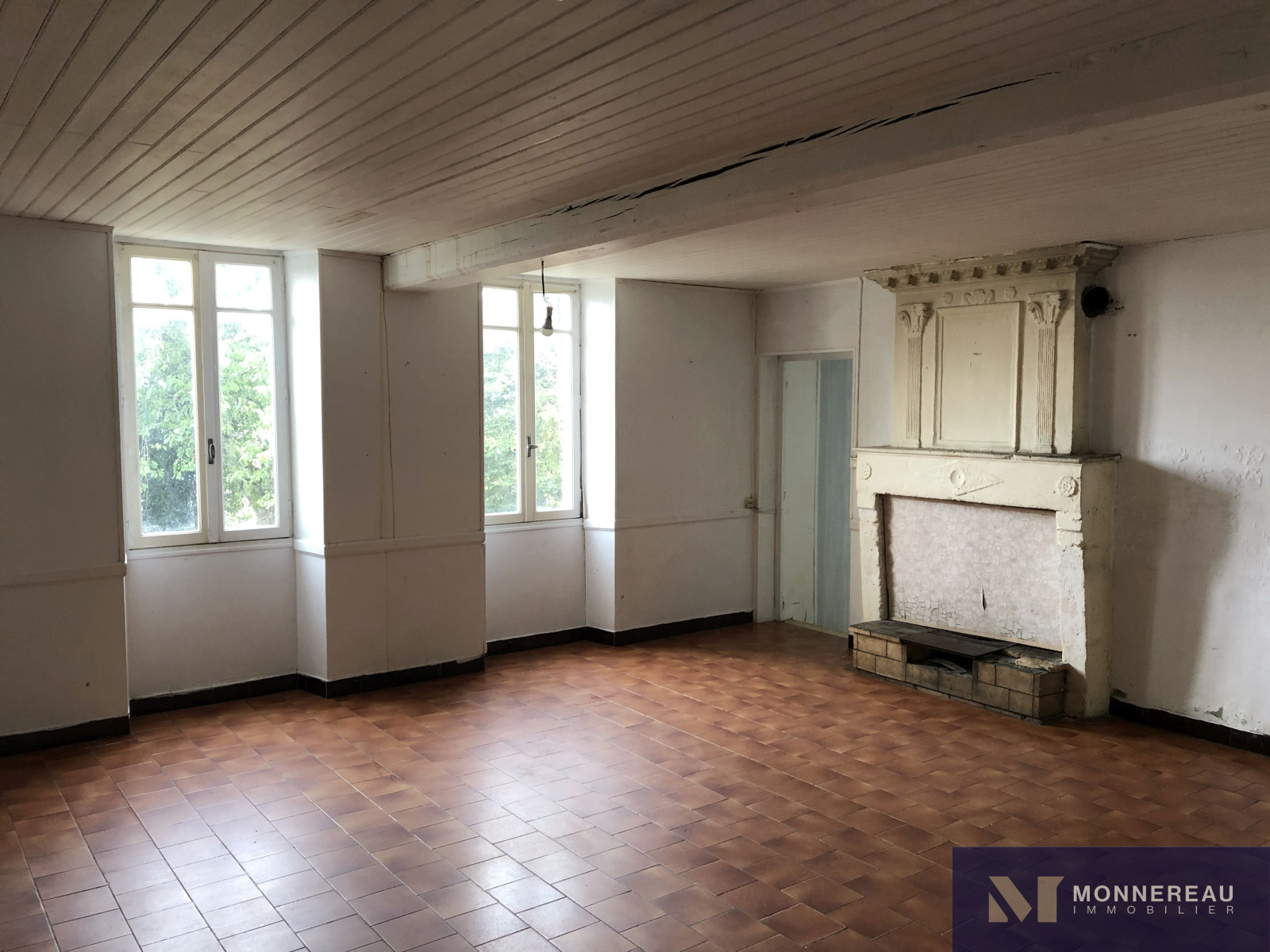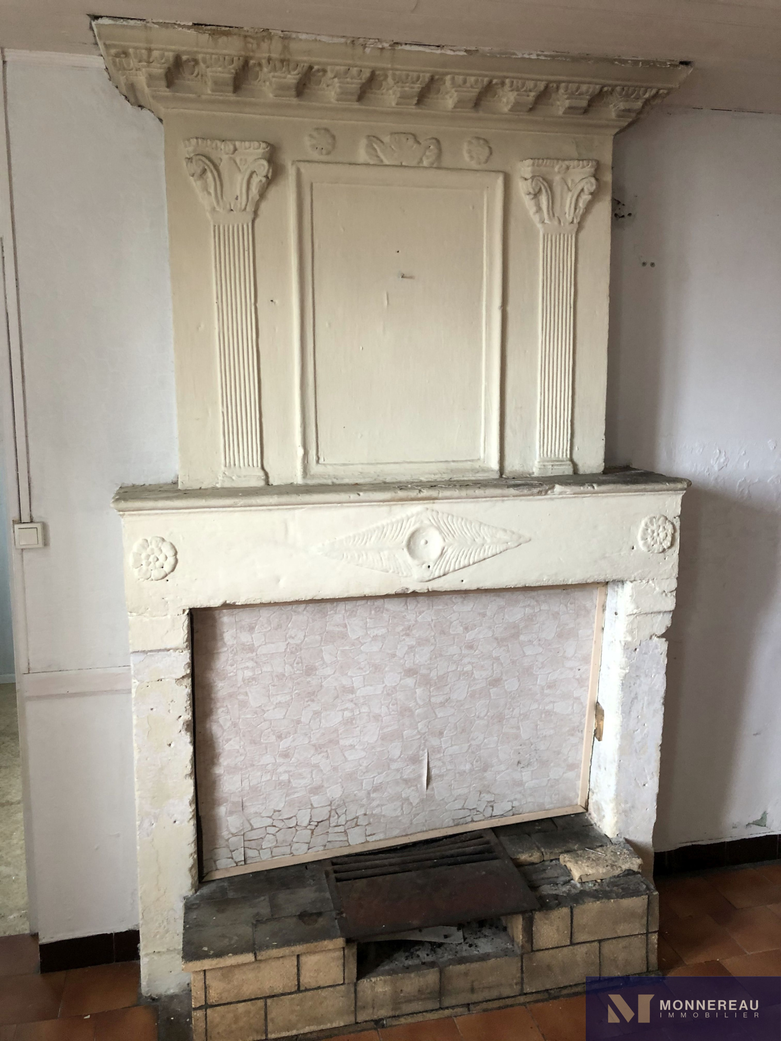 Sol carrelage, cheminée
