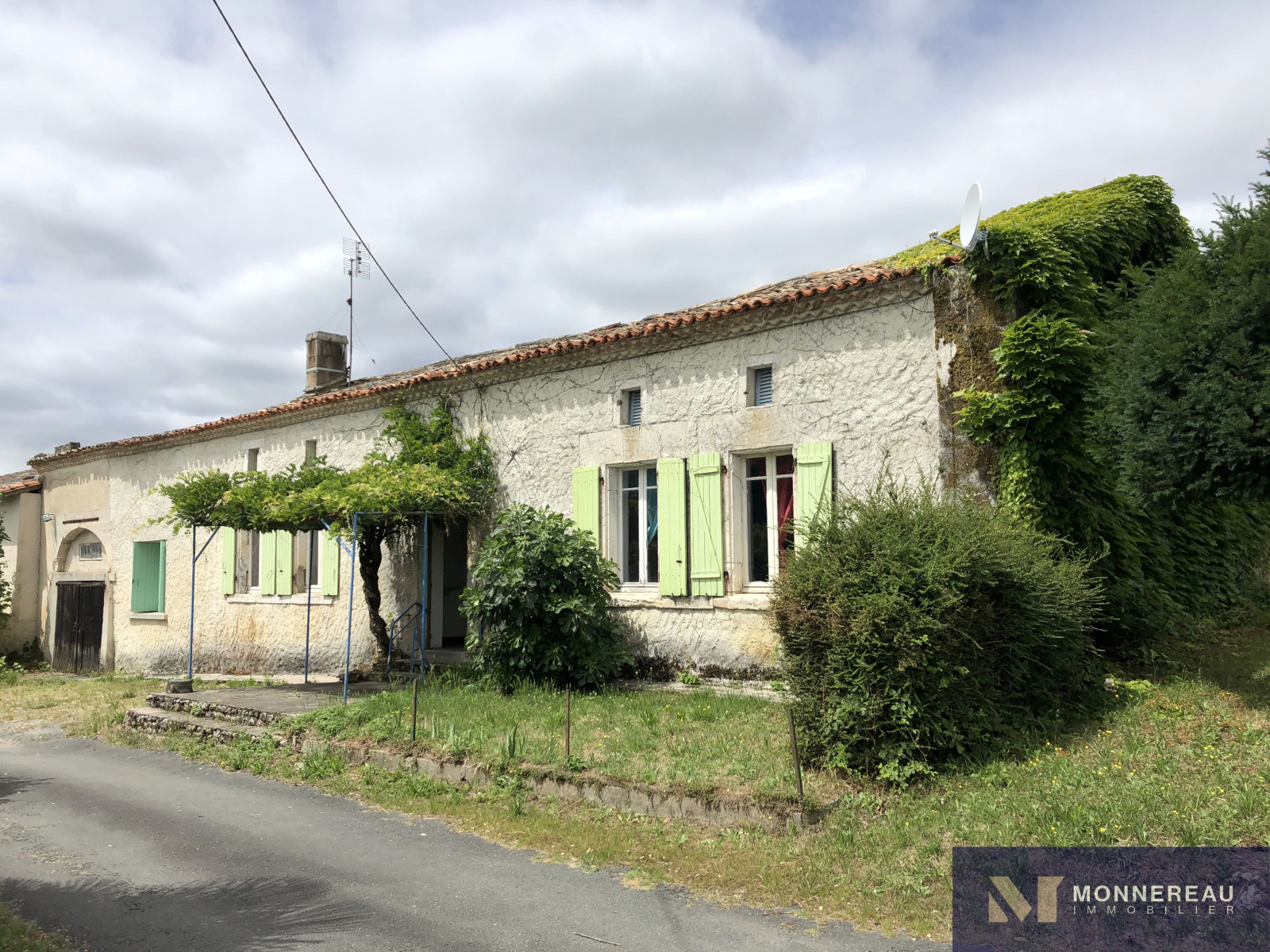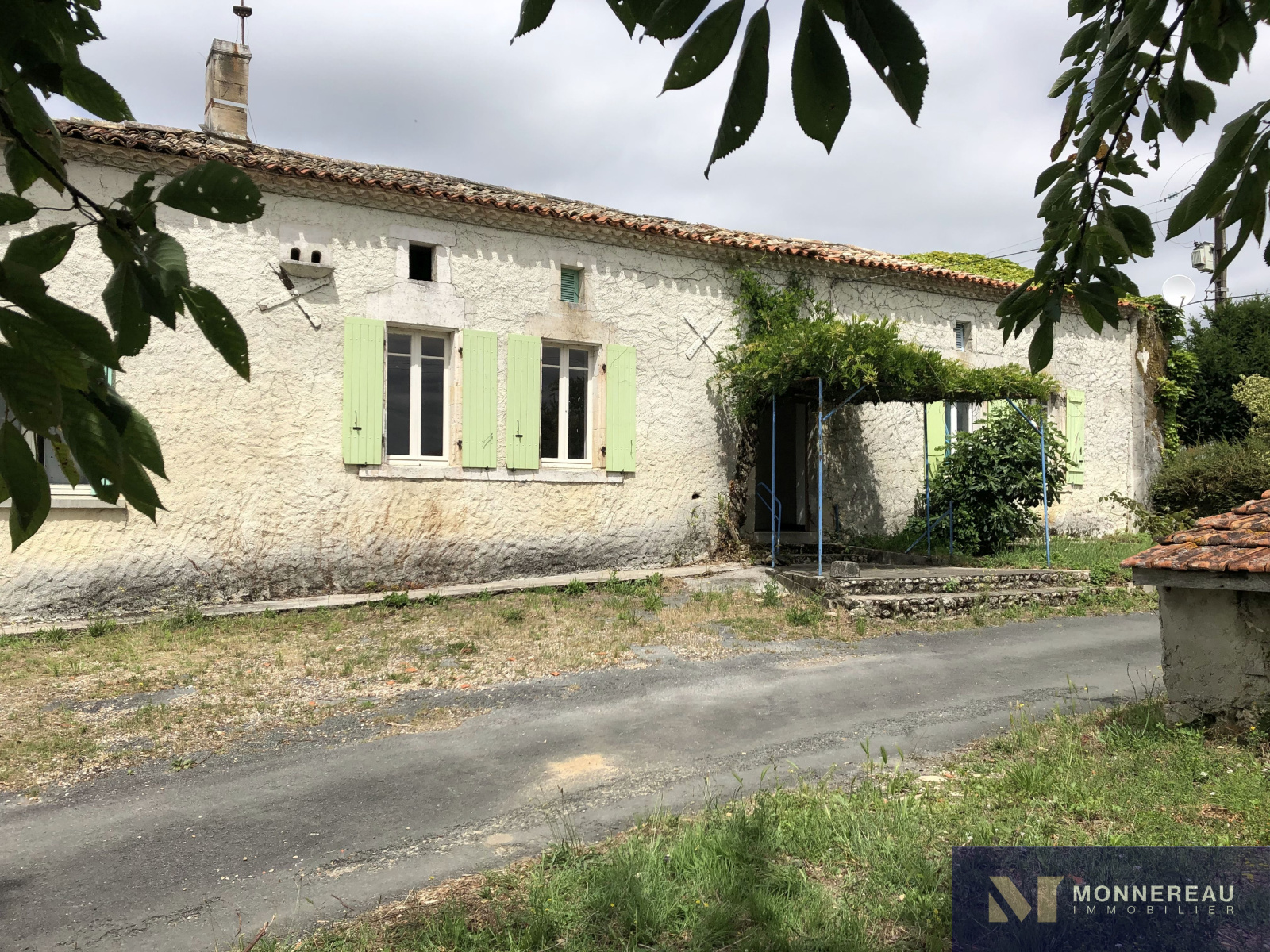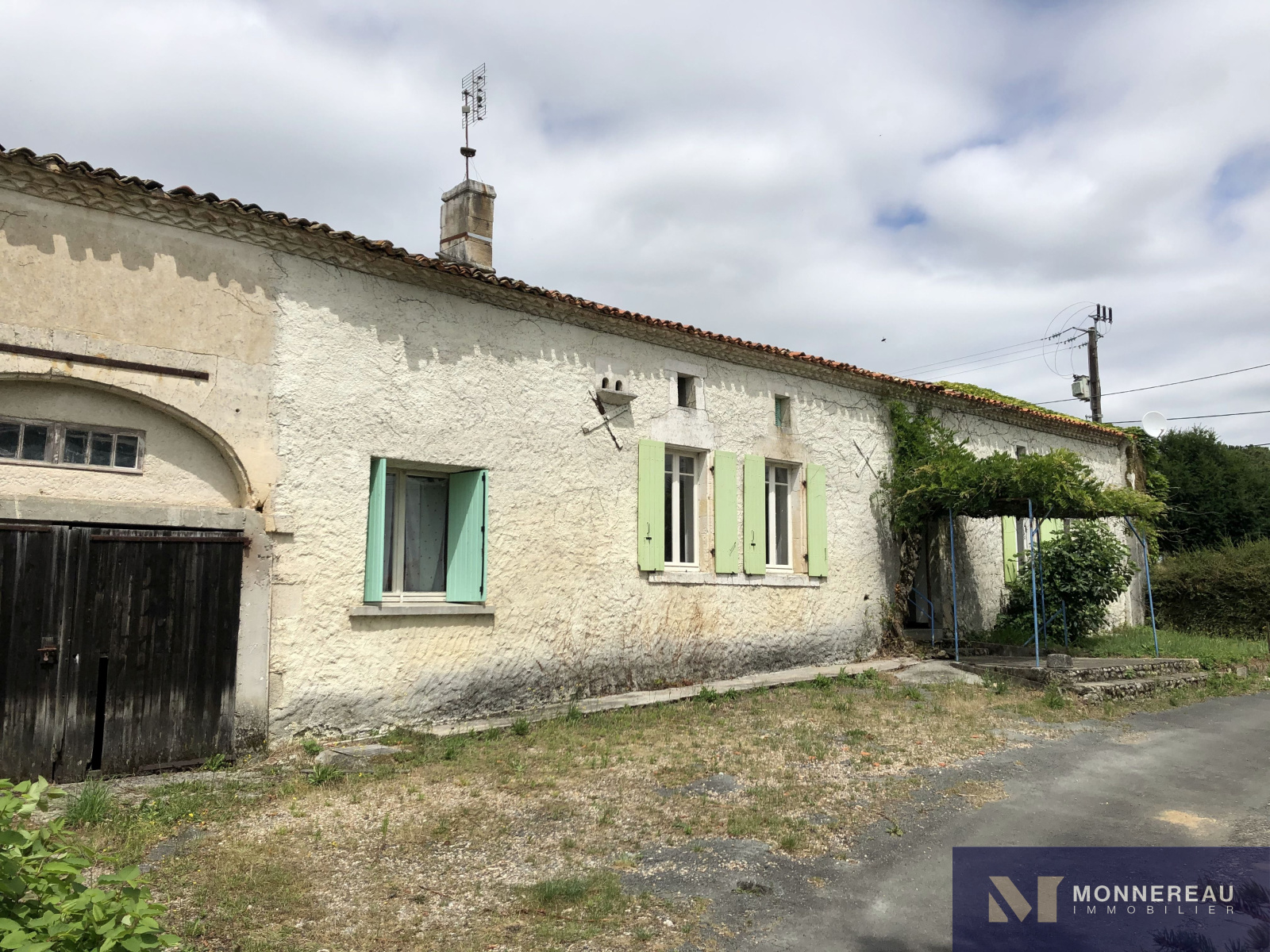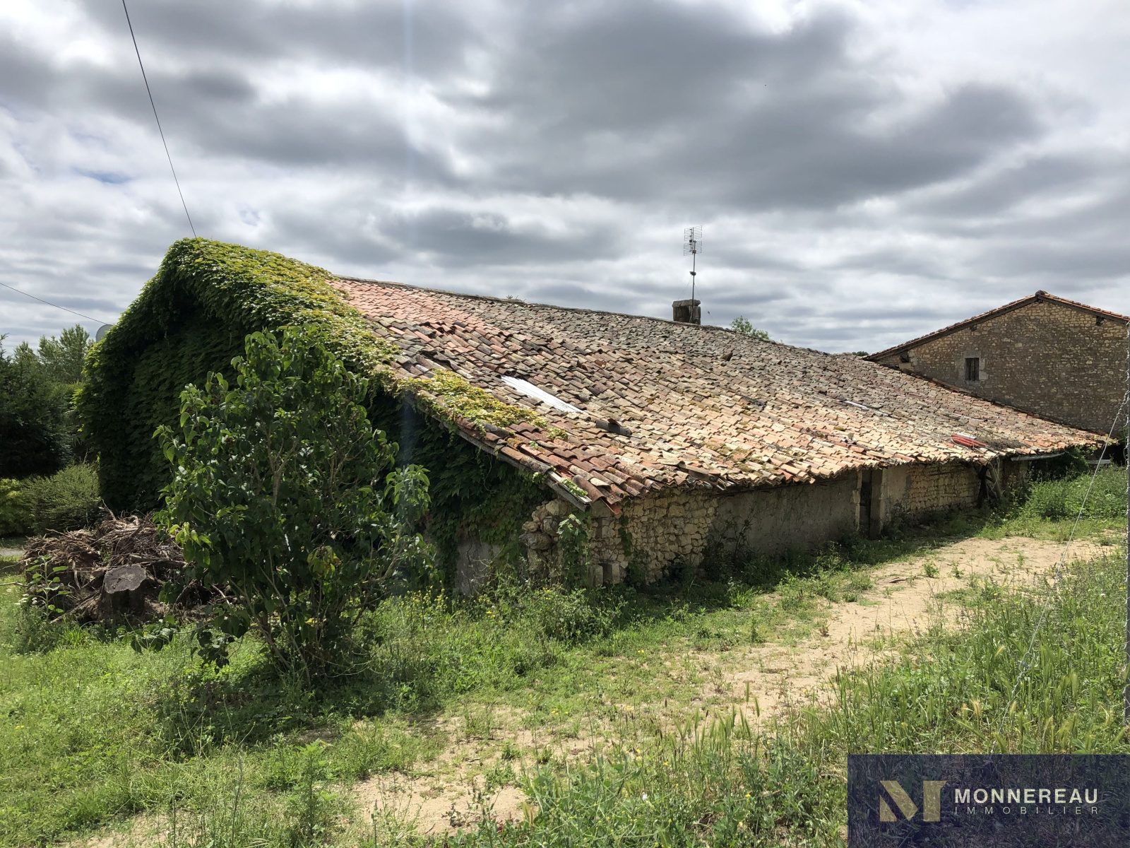 Entre BARBEZIEUX et BAIGNES - 5 min échangeur N10 - Sur la commune de MONTMERAC, dans un petit hameau, au calme - Longère en pierre à réhabiliter entièrement, typique du Sud Charente. Elle est édifiée sur un terrain en deux parties pour environ 1000 m² au total. Il n'y a pas de jardin attenant mais il est possible de créer des espaces intimes extérieurs. La bâtisse d'environ 100 m² habitables au sol nécessite des travaux importants, notamment de toiture (devis de 40.000€ pour charpente et couverture si on rénove la totalité du bâtiment). Entrée, pièce de séjour, trois chambres, salle d'eau, grenier. Ancien chai sur l'arrière de 90 m² et grange attenante de 78 m². Annexe. Exclusivité.
