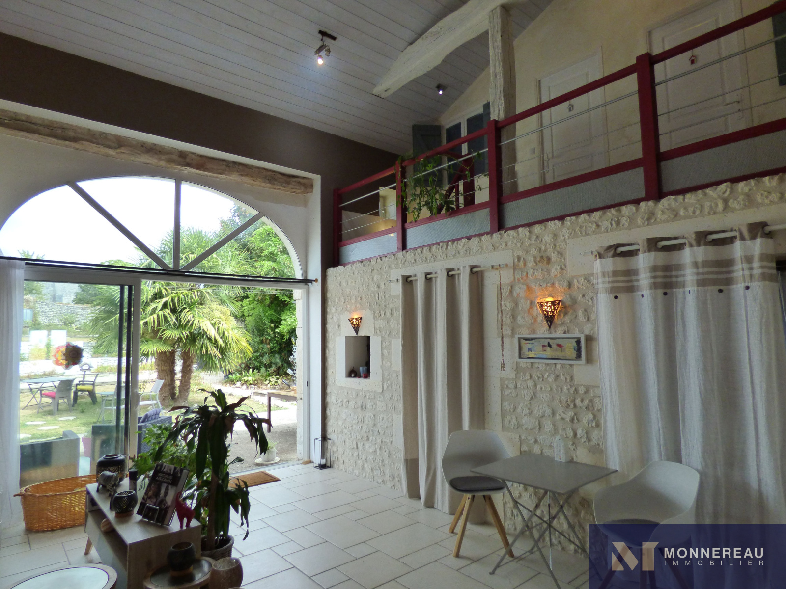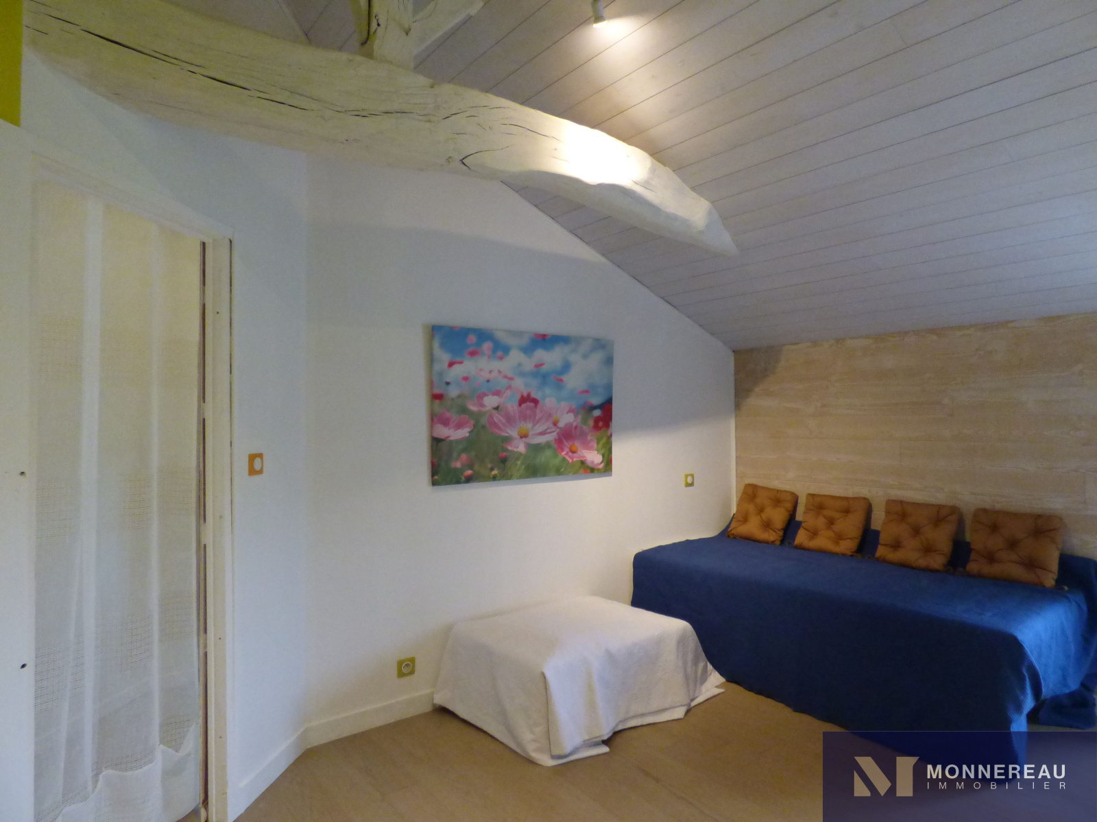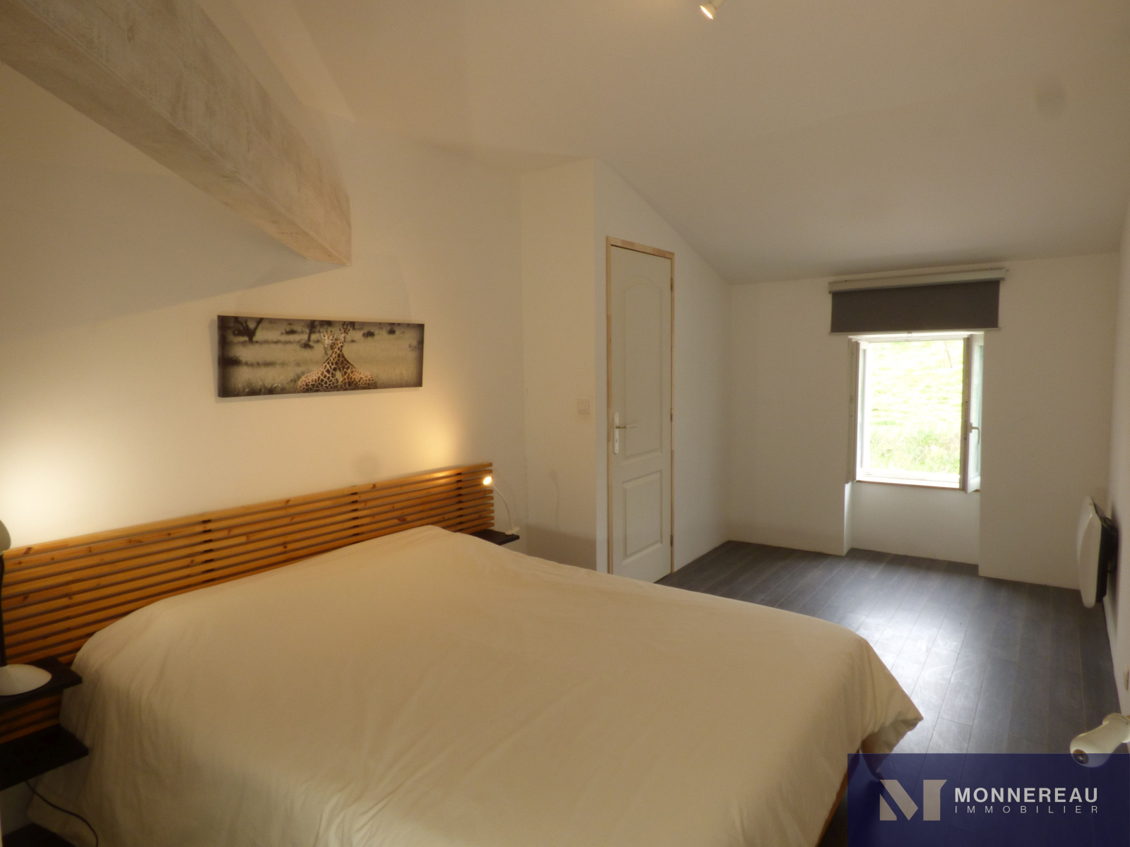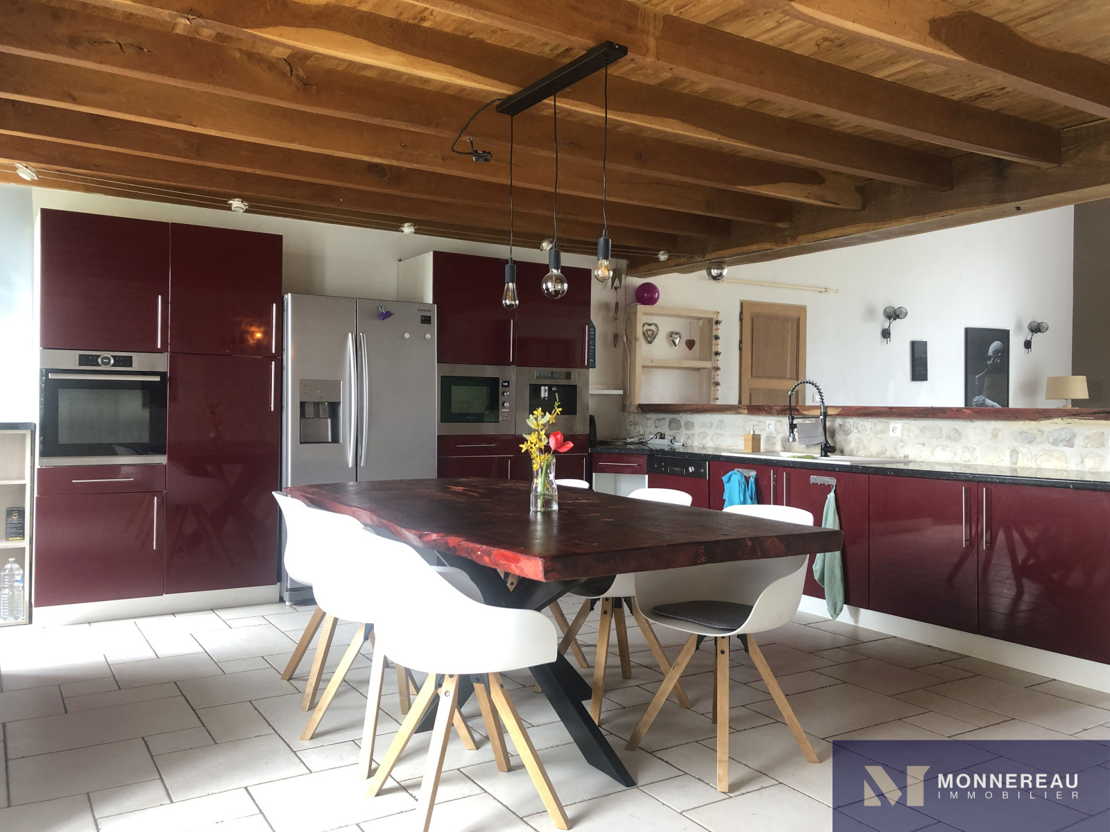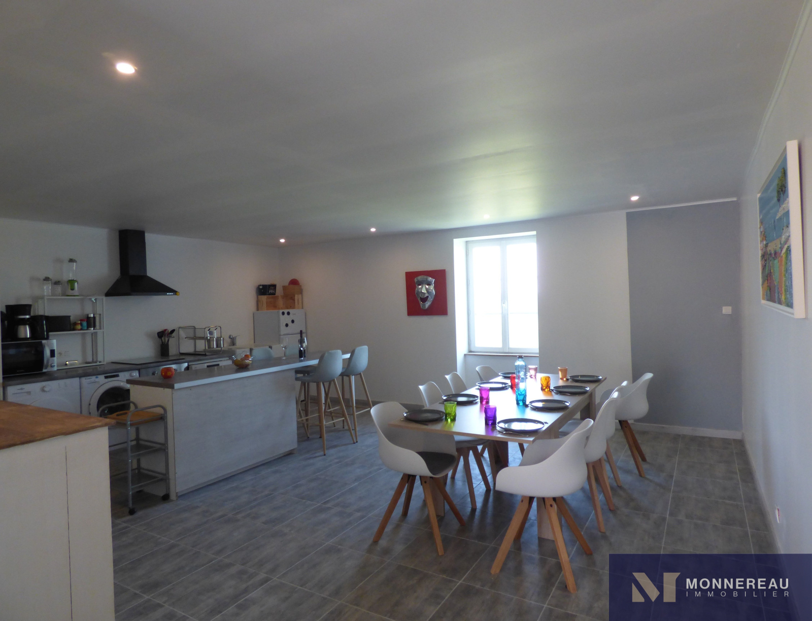 Entre Barbezieux et Chateuneuf (16) - Grande maison ancienne, rénovée récemment, idéale pour une famille nombreuse. Elle se trouve dans un environnement très agréable, sans nuisance et sans voisin proche. Edifiée sur 1685 m² de terrain, la bâtisse laisse de la place au jardin en grande partie clos. Il est à taille humaine et facile d'entretien. La demeure offre de très beaux volumes sur environ 232 m² habitables. Beau séjour/cuisine équipée de 64 m² baigné de lumière par une vaste baie cintrée. Une grande entrée avec placards distribue l'étage principale. On y trouve 4 chambres et salle de bains. Une salle à manger et une chambre avec salle d'eau complètent le rez-de-chaussée. Un gîte de 119 m² habitables dont 3 chambres a été récemment aménagé. Cette partie est indépendante mais peut communiquer. Chauffage au sol par pompe à chaleur dans la maison principale. Abri de jardin et abri pour voitures. Piscine chauffée. Le charme de la pierre. Exclusivité !