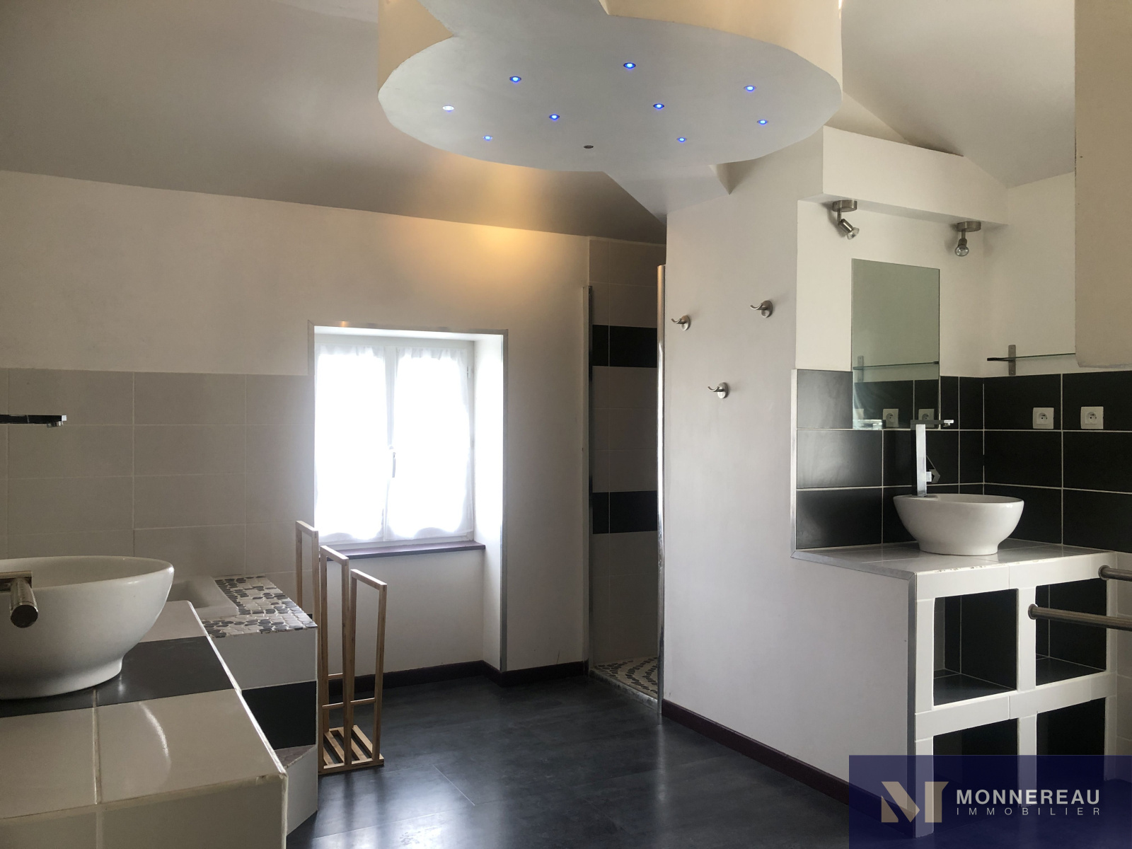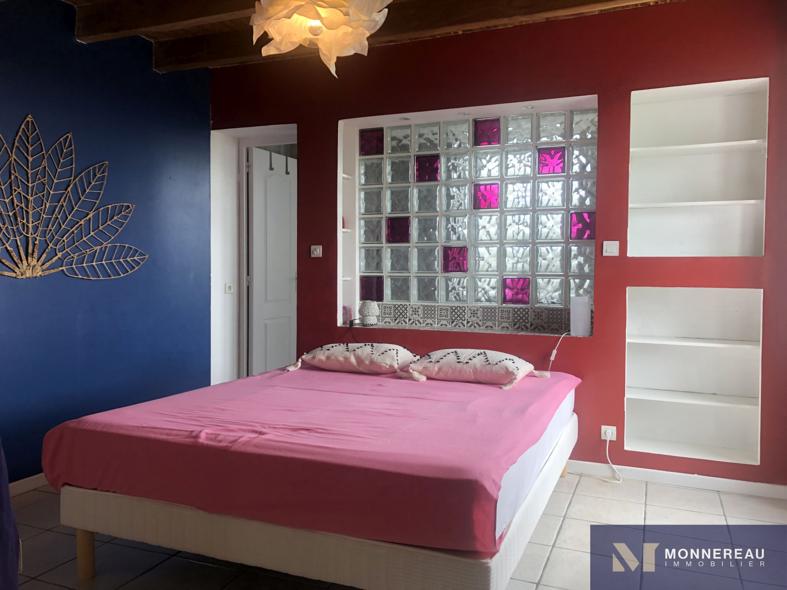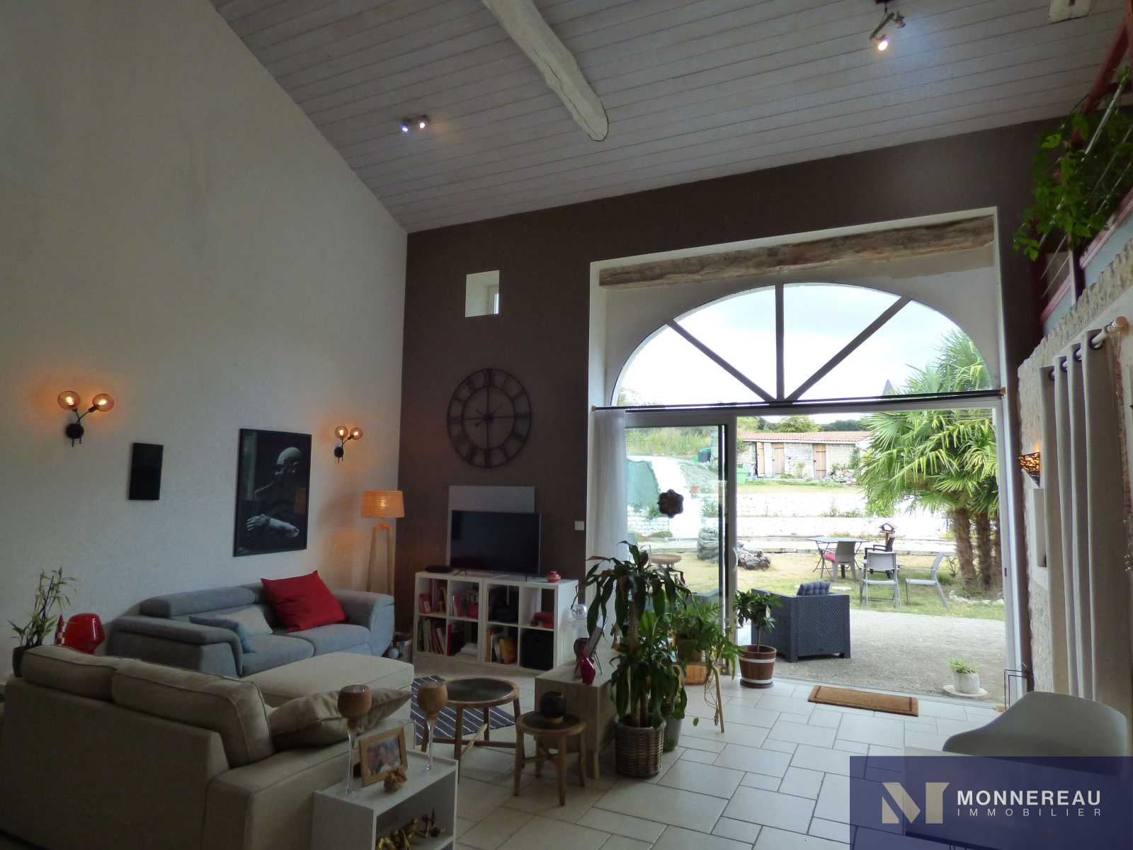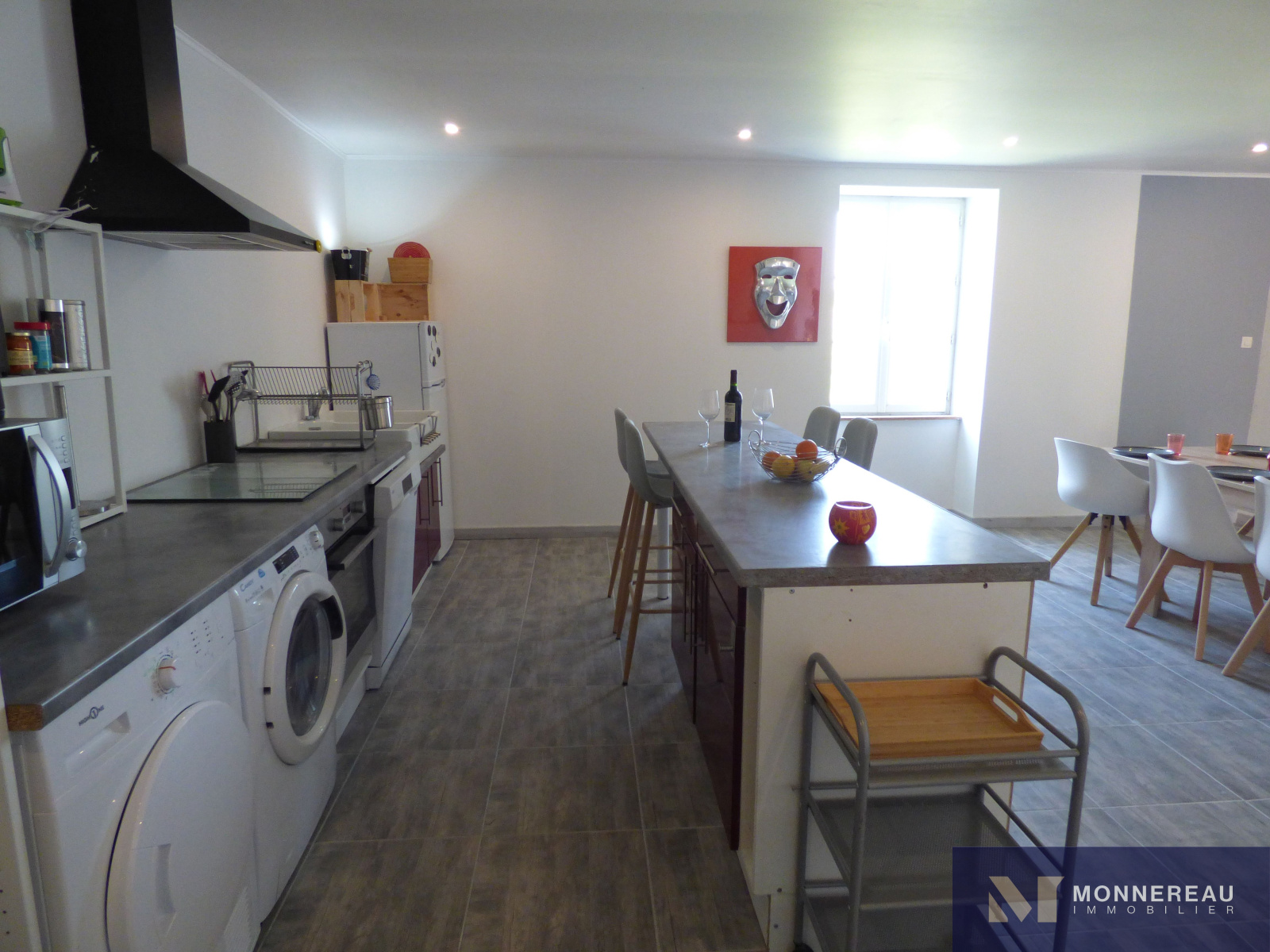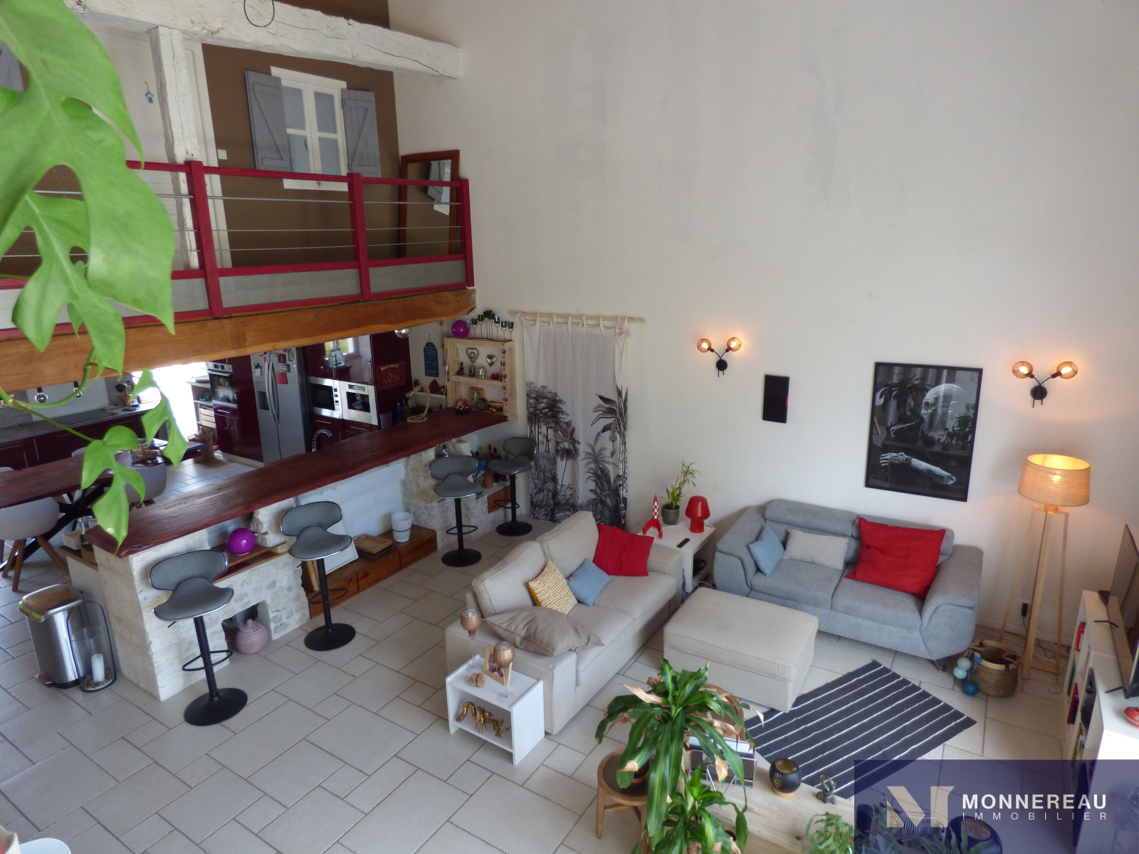 Entre Barbezieux et Chateuneuf (16) - Grande maison ancienne, rénovée récemment, idéale pour une famille nombreuse. Elle se trouve dans un environnement très agréable, sans nuisance et sans voisin proche. Edifiée sur 1685 m² de terrain, la bâtisse laisse de la place au jardin en grande partie clos. Il est à taille humaine et facile d'entretien. La demeure offre de très beaux volumes sur environ 232 m² habitables. Beau séjour/cuisine équipée de 64 m² baigné de lumière par une vaste baie cintrée. Une grande entrée avec placards distribue l'étage principale. On y trouve 4 chambres et salle de bains. Une salle à manger et une chambre avec salle d'eau complètent le rez-de-chaussée. Un gîte de 119 m² habitables dont 3 chambres a été récemment aménagé. Cette partie est indépendante mais peut communiquer. Chauffage au sol par pompe à chaleur dans la maison principale. Abri de jardin et abri pour voitures. Piscine chauffée. Le charme de la pierre. Exclusivité !