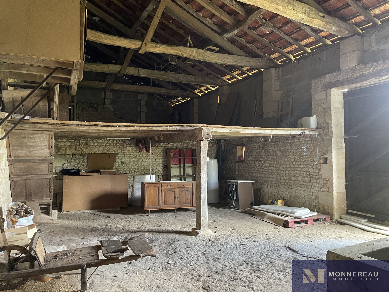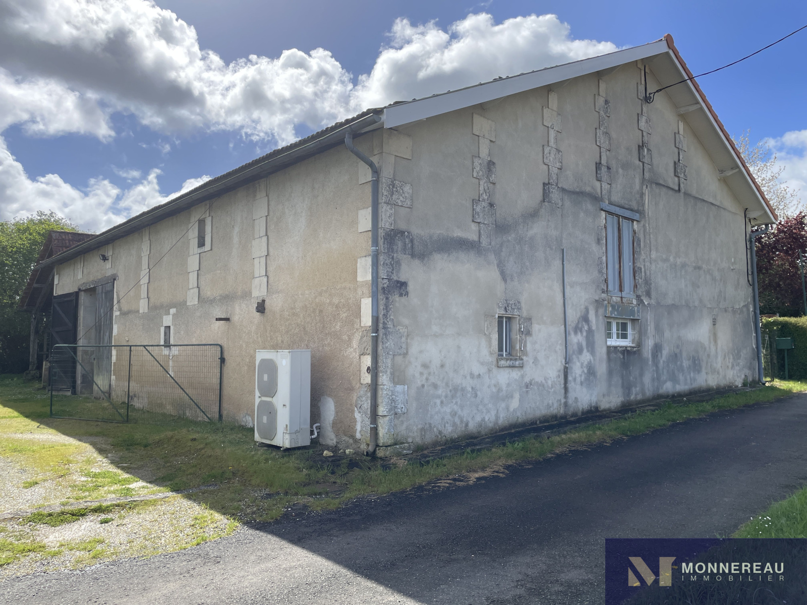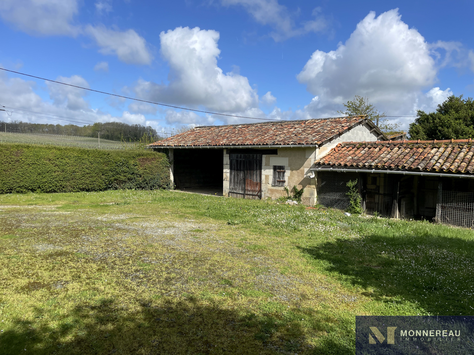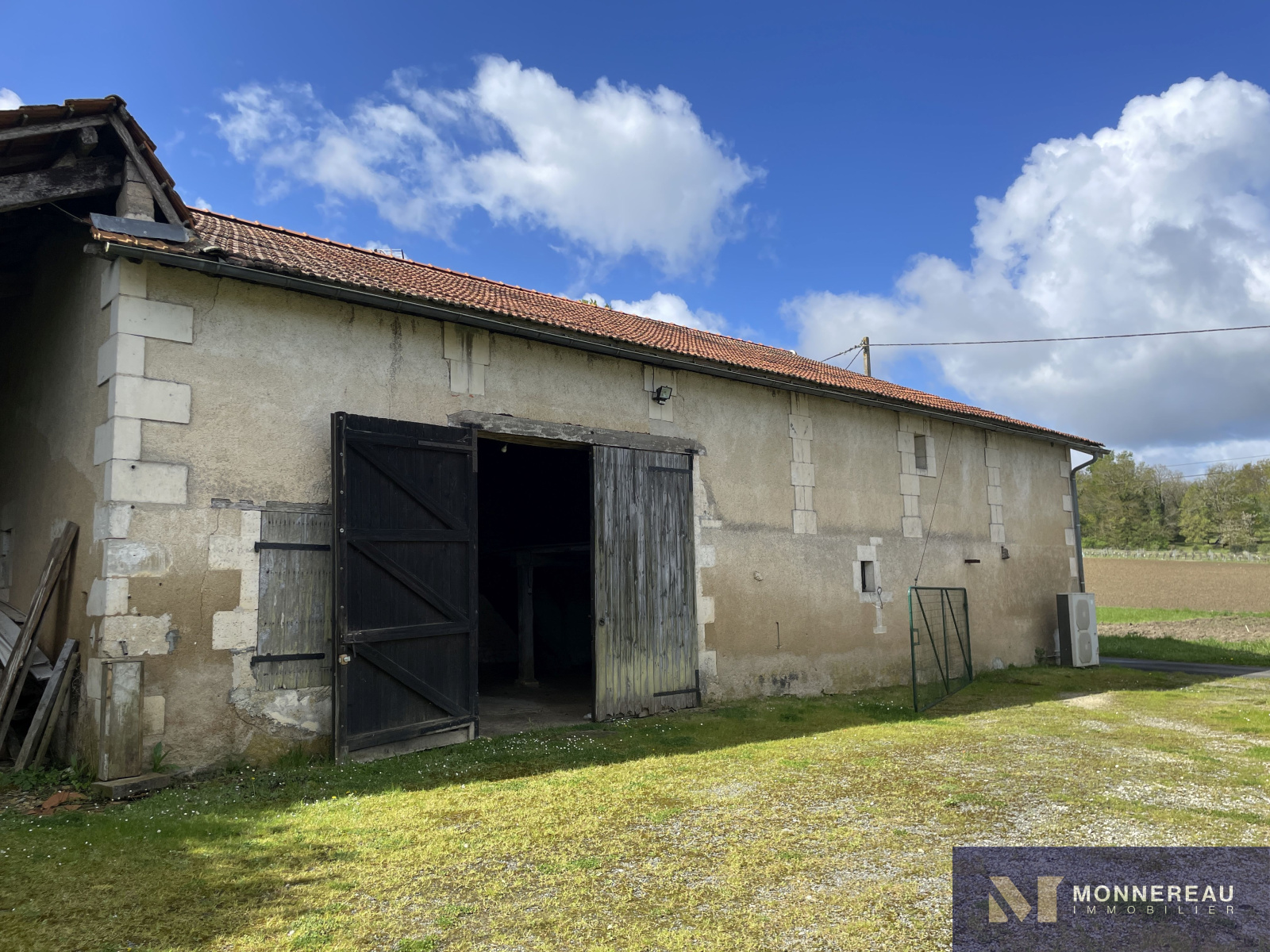 Entre BARBEZIEUX et BAIGNES (16) - Proche des échangeurs N10. Jolie maison ancienne, au calme d'un petit hameau, d'environ 92 m² habitables de plain-pied. Des travaux d'isolation et de modernisation sont à prévoir. Elle est pour autant entretenue et habitable en l'état. Entrée sur cuisine aménagée, séjour avec cheminée, deux chambres et salle d'eau. La grange attenante de 72 m² au sol offre d'immenses possibles. Grenier aménageable. Chauffage central par pompe à chaleur. Toiture de l'habitation refaite en 2022. Assainissement au tout à l'égout. Jardin arboré avec puits sur la façade Sud. Il offre intimité et quiétude. Terrain sur l'arrière qui donne accès à la grange, à l'appentis et aux dépendances dont un ancien four à pain.