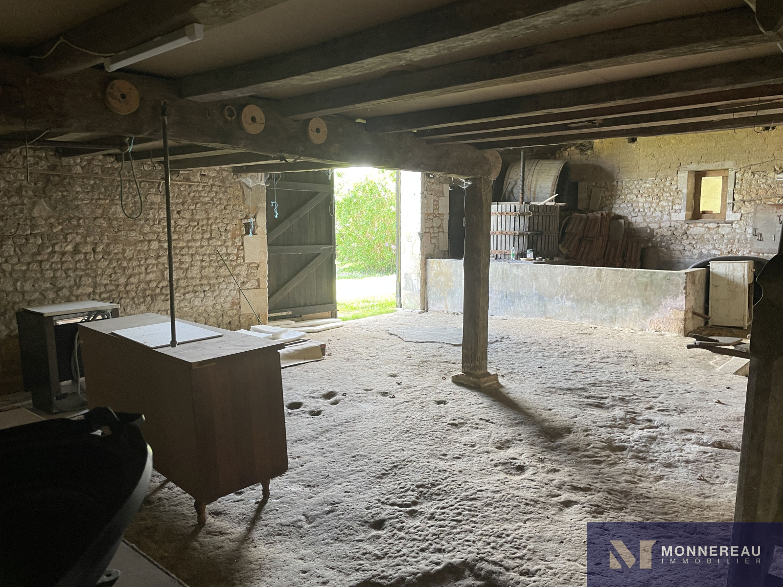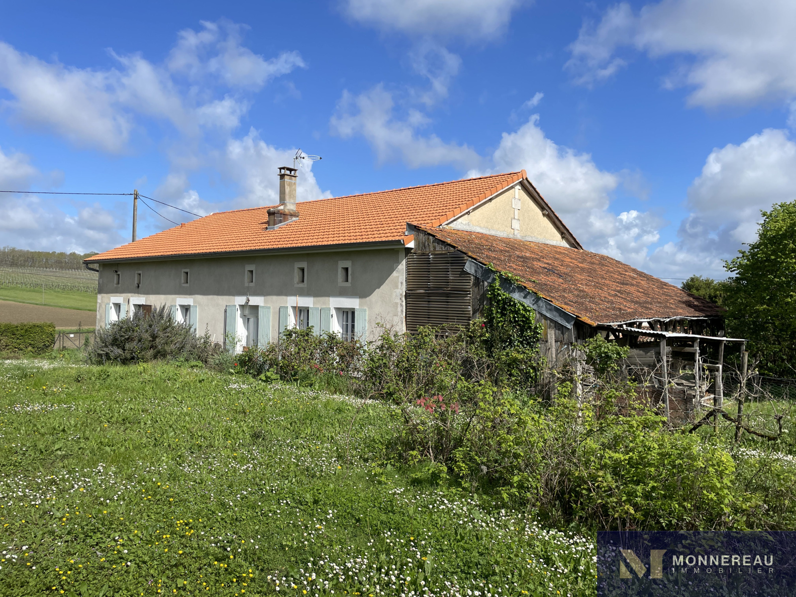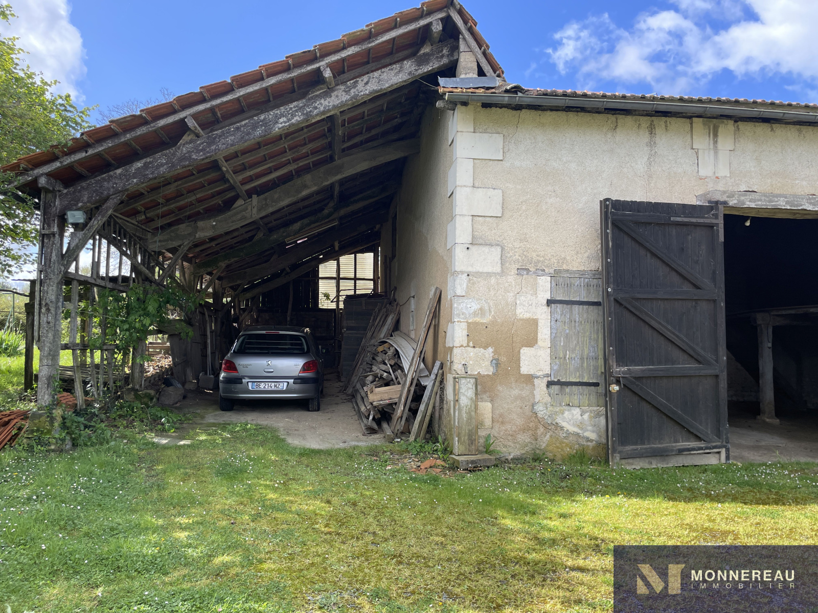 Entre BARBEZIEUX et BAIGNES (16) - Proche des échangeurs N10. Jolie maison ancienne, au calme d'un petit hameau, d'environ 92 m² habitables de plain-pied. Des travaux d'isolation et de modernisation sont à prévoir. Elle est pour autant entretenue et habitable en l'état. Entrée sur cuisine aménagée, séjour avec cheminée, deux chambres et salle d'eau. La grange attenante de 72 m² au sol offre d'immenses possibles. Grenier aménageable. Chauffage central par pompe à chaleur. Toiture de l'habitation refaite en 2022. Assainissement au tout à l'égout. Jardin arboré avec puits sur la façade Sud. Il offre intimité et quiétude. Terrain sur l'arrière qui donne accès à la grange, à l'appentis et aux dépendances dont un ancien four à pain.