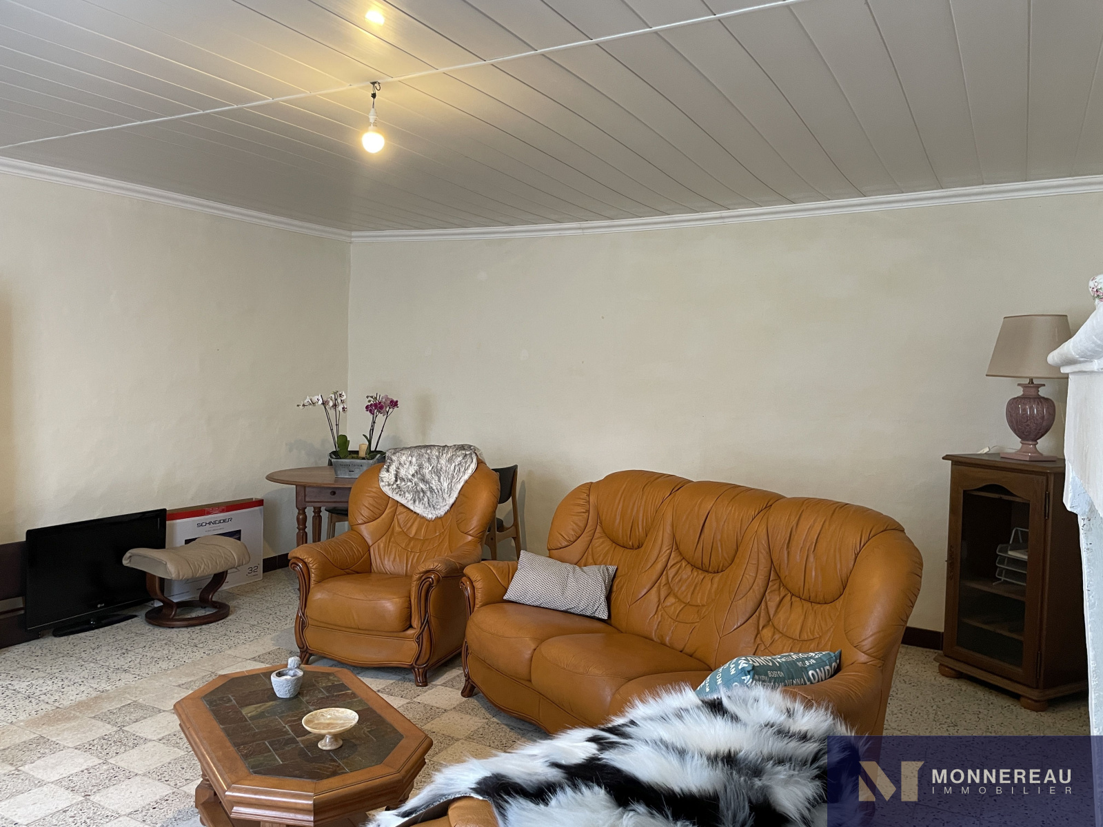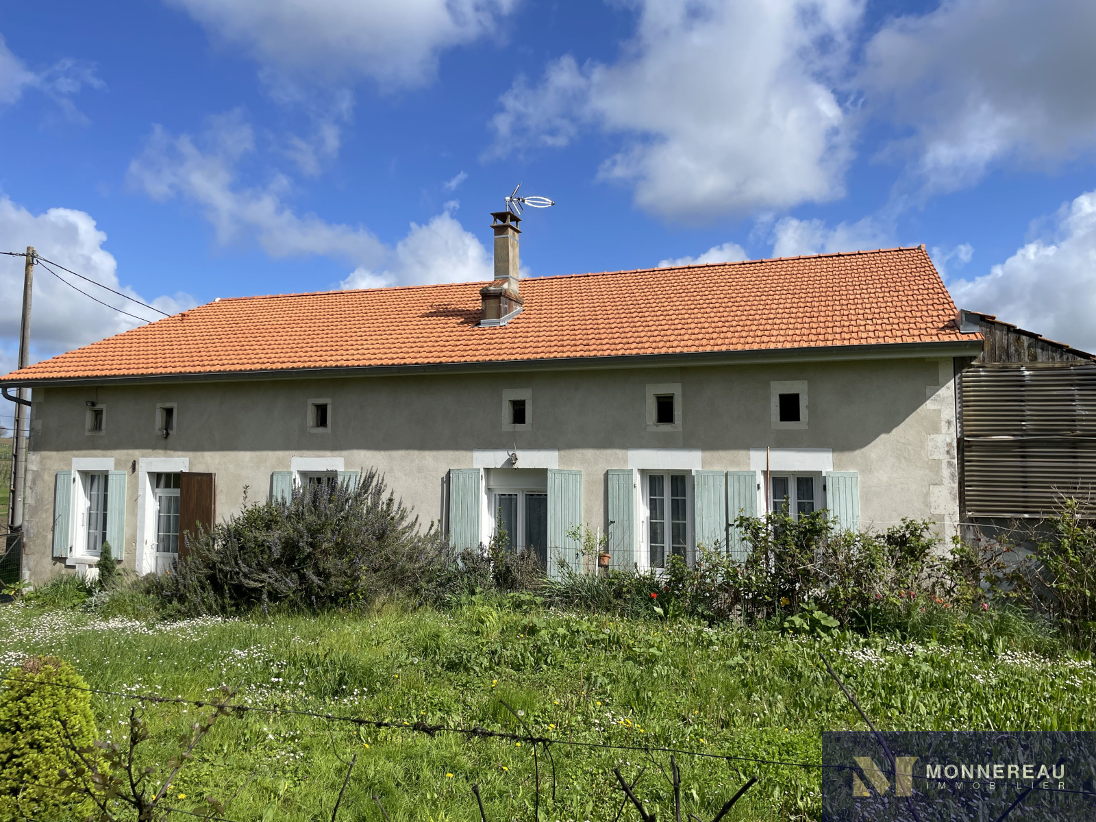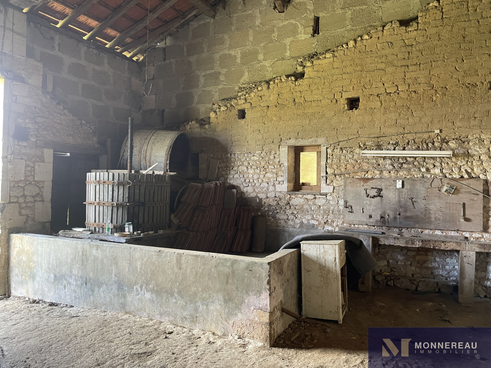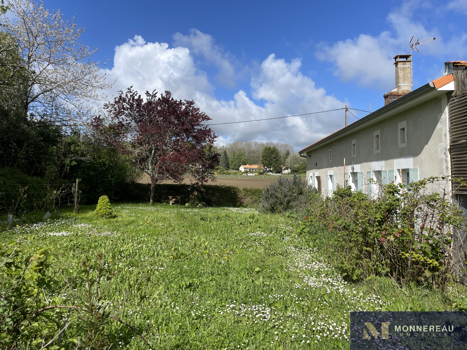 Entre BARBEZIEUX et BAIGNES (16) - Proche des échangeurs N10. Jolie maison ancienne, au calme d'un petit hameau, d'environ 92 m² habitables de plain-pied. Des travaux d'isolation et de modernisation sont à prévoir. Elle est pour autant entretenue et habitable en l'état. Entrée sur cuisine aménagée, séjour avec cheminée, deux chambres et salle d'eau. La grange attenante de 72 m² au sol offre d'immenses possibles. Grenier aménageable. Chauffage central par pompe à chaleur. Toiture de l'habitation refaite en 2022. Assainissement au tout à l'égout. Jardin arboré avec puits sur la façade Sud. Il offre intimité et quiétude. Terrain sur l'arrière qui donne accès à la grange, à l'appentis et aux dépendances dont un ancien four à pain.