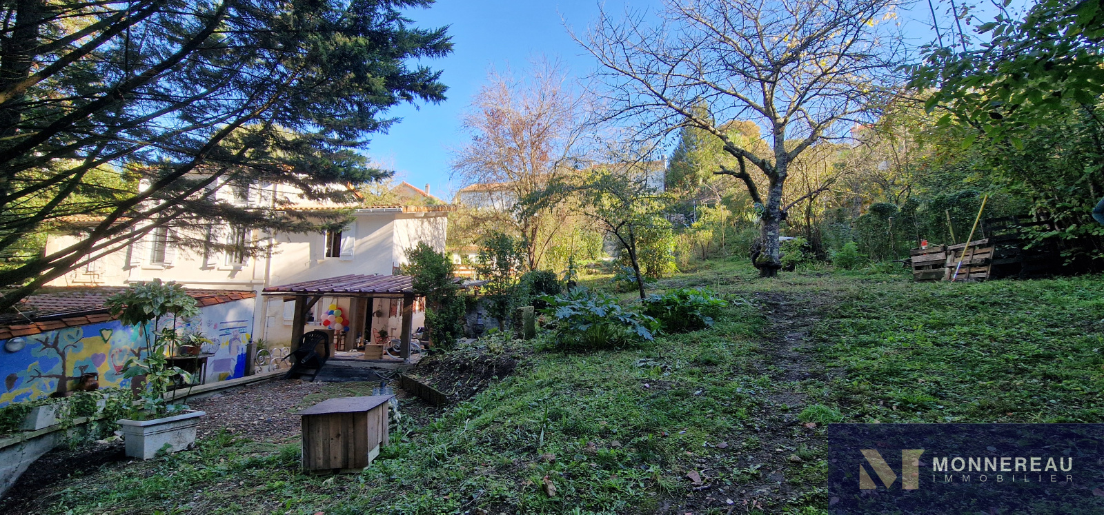 ANGOULEME (16000) - Cachée au fond d'une impasse, à proximité de la Place Victor Hugo et de toutes les commodités. Malgré les immeubles environnants, l'atmosphère des lieux y est très agréable et surprenante. Cette maison profite d'un cadre agréable et d'un jardin digne d'une maison de campagne. Cuisine semi-ouverte sur salon volumineux avec poêle à bois. Chambre avec salle d'eau au rez-de-chaussée. A l'étage, grand palier, salle d'eau et chambre. Au deuxième grande chambre mansardée. Diverses dépendances dont un garage de 21 m². L'ensemble sur 1 411 m² de terrain arboré. En plein centre ville !
