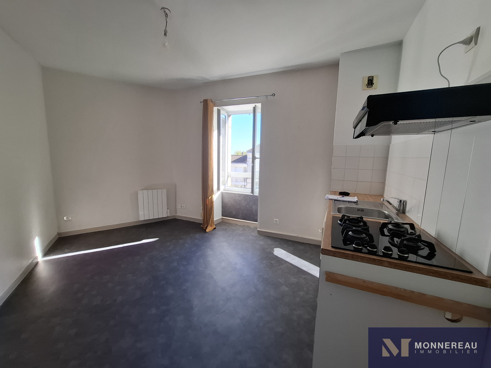 BARBEZIEUX (16300) - Appartement de centre ville situé au 2ème étage d'un immeuble, comprenant une pièce de vie avec coin cuisine, dégagement , une chambre et salle d'eau/WC. Chauffage électrique avec convecteurs neufs. Idéalement placé, services et commerces à pied, lycée à proximité.