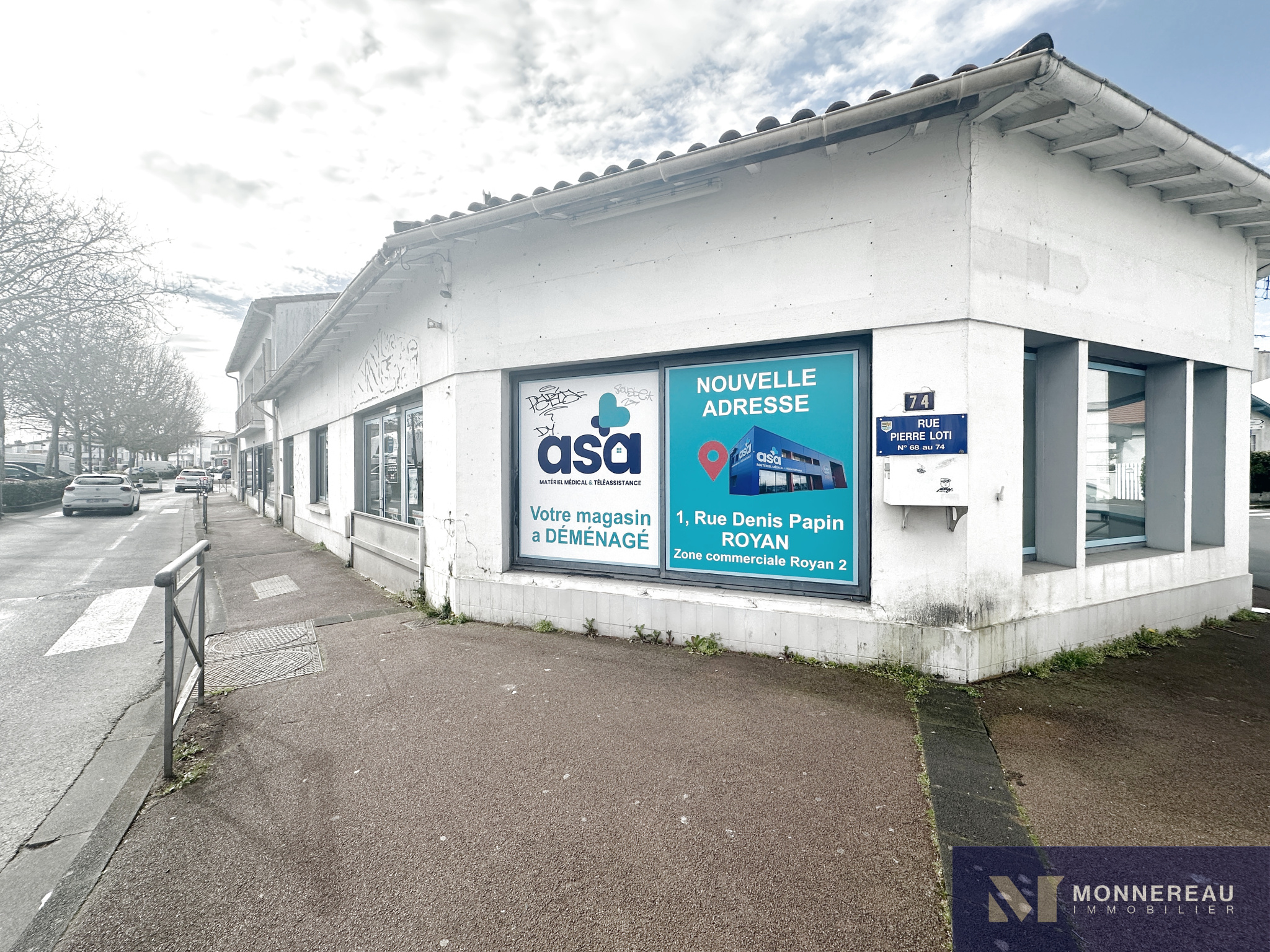 ROYAN (17) - En plein centre-ville, face au marché couvert, ce bâtiment à usage commercial offre une surface de 300 m² au rez-de-chaussée. Possibilité de créer plusieurs lots. Trois accès accès principaux sur rue. Autre accès sur l'arrière par une cour. Le lieu est parfaitement adapté aux besoins professionnels, mais aussi pour la création de logements d'habitation sur l'étage de 64 m². Ce sont des anciens bureaux. Il y a beaucoup de travaux à prévoir. Mais quel potentiel et quel emplacement. La visibilité est vraiment l'atout majeur de cet ensemble.