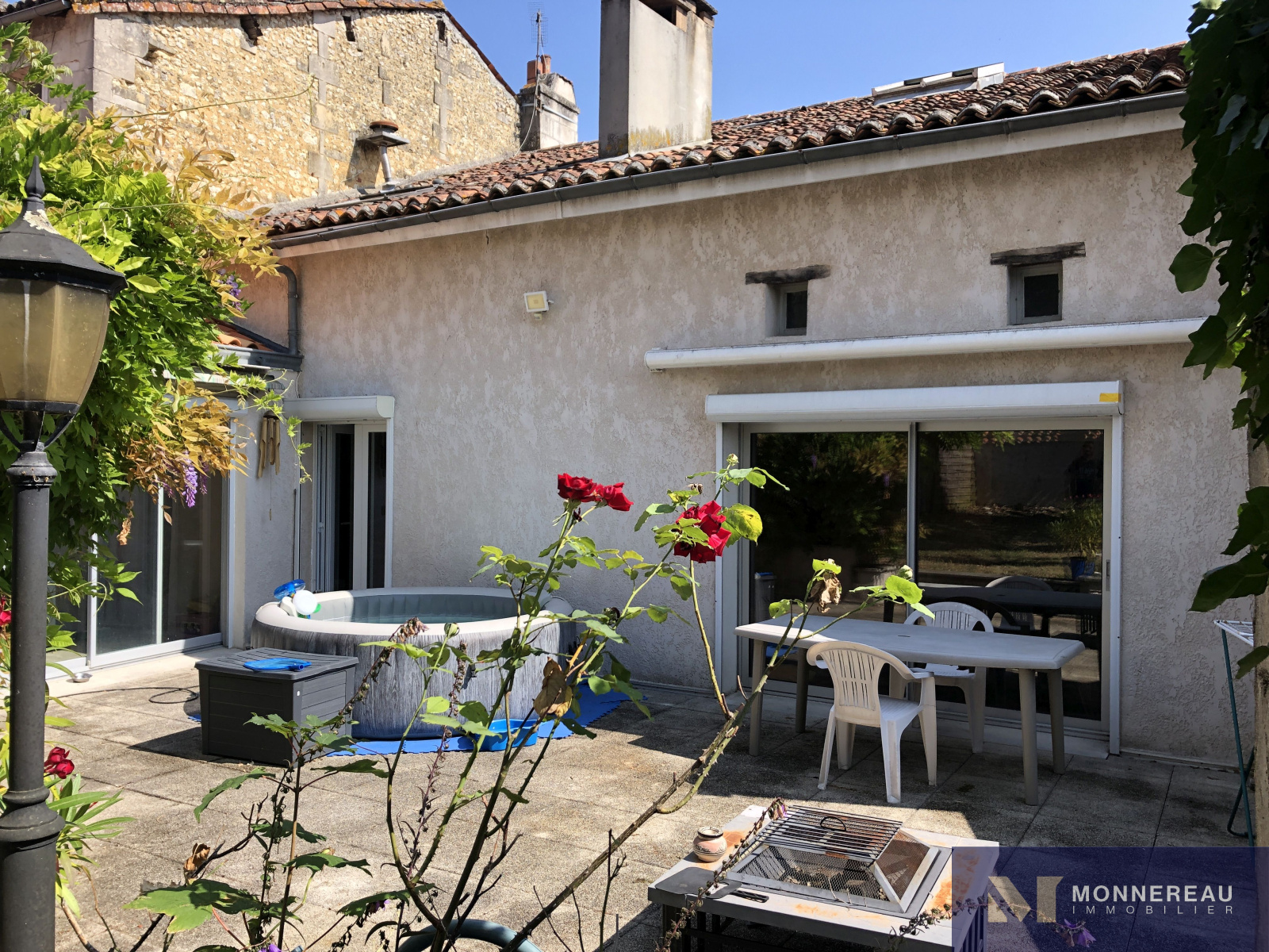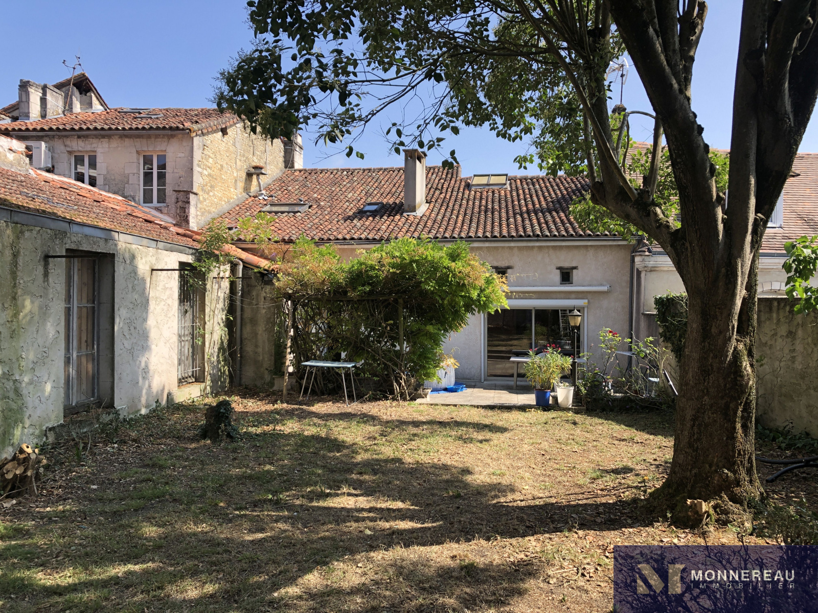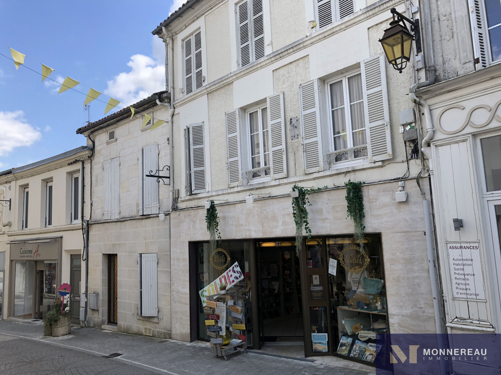 BARBEZIEUX (16) - Au coeur de ville, dans une rue semi-piétonne commerçante. Immeuble du 19ème en pierre avec jardin et garage. Il abrite au rez-de-chaussée un vaste local commercial libre d'occupation et une agréable maison idéale pour une famille. L'habitation au premier étage côté rue s'ouvre sur un rez de jardin exposé plein Sud. Deux pièces de vie dont un salon avec baie sur terrasse. Cuisine séparée avec annexes communicantes au garage. Chambre avec salle d'eau. L'étage supérieur se compose de deux autres chambres, dressing et salle de bains. Au total 155 m² habitables. Il faudra prévoir des travaux de modernistaion. C'est cependant parfaitement habitable en l'état. Un grenier aménageable accessible par un deuxième escalier permet la création de chambre supplémentaire. Un locataire occupe l'habitation. Il va libérer les lieux. Excellente opportunité. Exclusivité !