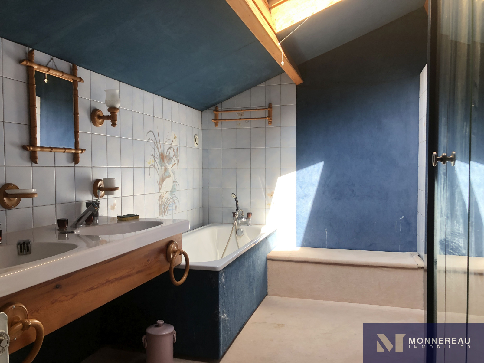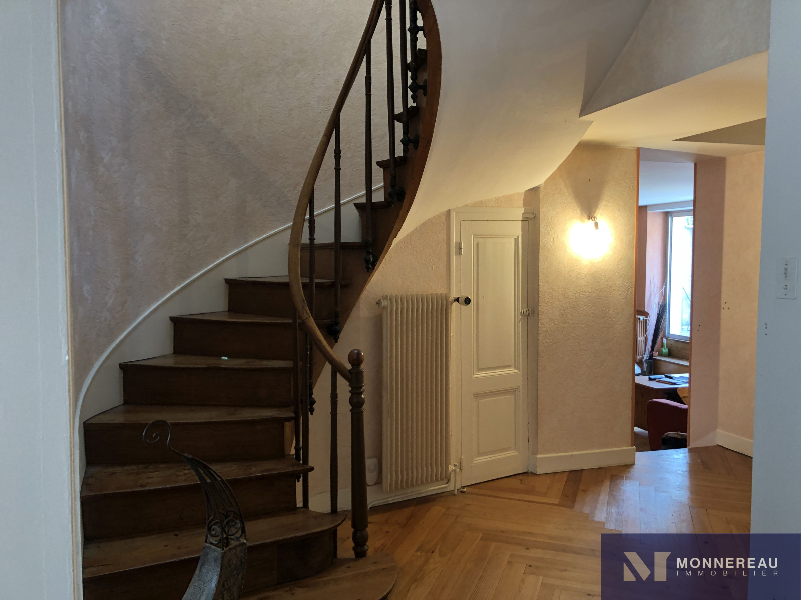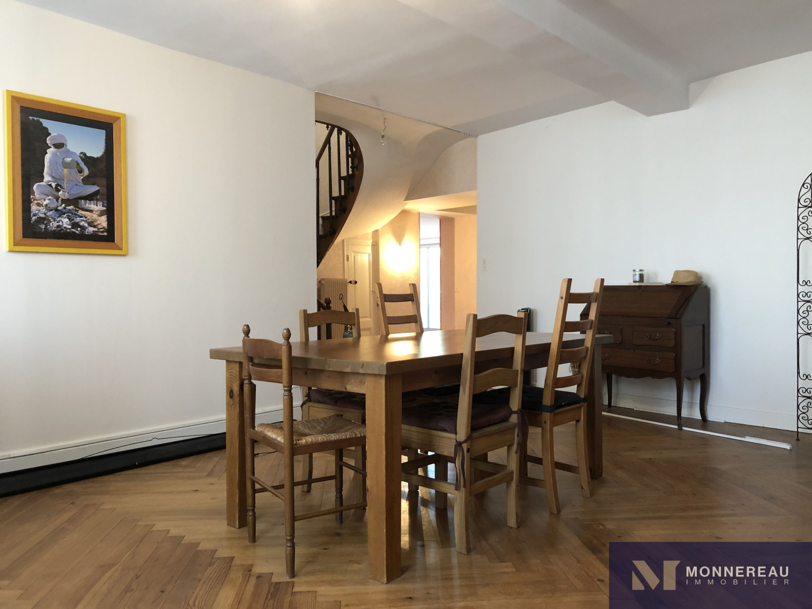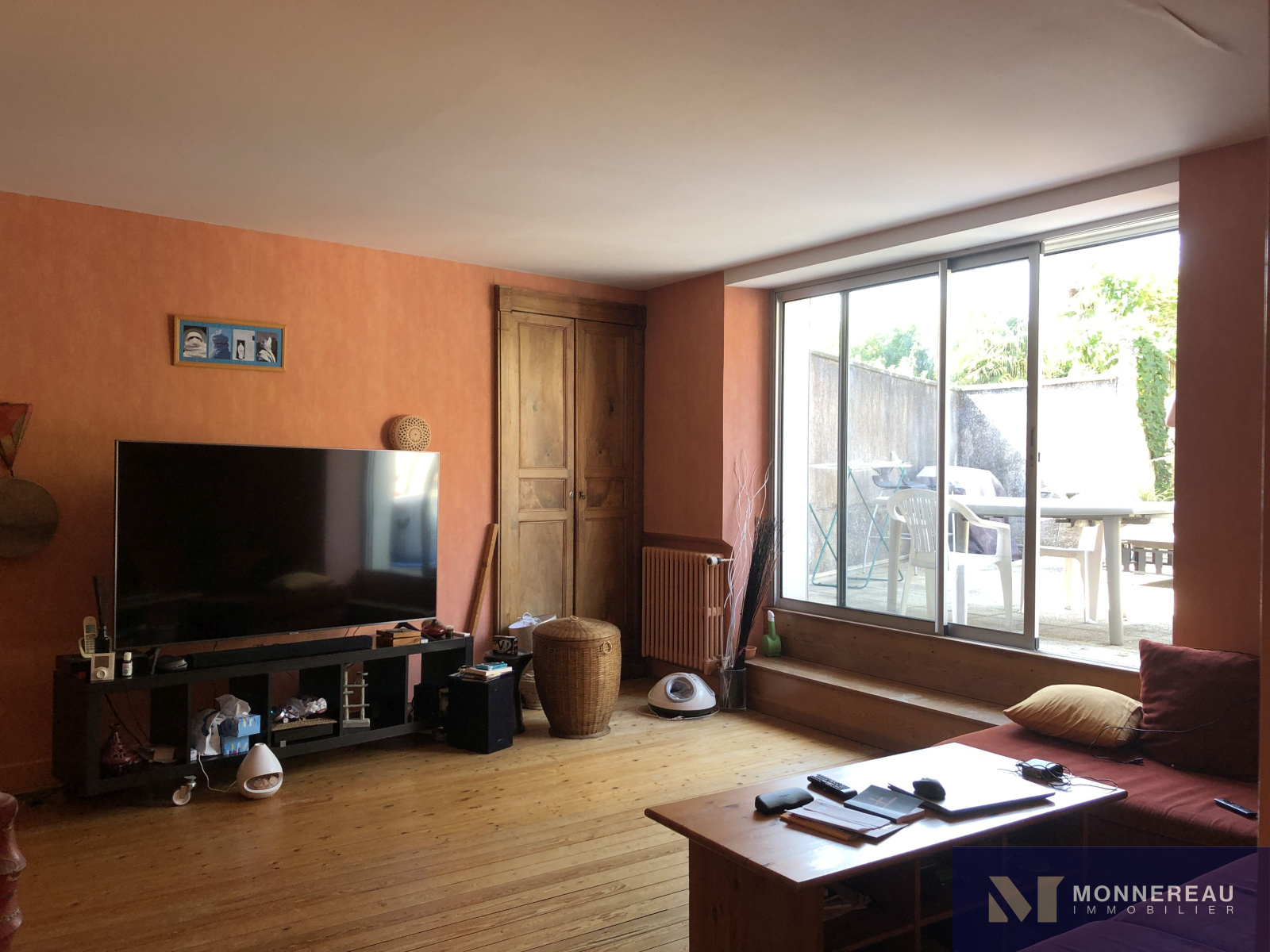 BARBEZIEUX (16) - Au coeur de ville, dans une rue semi-piétonne commerçante. Immeuble du 19ème en pierre avec jardin et garage. Il abrite au rez-de-chaussée un vaste local commercial libre d'occupation et une agréable maison idéale pour une famille. L'habitation au premier étage côté rue s'ouvre sur un rez de jardin exposé plein Sud. Deux pièces de vie dont un salon avec baie sur terrasse. Cuisine séparée avec annexes communicantes au garage. Chambre avec salle d'eau. L'étage supérieur se compose de deux autres chambres, dressing et salle de bains. Au total 155 m² habitables. Il faudra prévoir des travaux de modernistaion. C'est cependant parfaitement habitable en l'état. Un grenier aménageable accessible par un deuxième escalier permet la création de chambre supplémentaire. Un locataire occupe l'habitation. Il va libérer les lieux. Excellente opportunité. Exclusivité !