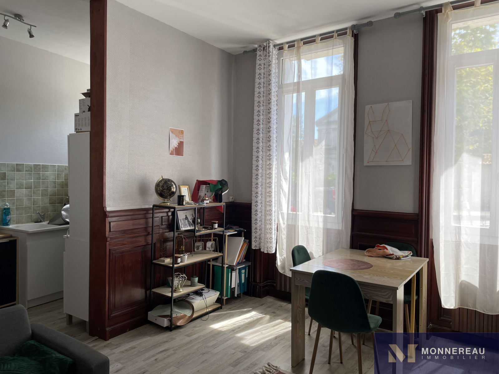 BARBEZIEUX (16) - Au coeur de ville, idéalement situé dans une rue principale, tous services à pied. Très bel immeuble en pierre rénové il y a environ 20 ans afin d'y créer quatre appartements de type 2 entre 35 et 39 m² chacun. Cave commune sous partie et cour commune sur l'arrière. Chauffage central par chaudière collective au gaz de ville. Chaque logement est équipé de compteurs individuels. Interphones. Revenu locatif mensuel de 1519 € pour l'ensemble. Locataires en place. Belle exposition Sud.