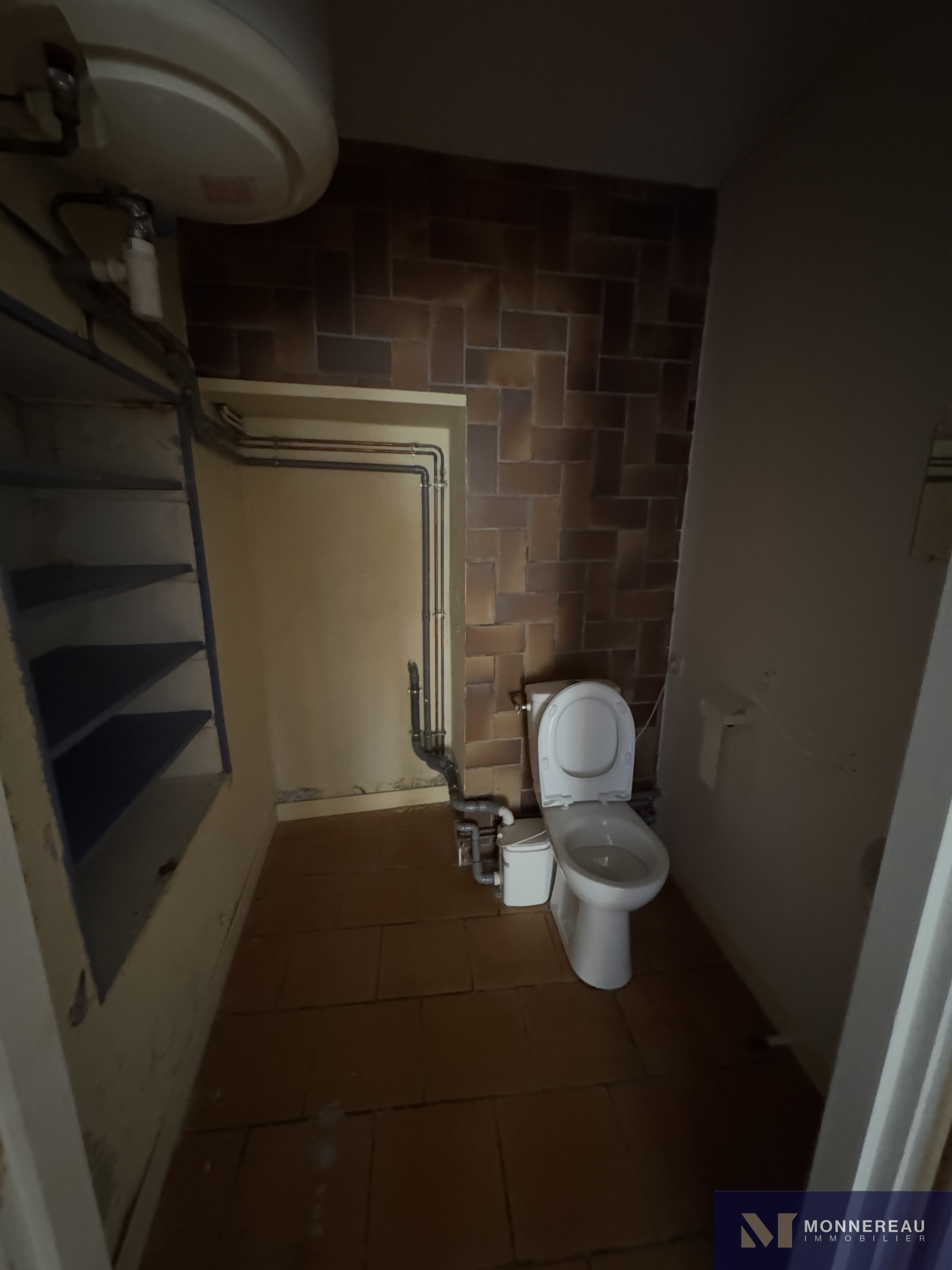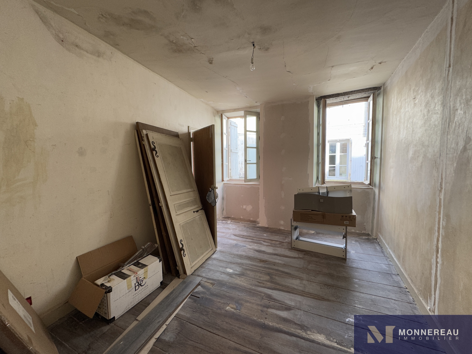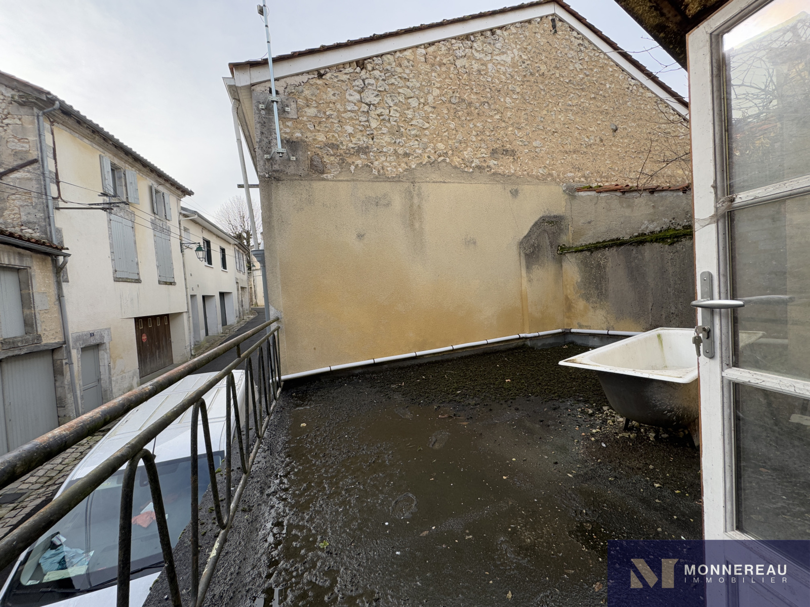 BARBEZIEUX (16) - Au coeur du centre ville, dans la rue semi-piétonne. Immeuble en pierre de trois niveaux élevés sur cave. Local commercial de 40 m², réserve de 24 m² et sanitaires. Appartement en cours de rénovation d'environ 70 m² à l'étage avec accès à un toit terrasse sans vis à vis. Travaux importants de finition à prévoir pour terminer l'appartement. Doublage, électricité, menuiseries et alimentation plomberie en place. Grenier exploitable sur la même surface. Ensemble attractif pour une activité commerciale et/ou pour un investissement locatif.