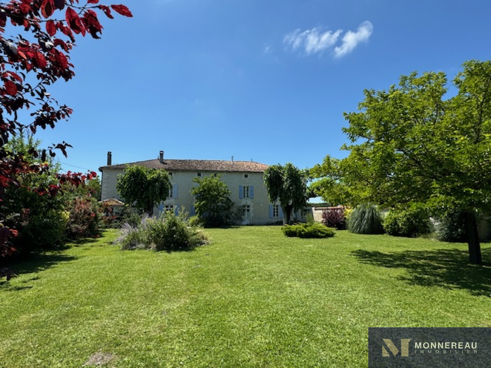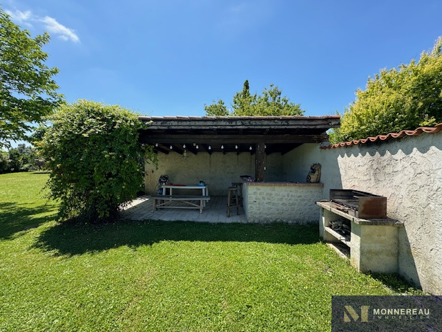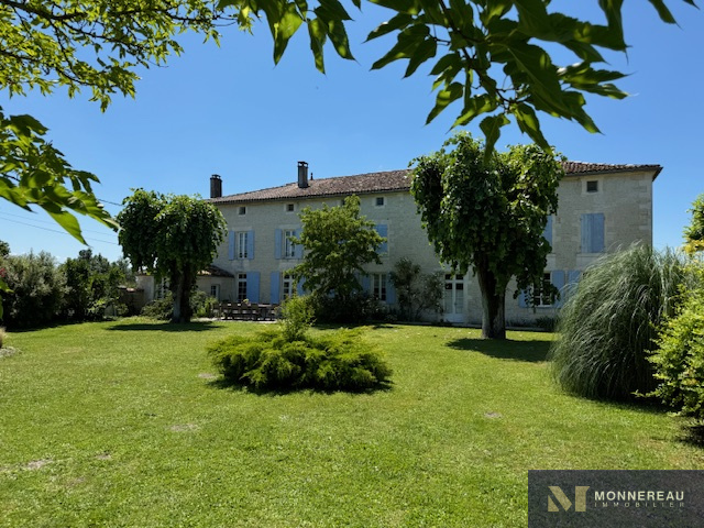 Proche de BARBEZIEUX (16) - 20 min Sud COGNAC - Dans un petit bourg, splendide propriété marquée du sceau de l'authenticité et du confort. Cette grande demeure du XVIII° et remanièe au XIX° a été rénovée avec soin. Naturel et raffinement sur plus de 600 m² habitables ! Deux grands gîtes indépendants disposent d'une piscine et s'articulent autour d'une cour fermée. On y retrouve le même art de vivre. Ils sont vendus meublés. Au total, la propriété offre 12 chambres, toutes très agréables. Le jardin clos de murs, et son joli verger avec sa deuxième piscine invite à la détente et au farniente. Allée et parking privés. Charme, intimité, bien-être, au cœur de la Grande-Champagne.