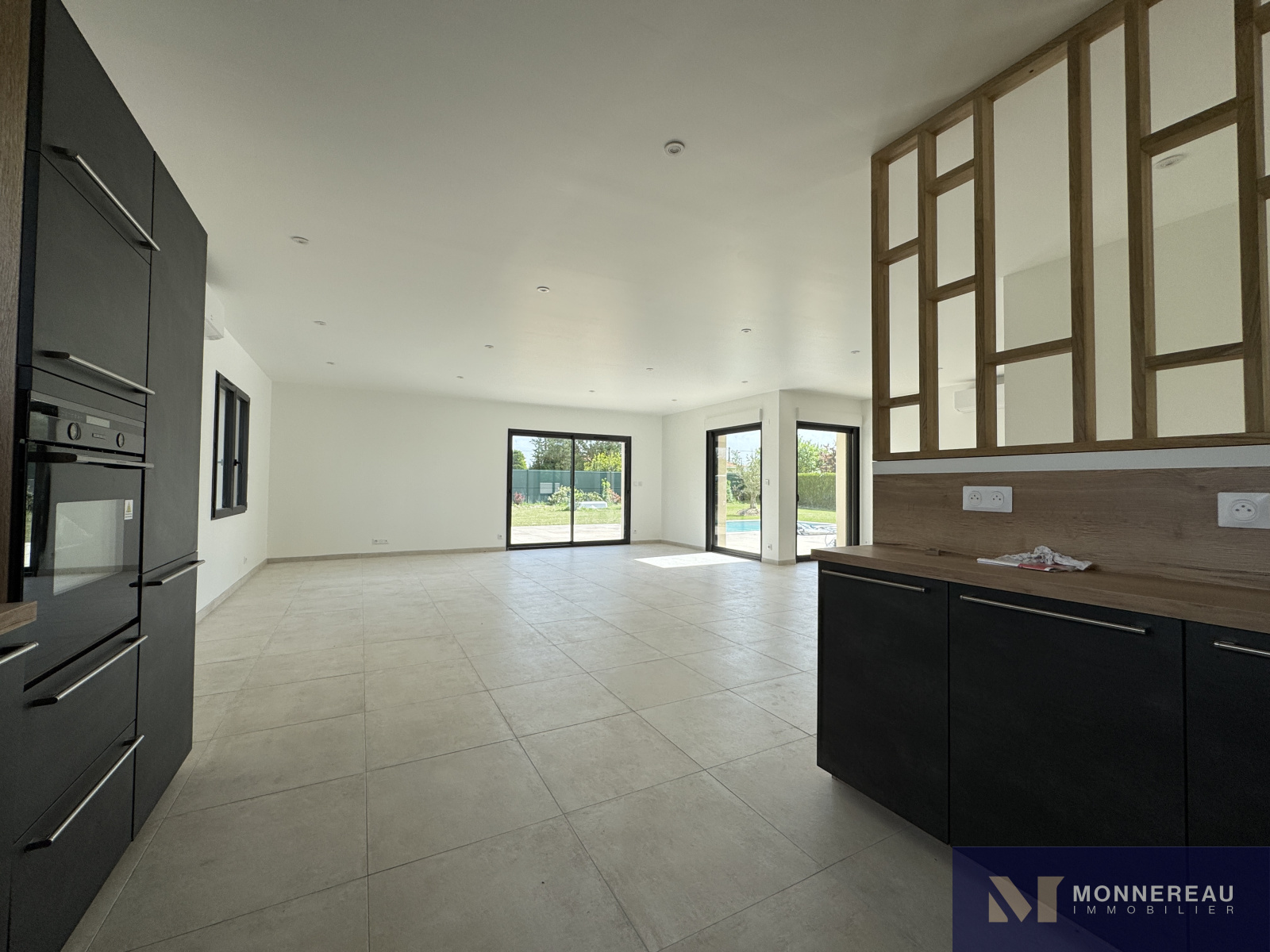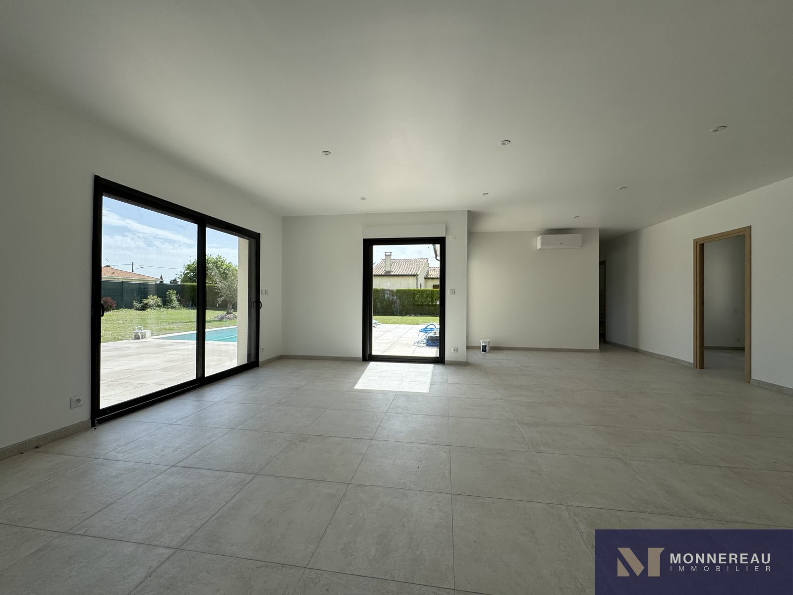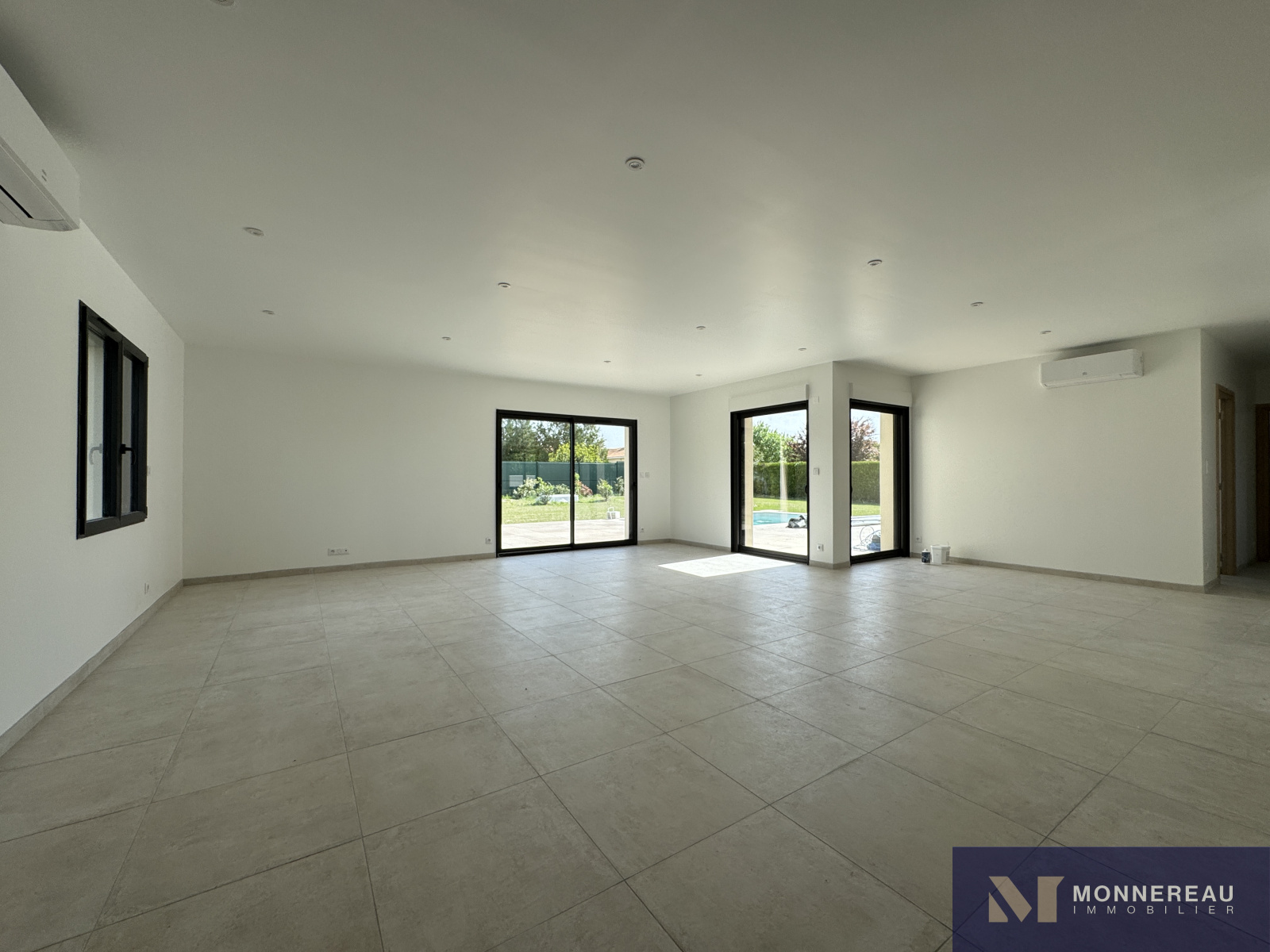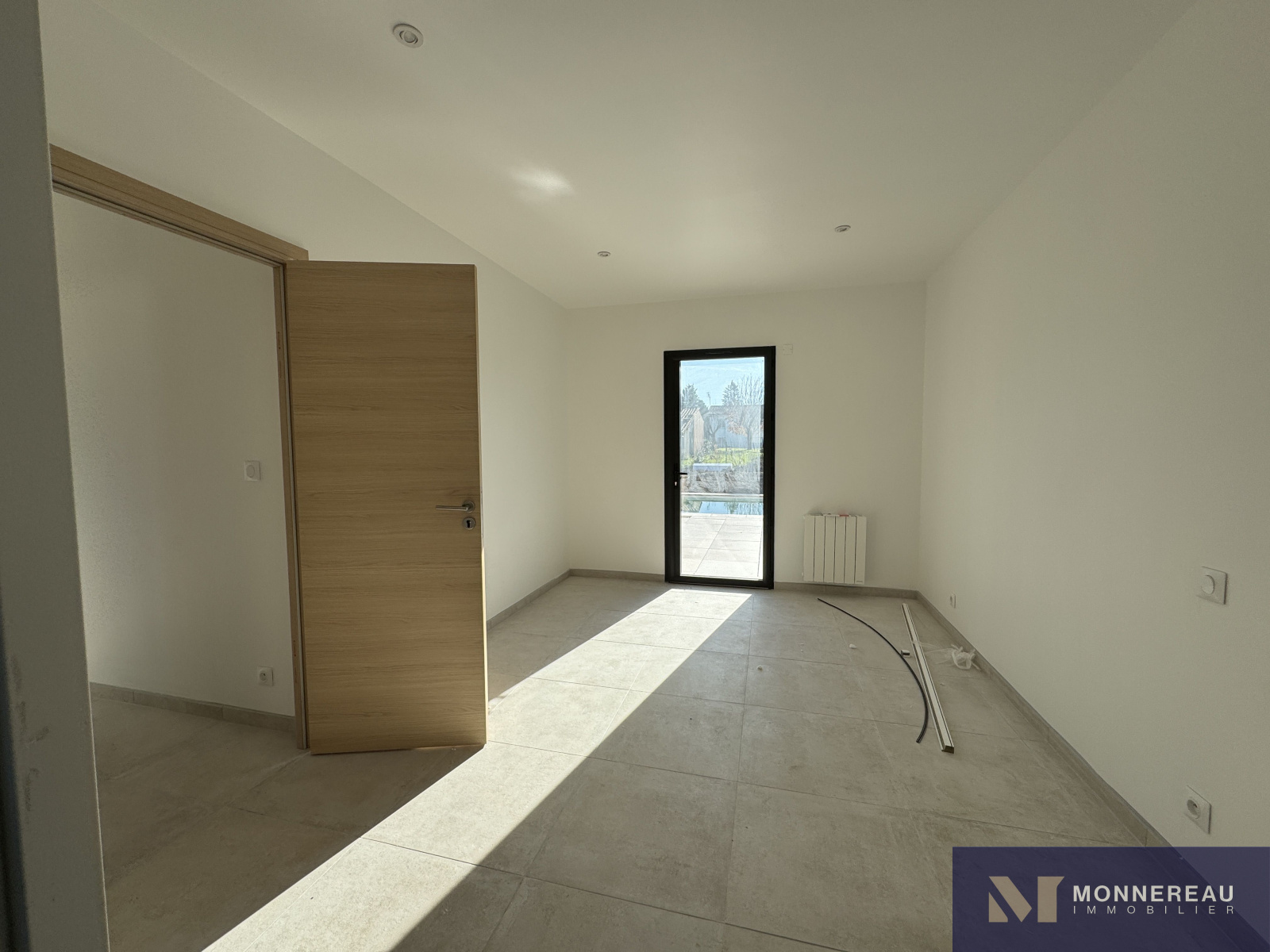 Sol carrelage, baie sur terrasse