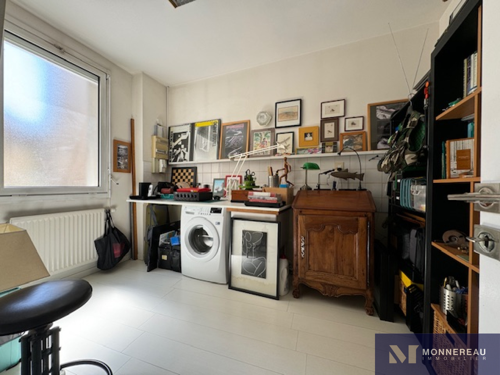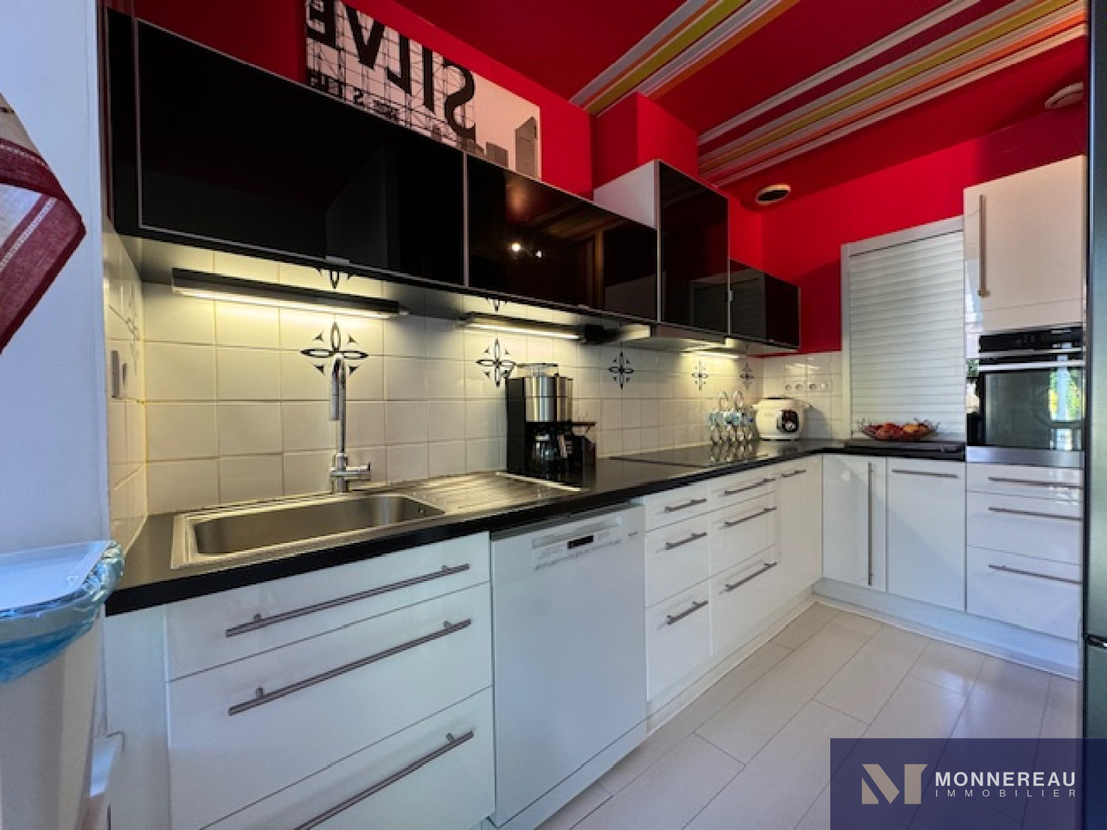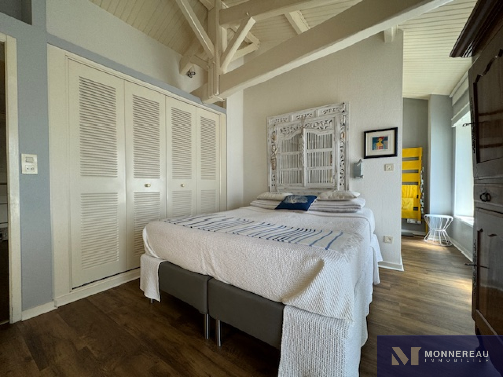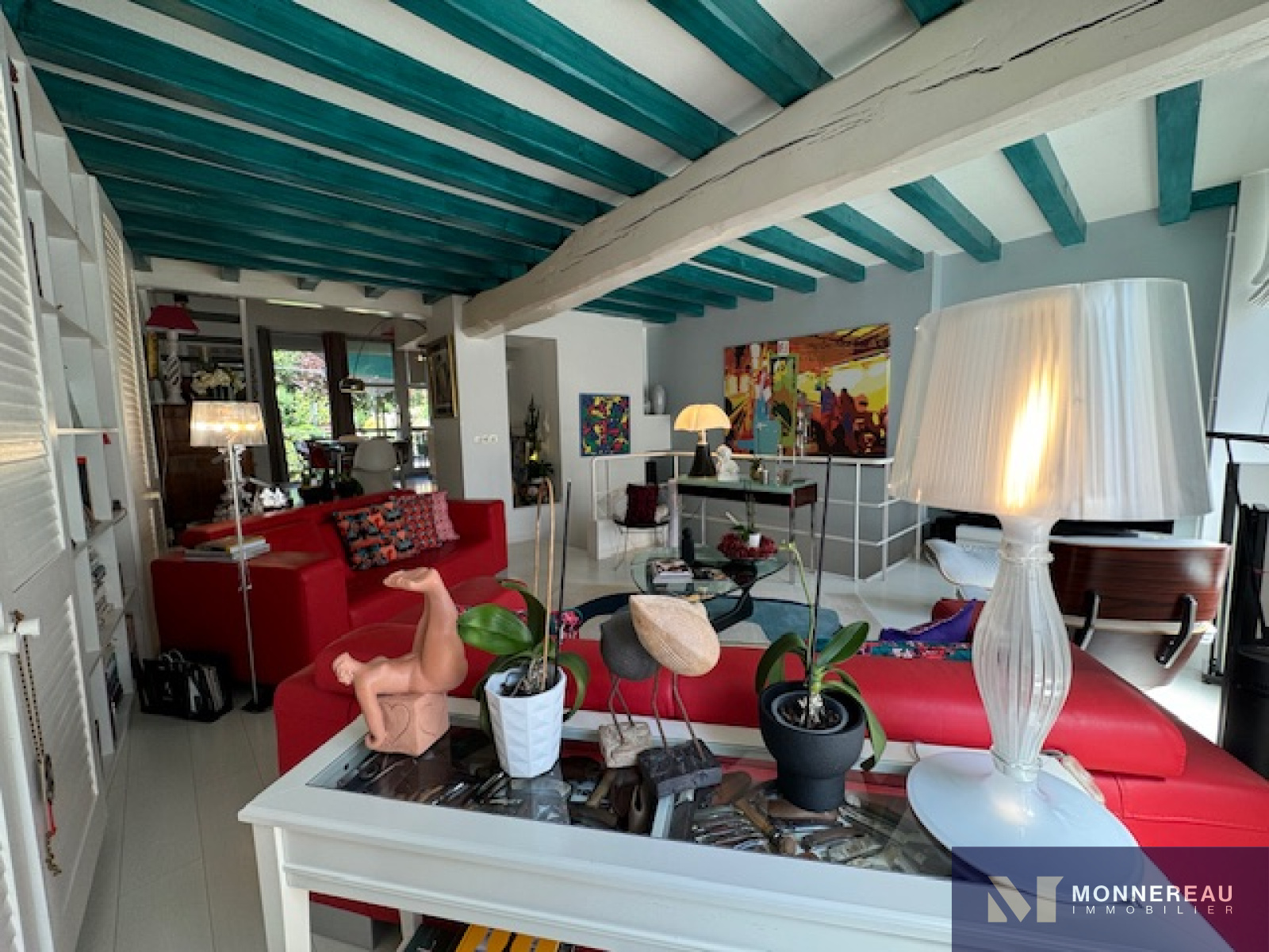 BARBEZIEUX centre (16) - Tous services et écoles à pied - Cette maison de ville a été soigneusement pensée et aménagée par un architecte. Les beaux volumes se mèlent les uns aux autres avec fluidité. Ils sont baignés de lumière. Les prestations sont à la hauteur du visuel. Les matières de belle facture et la décoration apportent une atmosphère très singulière. Cette rénovation est réussie ! Au rez-de-chaussée, hall d'entrée avec placards, buanderie (ancien bureau) et immense chambre sur cour avec salle d'eau et dressing. A l'étage et en rez-de-jardin, séjour avec bibliothèque et partie repas, cuisine équipée type labo semi-ouverte. Une terrasse suspendue prolonge cet espace. Elle fait le lien avec le charmant jardin paysager. Au dernier niveau, une mezzanine donne accès à une chambre cosy avec salle d'eau et placards. Cave. Chauffage central au gaz de ville. Garage indépendant pouvant accueillir deux voitures. Accès sur rue arrière. Au dessus un plateau en partie isolé offre un beau potentiel d'aménagement pour aménager un studio, un bureau ou pour un atelier d'artiste. Situation très agréable. Les lieux sont parfaitement entretenus. Quel caractère !