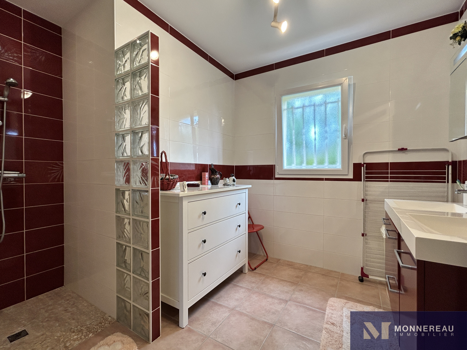 BARBEZIEUX (16), dans une rue calme, maison individuelle de plain-pied construite en 2011 par les Ets Augier, 116 m² habitables sur un terrain clos et arboré de 805 m². L’entrée avec placards dessert un séjour lumineux de 40 m², cuisine équipée attenante, buanderie. Côté nuit, trois chambres dont deux avec placards, salle d’eau. Véranda avec baie aluminium, garage attenant avec porte motorisée, cave. Chauffage au sol électrique, adoucisseur d’eau. Maison en parfait état, aucun travaux à prévoir.