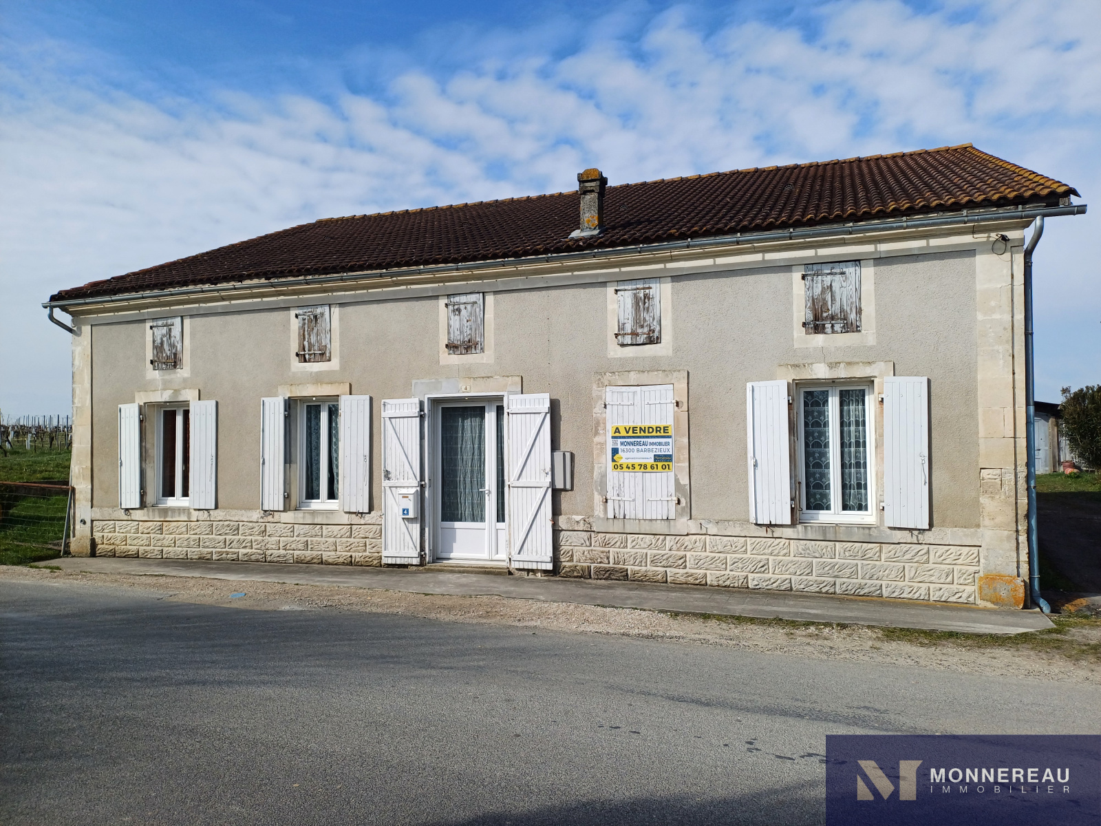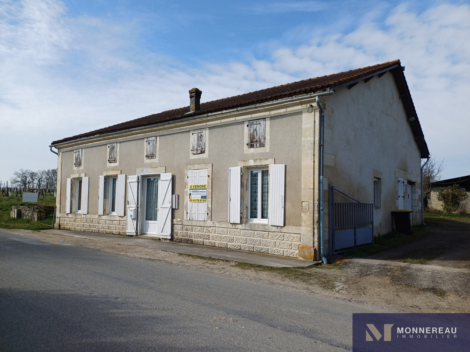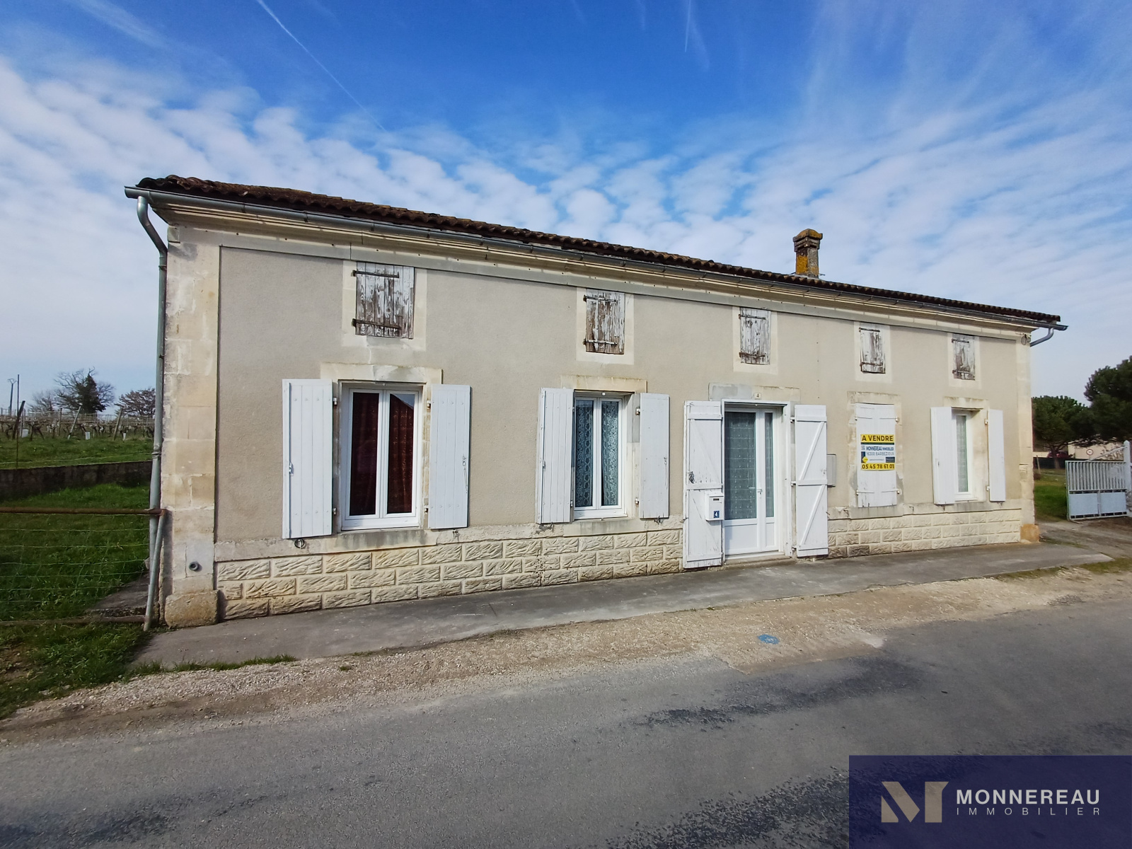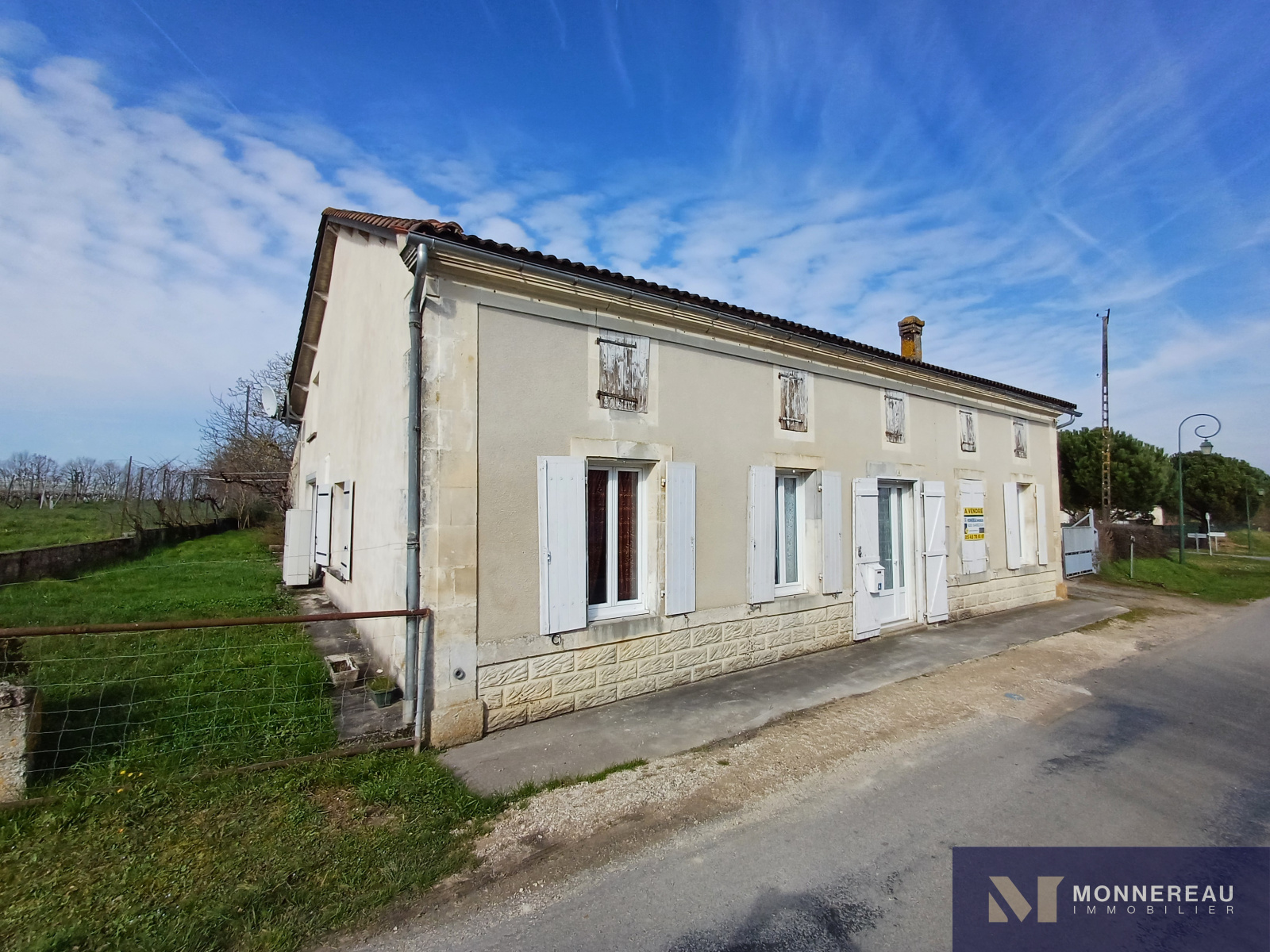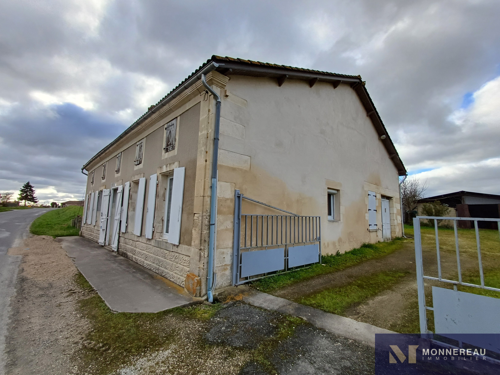 BAIGNES (16) - Entre ANGOULEME (16) et BORDEAUX (33) - Ecoles et services à pied - Maison ancienne en pierre à rénover d'environ 100 m² habitables édifiée sur un terrain clos de 1636 m². Cuisine, salon avec cheminée, trois chambres, salle de bains et lingerie. L'intégralité du terrain est en zone constructible. Chauffage central par pompe à chaleur. Menuiseries PVC double vitrage. Toiture en bon état. Assainissement par tout à l'égout. Des travaux d'isolation, d'électricité et de remise au gout du jour sont à prévoir. Grand volume dans le grenier. Possibilité d'agrandissement dans les dépendances attenantes, deux garages sur 80 m², atelier, cave. Hangar de 110 m². Exclusivité !