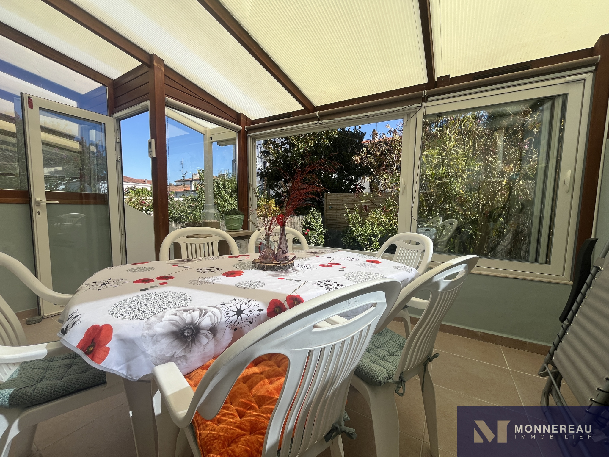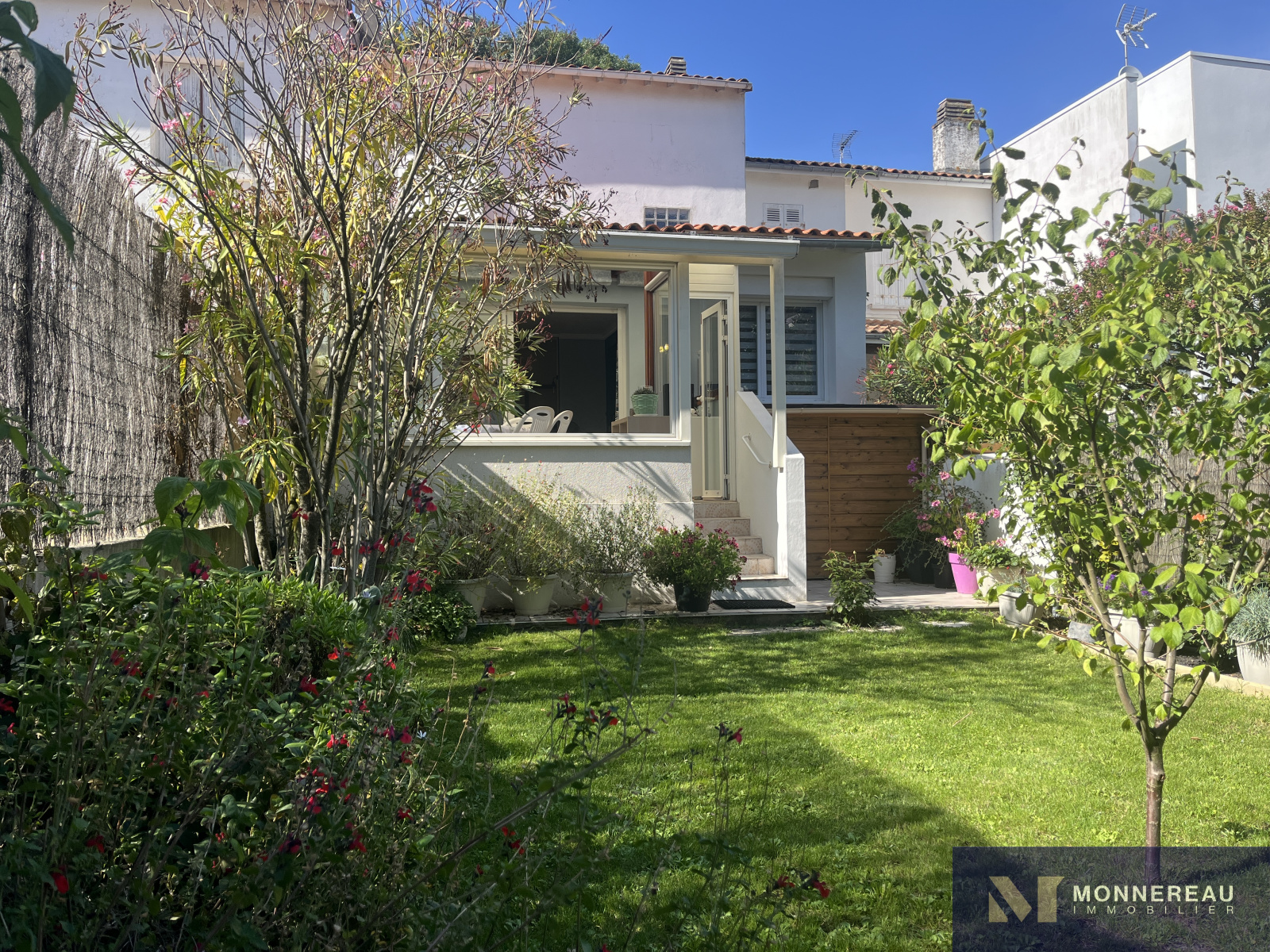 ROYAN (17) - Situation exceptionnelle pour cette maison de ville pleine de caractère. Dans une rue paisible du centre-ville, avec ses 104 m² habitables, elle profite d'un jardin très agréable sur l'arrière. Dés l'entrée, vous découvrirez un vaste séjour lumineux prolongé par une cuisine moderne entièrement équipée. A l'étage, la partie nuit propose trois belles chambres de 12 à 15 m² ainsi qu'une salle d'eau et un second wc. Cette maison chaleureuse et authentique de la période reconstruction est parfaitement entretenue. Vous apprécierez sa véranda lumineuse, son jardin soigneusement aménagé et son grand garage de 28 m². Côté localisation, c'est idéal : 150 m des commerces, 350 m du marché central et 400 m de la plage de la Grande Conche. Cette maison réunit tous les atouts dans l'un des quartiers les plus recherchés de Royan.