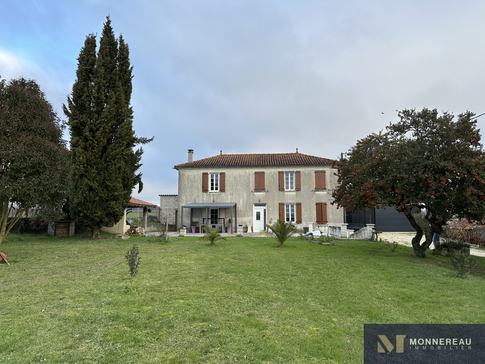 Entre BARBEZIEUX et CHATEAUNEUF (16) - Proche échangeur N10 à 25 min de la gare d'ANGOULEME. Maison ancienne rénovée en 2018 en très bon état. Elle offre environ 134 m² habitables et un terrain d'environ 3135 m². Chauffage par pompe à chaleur, au sol au rez-de-chaussée et radiateurs à l'étage. Isolation performante. Belle entrée sur escalier, séjour avec cheminée/insert très cosy. Grande cuisine moderne et convivale, baignée de lumière. Un accès direct sur une pièce brute à l'arrière d'environ 98 m² offre de vastes possibles (alimentations eau et électricité, évacuations et menuiseries en place). A l'étage, trois chambres, dont une avec dressing. Salle de bains avec wc. Grand garage double d'environ 59 m² avec porte motorisée de belle hauteur. Second garage d'environ 25 m². Bâtiment indépendant dont deux granges sur environ 130 m² et ancien logement à réhabiliter de 55 m².
