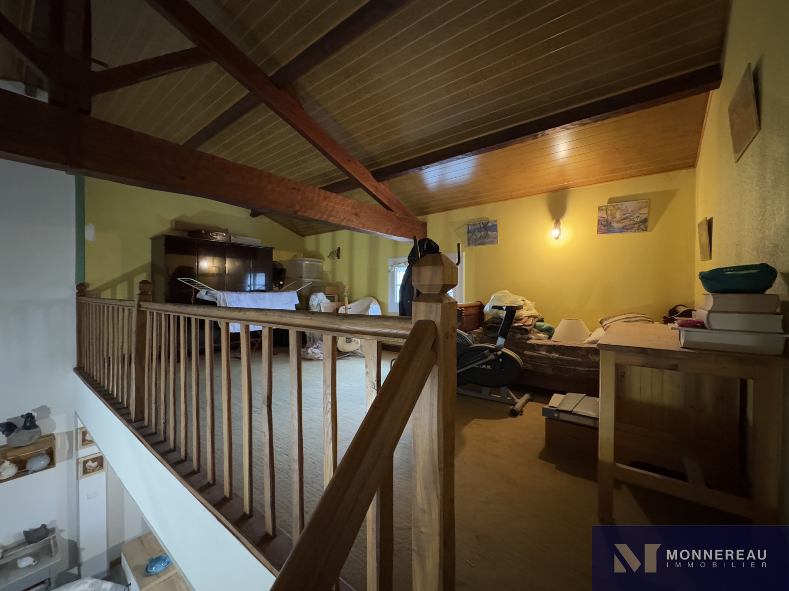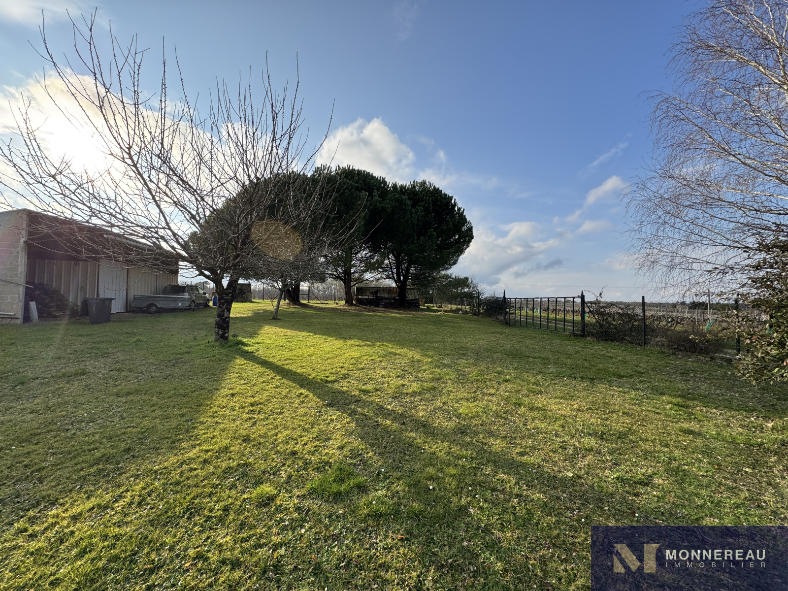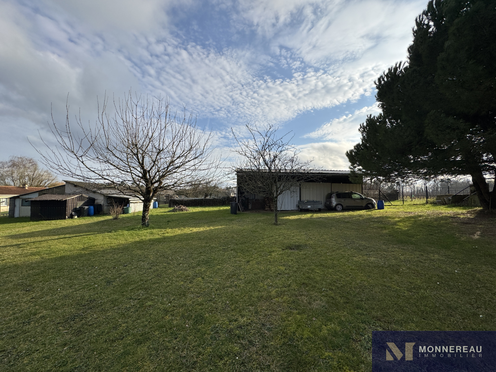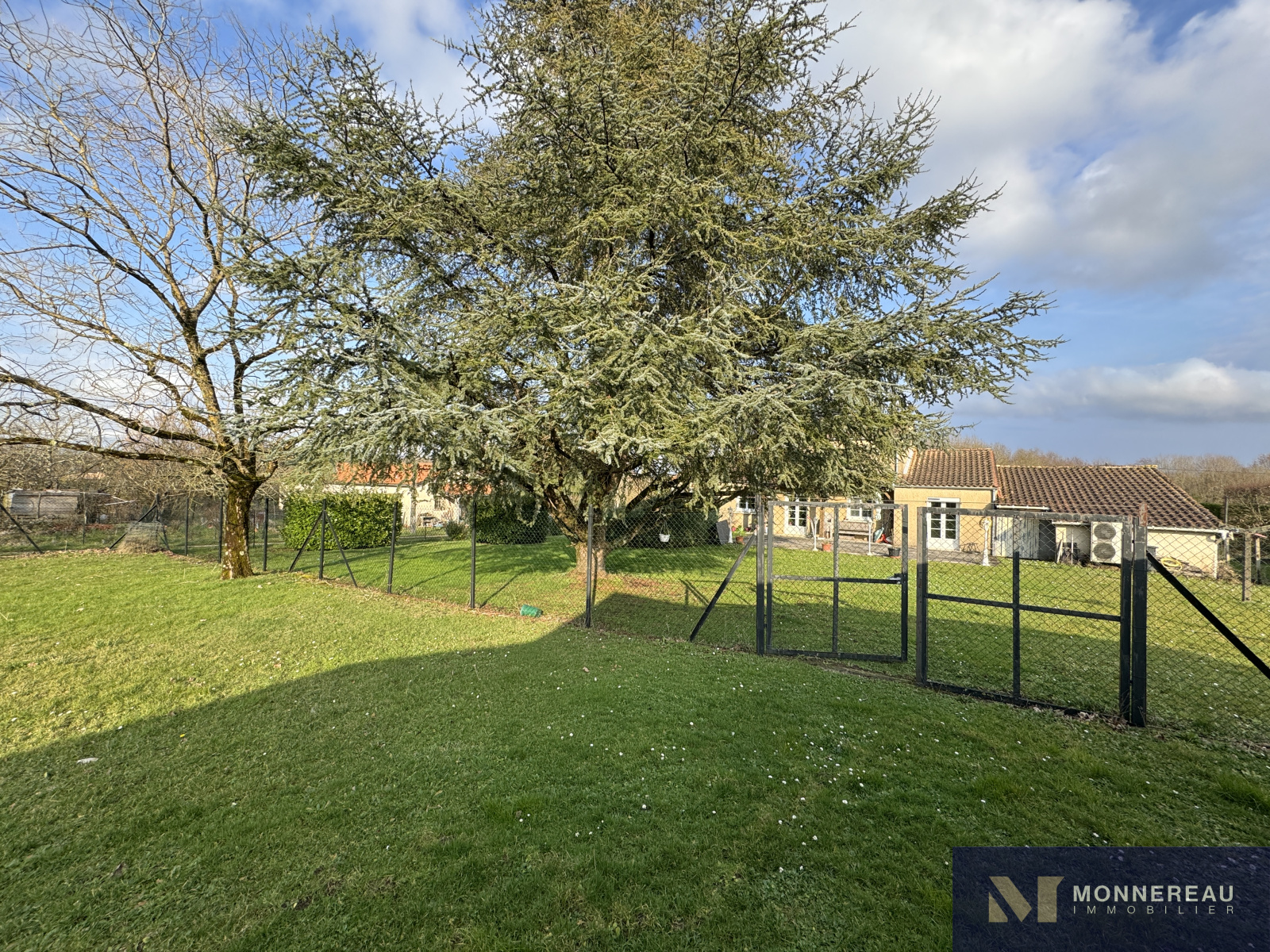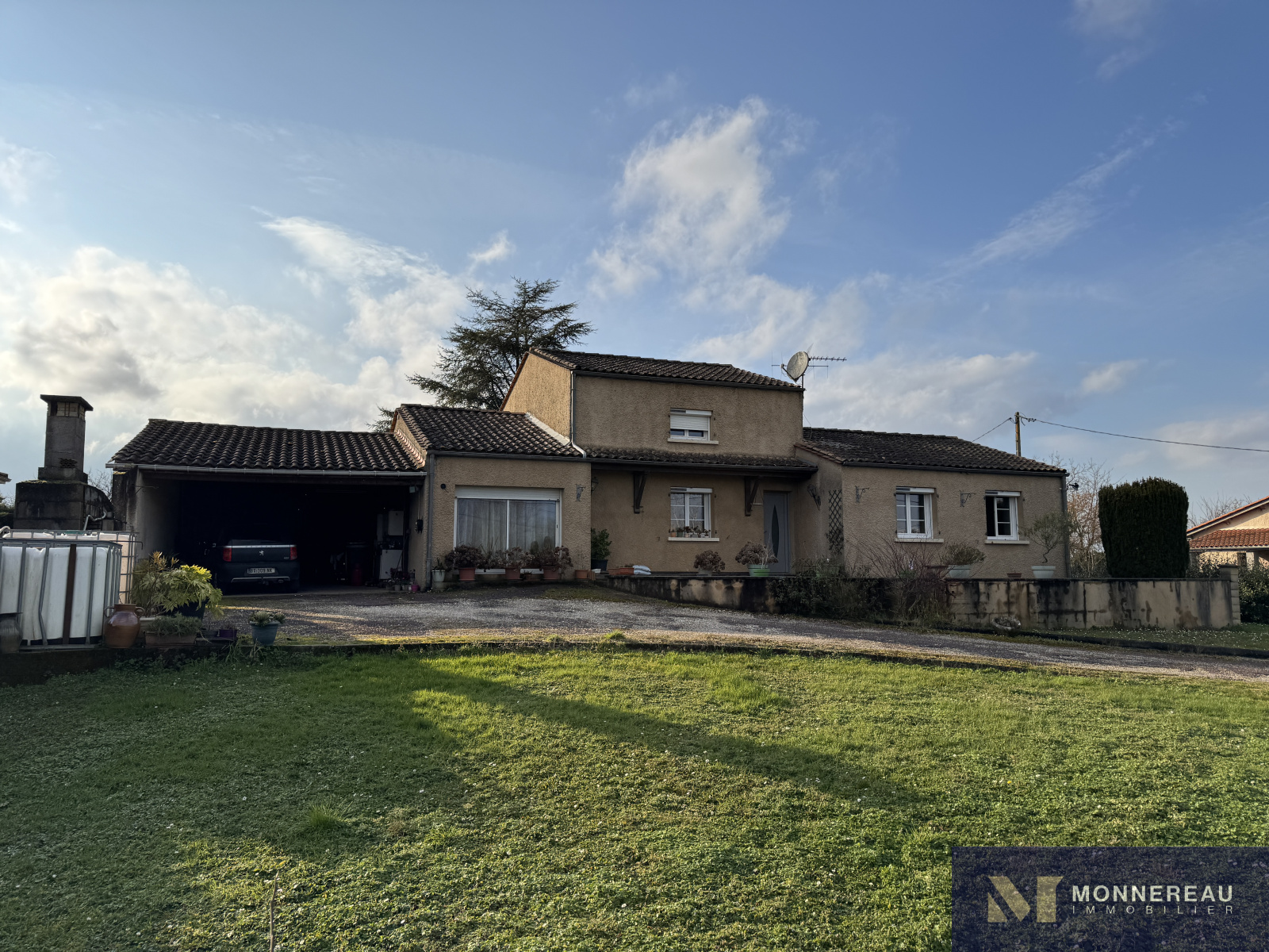Entre BARBEZIEUX et BAIGNES - Maison individuelle de 130 m² habitables construite en 1982 sur un terrain arboré d'environ 3180 m². Vous serez séduit par les volumes de la pièce de vie avec une partie cuisine équipée et une mezzanine. Salon dans la continitué qui d'ouvre sur une terrasse bien exposée. Chauffage au sol par pompe à chaleur. Appentis de 50 m² à usage de garage , cave, abris. Des travaux de modernisation et de rafraichissement sont à prévoir dans la partie nuit mais c'est parfaitement habitable. Le terrain en deux parties cloturées est idéal pour ceux qui ont besoin d'espace. Accès indépendant au terrain sur l'arrière avec hangar et atelier. Situation très agréable.