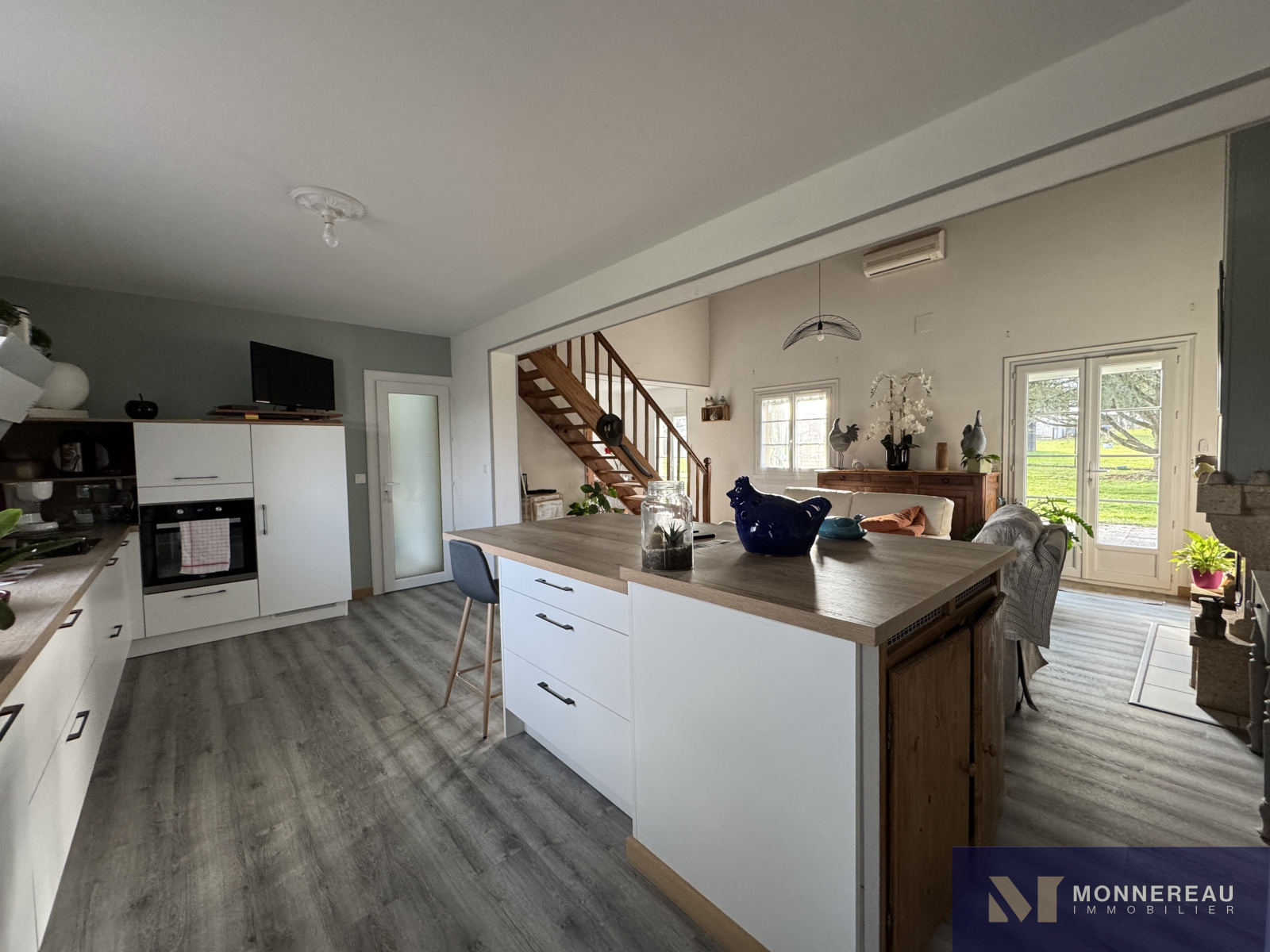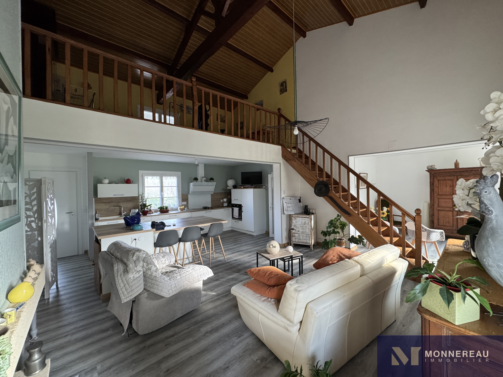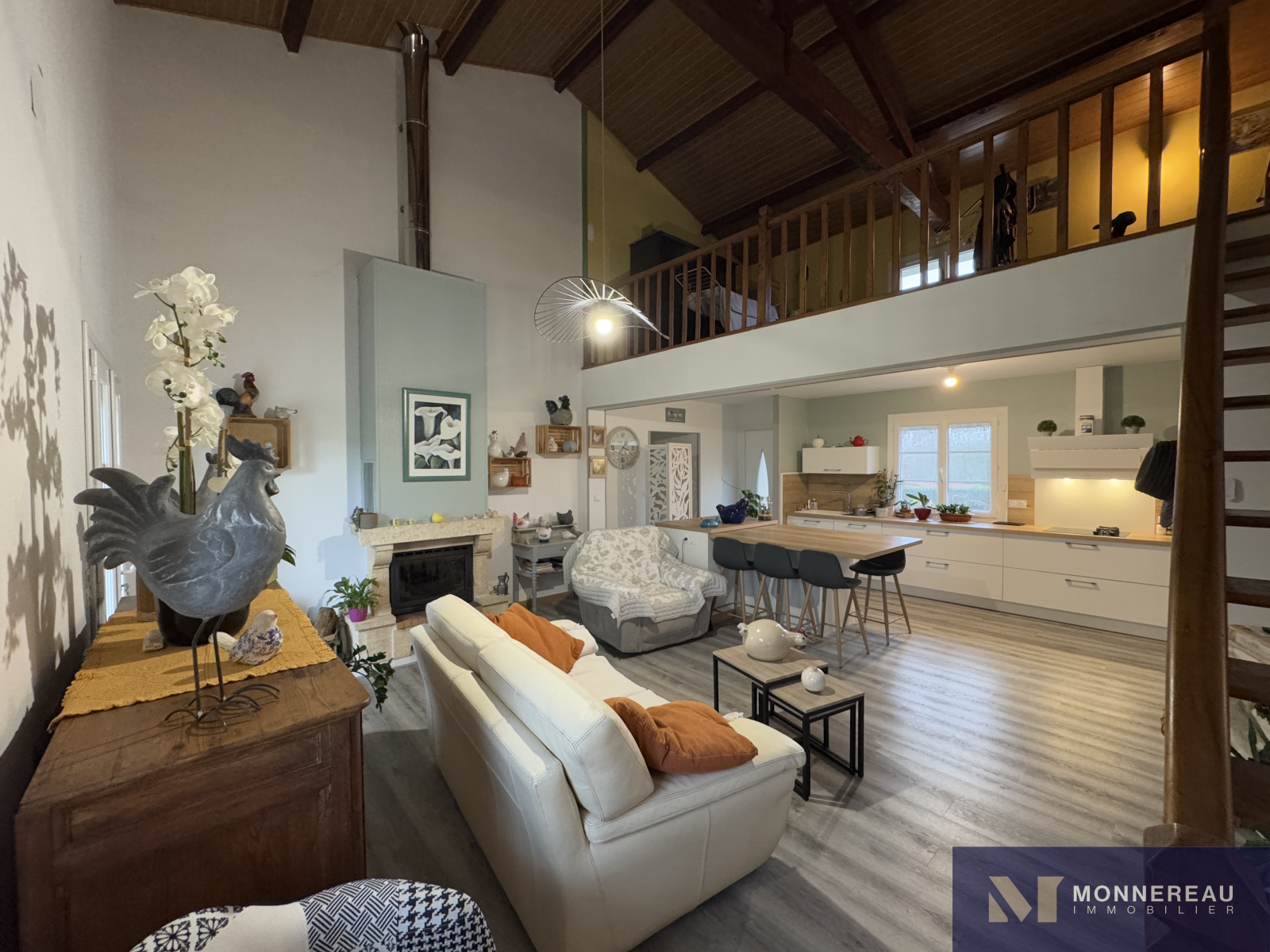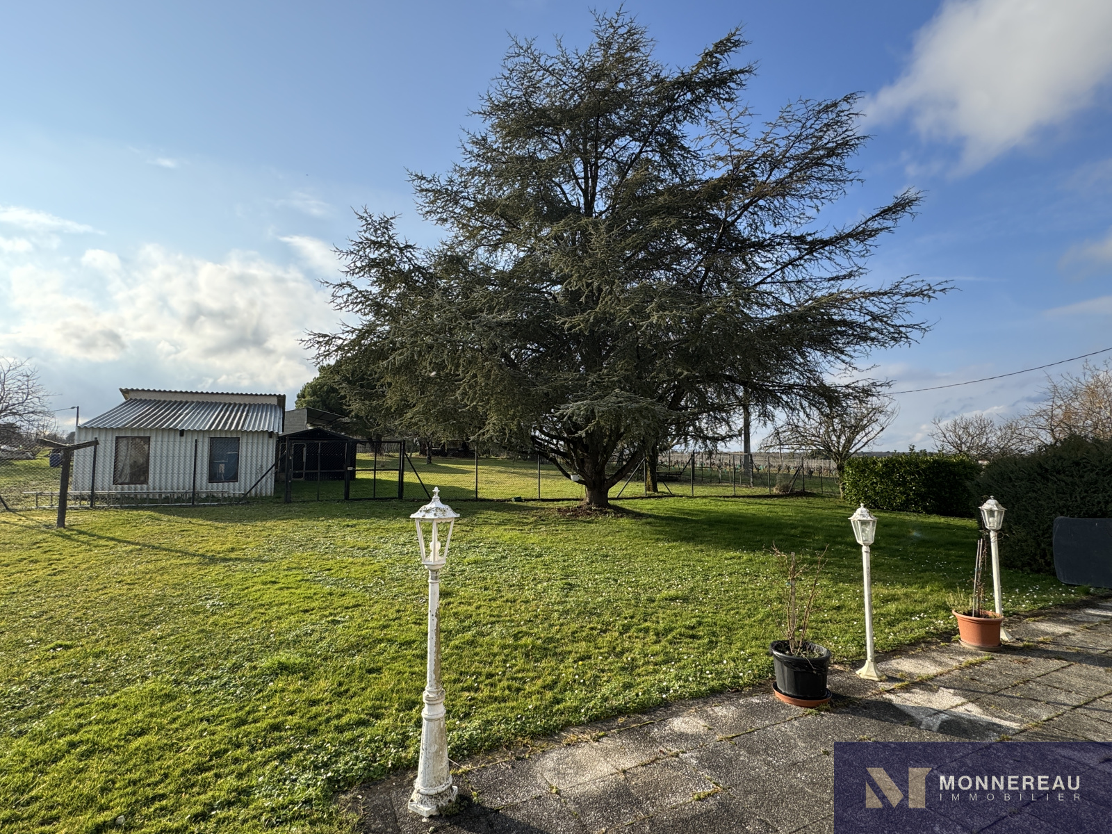Entre BARBEZIEUX et BAIGNES - Maison individuelle de 130 m² habitables construite en 1982 sur un terrain arboré d'environ 3180 m². Vous serez séduit par les volumes de la pièce de vie avec une partie cuisine équipée et une mezzanine. Salon dans la continitué qui d'ouvre sur une terrasse bien exposée. Chauffage au sol par pompe à chaleur. Appentis de 50 m² à usage de garage , cave, abris. Des travaux de modernisation et de rafraichissement sont à prévoir dans la partie nuit mais c'est parfaitement habitable. Le terrain en deux parties cloturées est idéal pour ceux qui ont besoin d'espace. Accès indépendant au terrain sur l'arrière avec hangar et atelier. Situation très agréable.