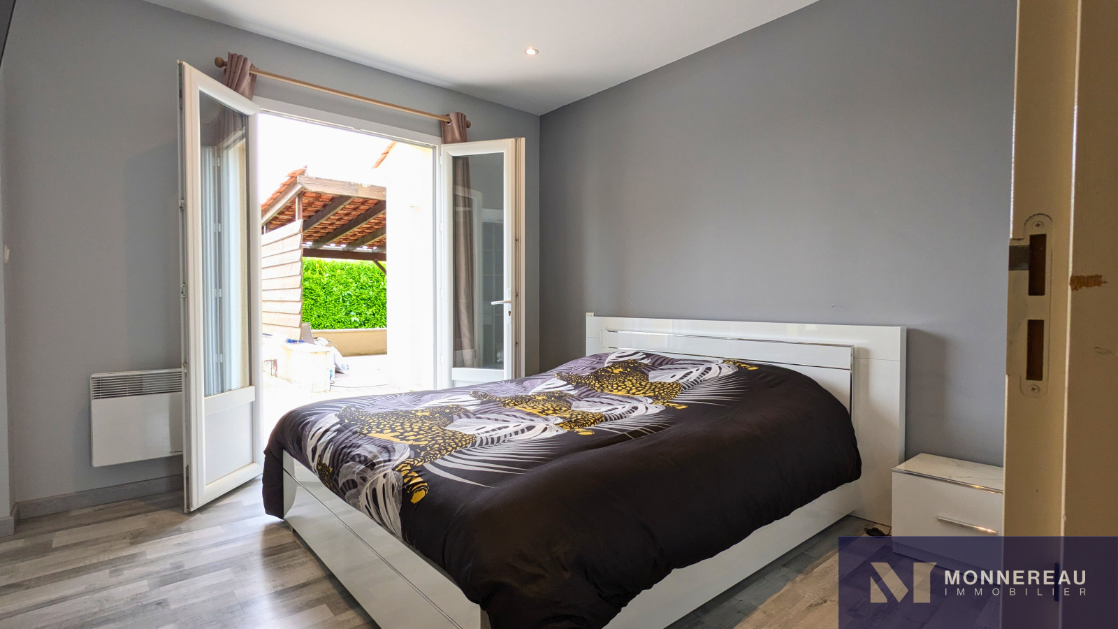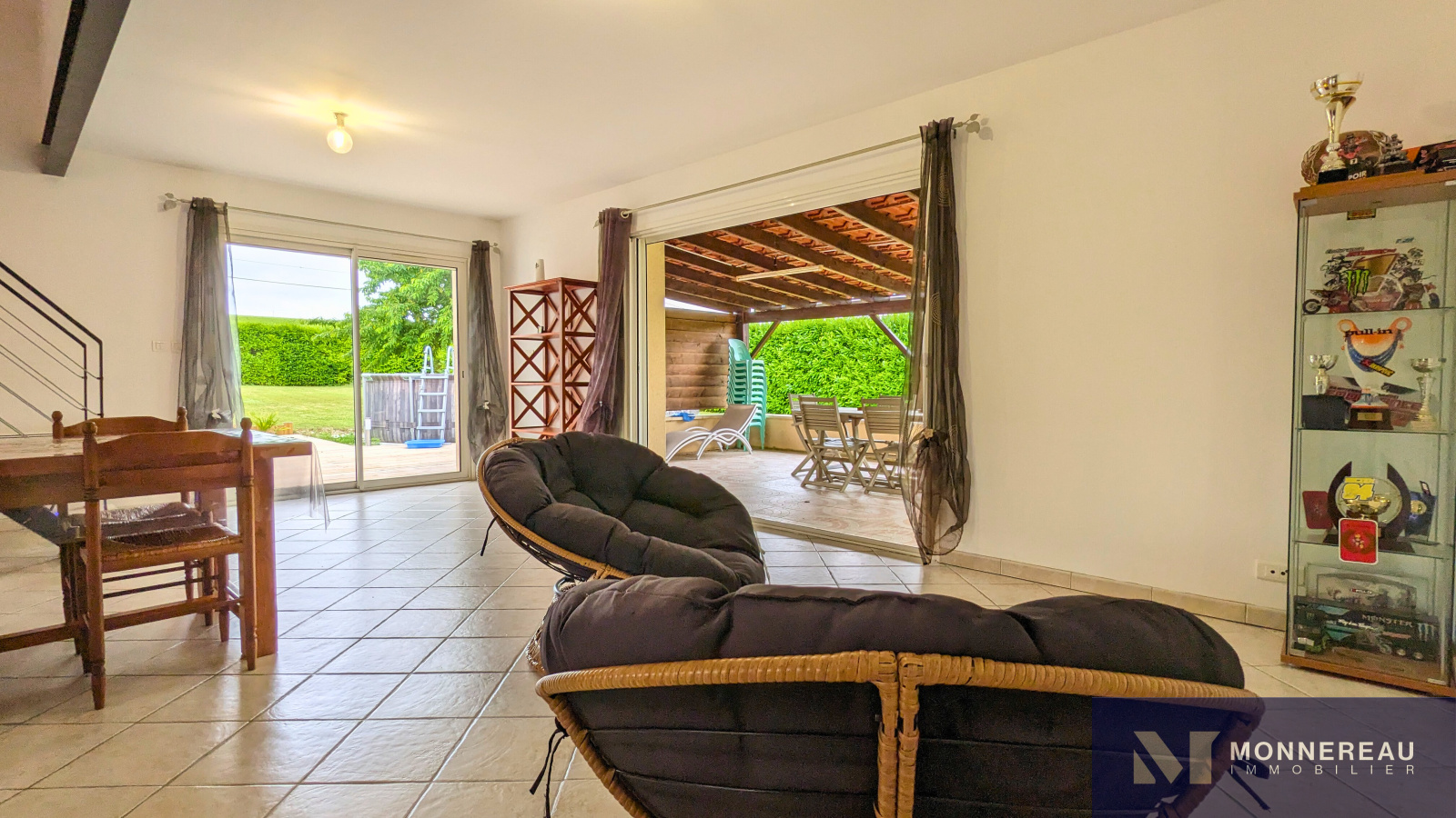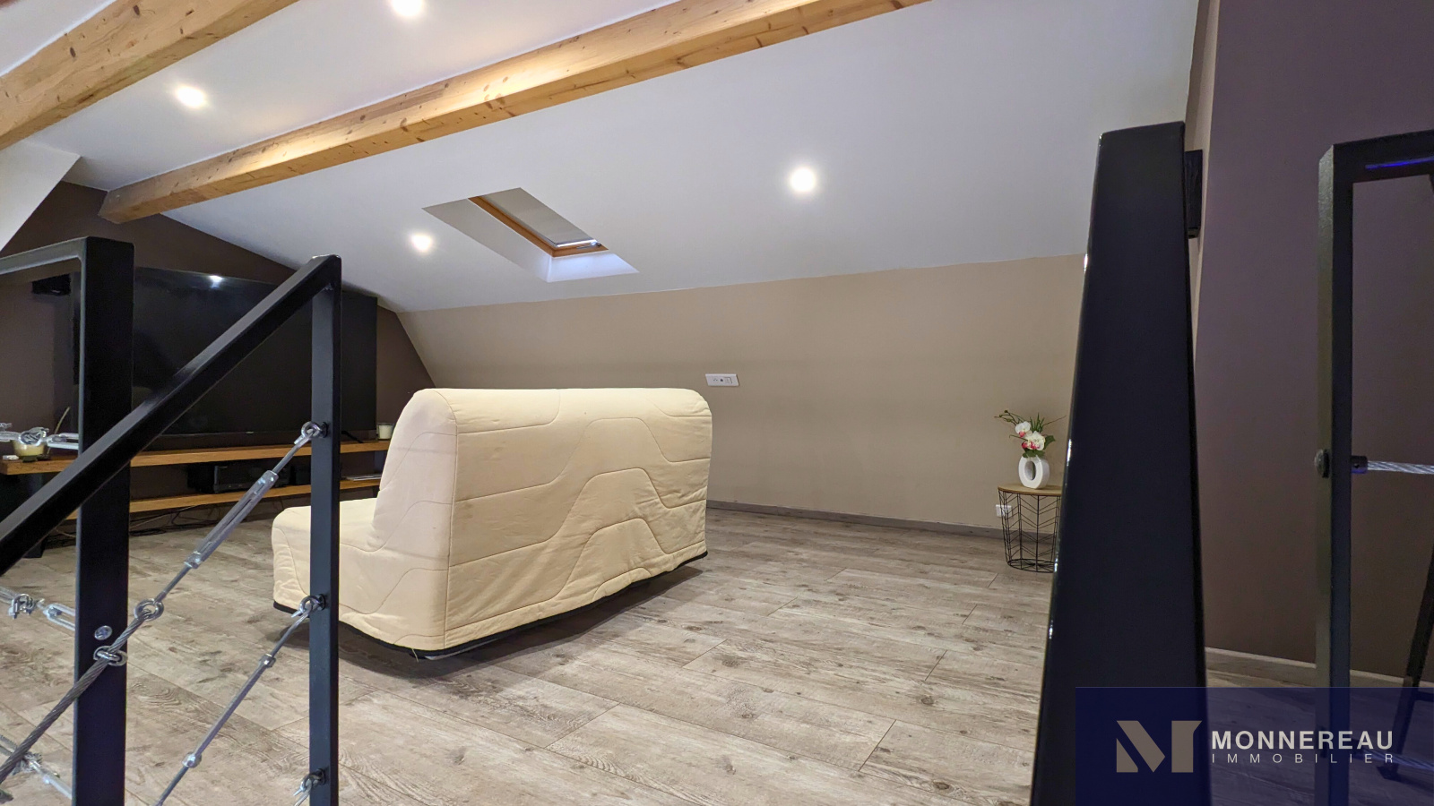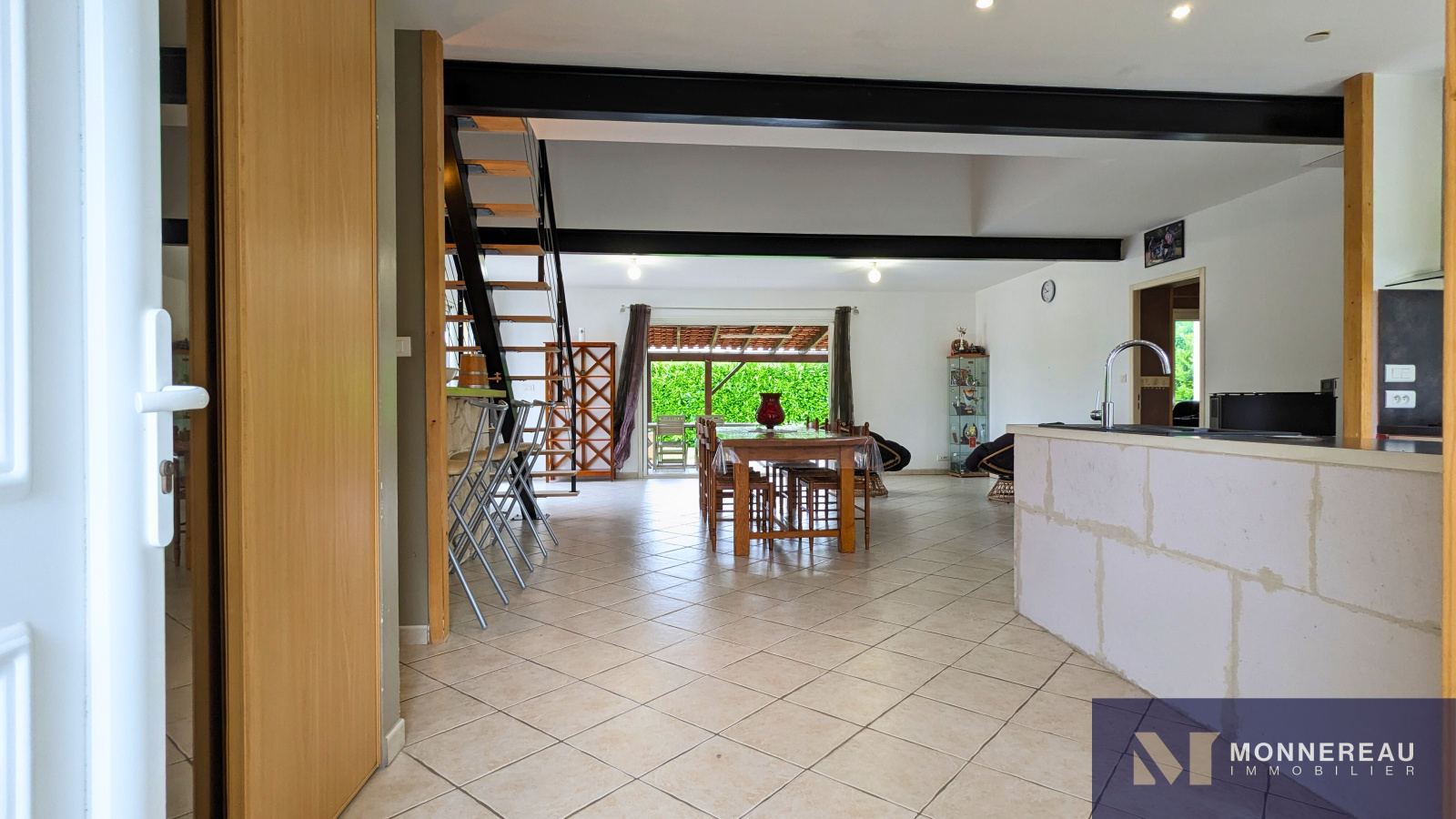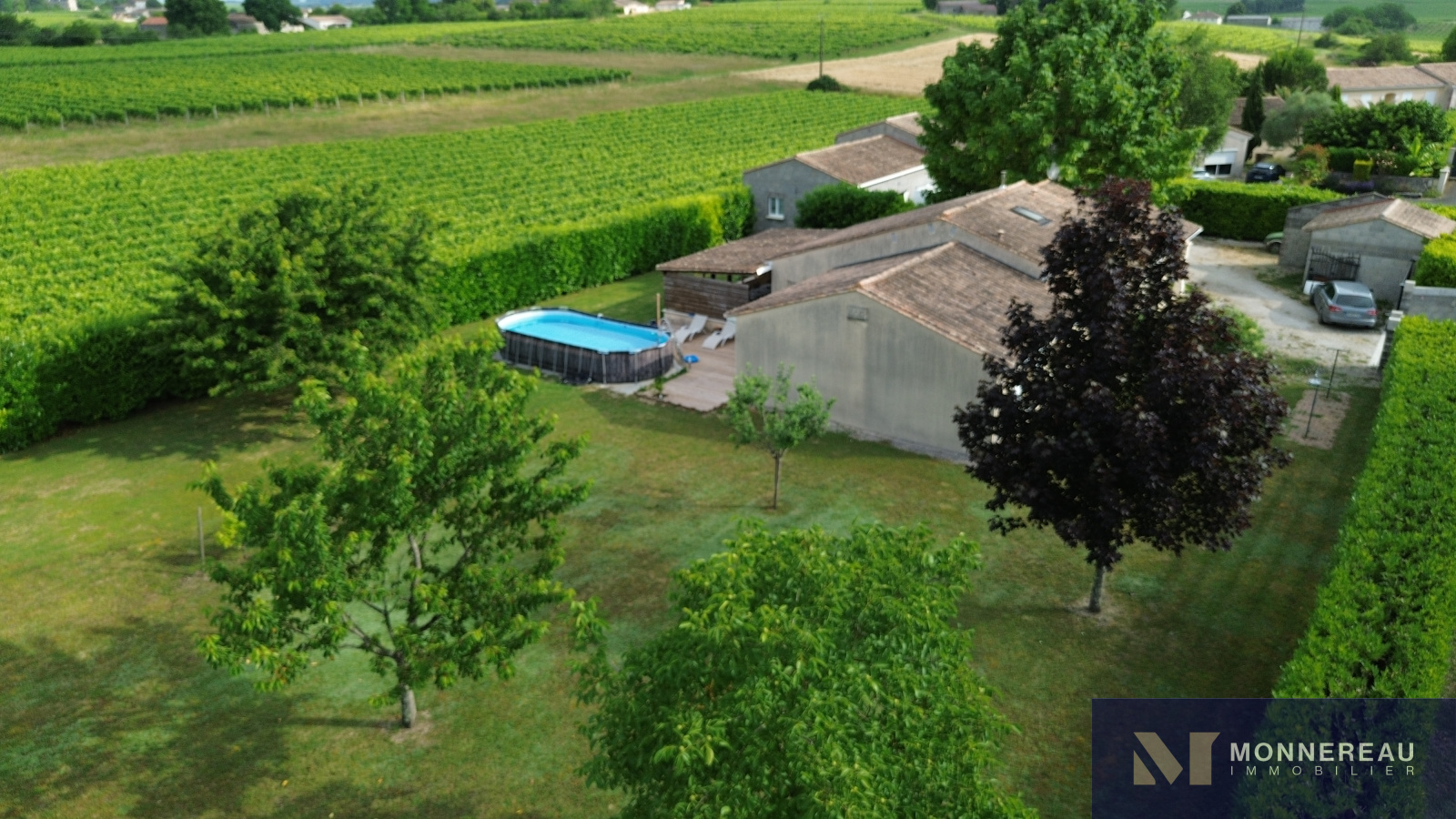 Entre Angoulême et Cognac - Proche CHATEAUNEUF (16) - Située dans un environnement calme, à la campagne, cette charmante maison est édifiée sur un terrain de 2100 m² arboré à proximité des commodités. La pièce de vie spacieuse et lumineuse est parfaite pour recevoir. Cuisine ouverte équipée d’un coin bar sous l’escalier très conviviale. L’espace salle à manger profite d’une belle hauteur sous plafond, renforçant la sensation d’espace et de confort. Trois chambres de plain-pied et salle de bains. Mezzanine au potentiel d’aménagement supplémentaire : chambres, bureau ou salle de jeux… La décoration est sobre, moderne, idéale pour une vie de famille active et facile d'entretien. Terrasse couverte. Un bâtiment indépendant à usage de garage avec abri à camping car fera le bonheur de ceux qui ont besoin d'espace pour stocker ou pour un atelier. Annexe. C'est un bel ensemble !