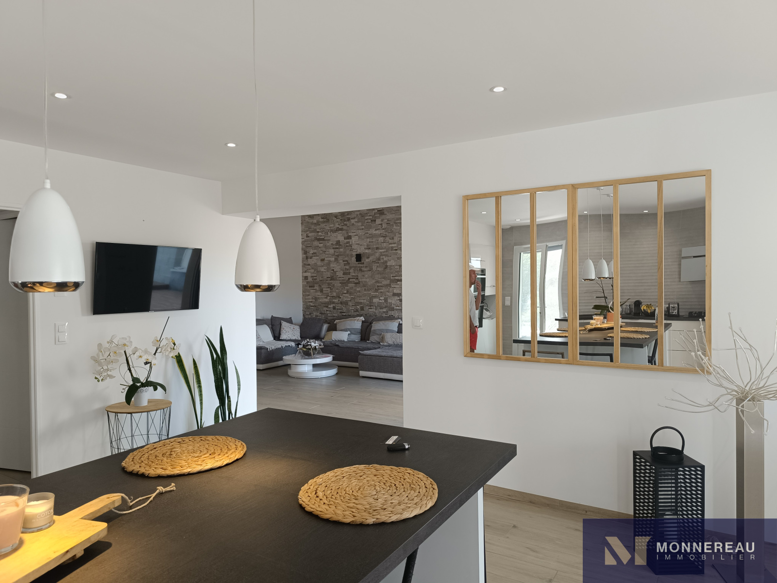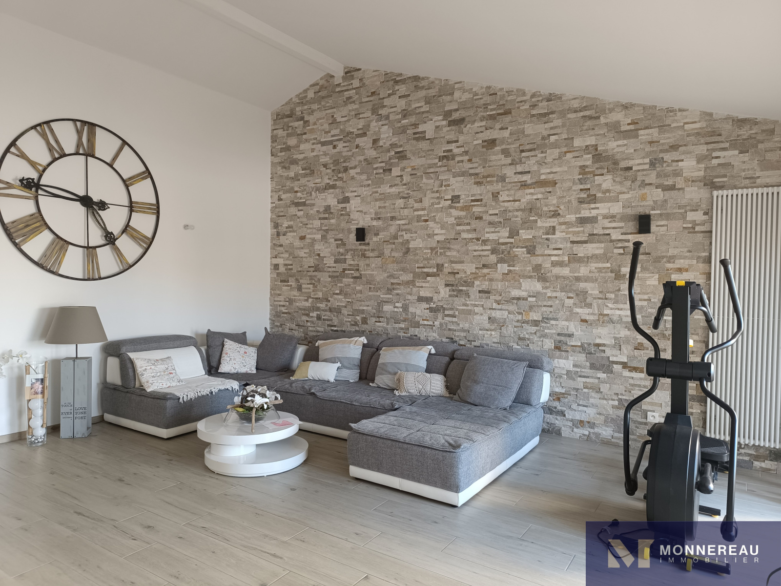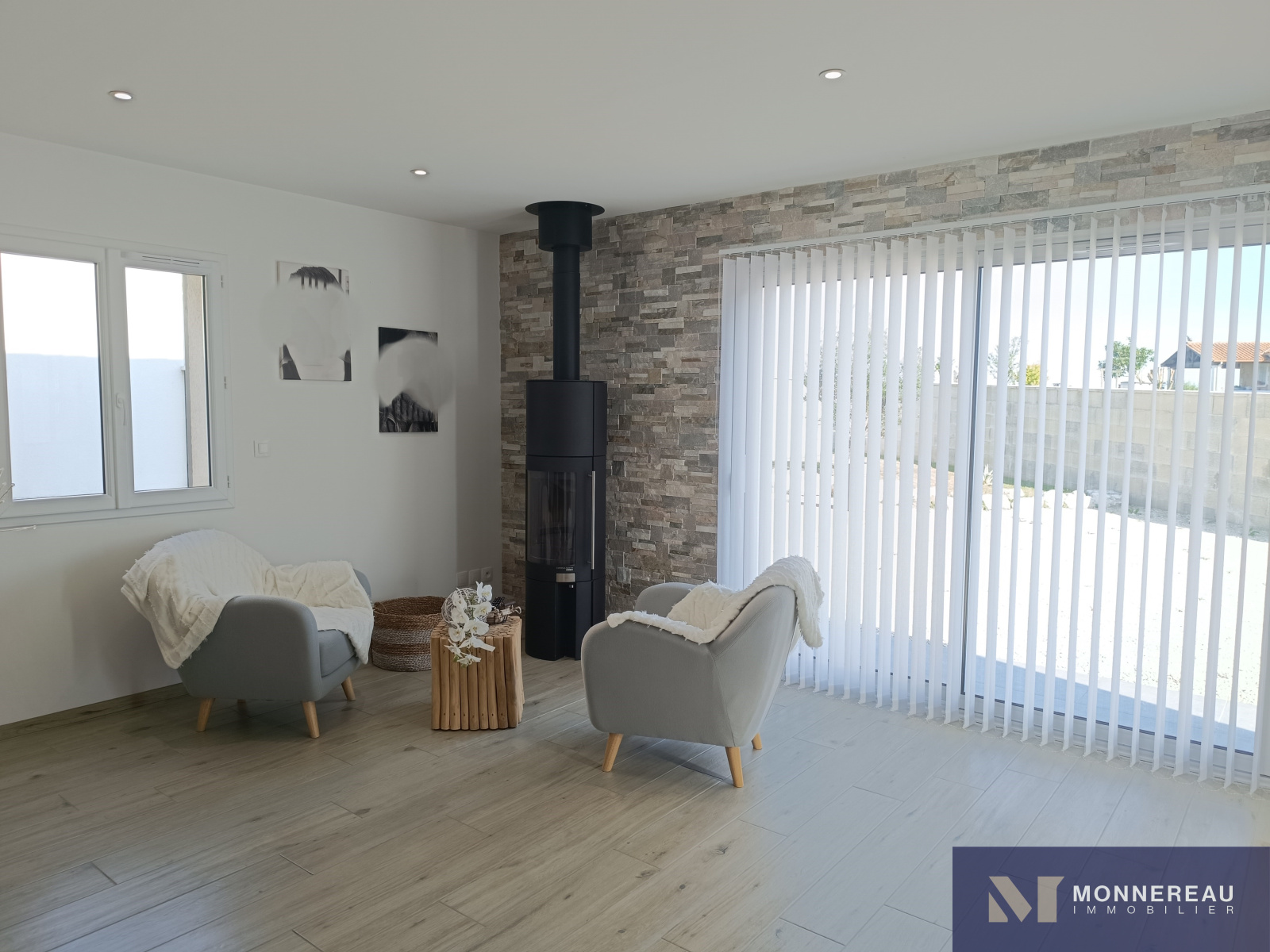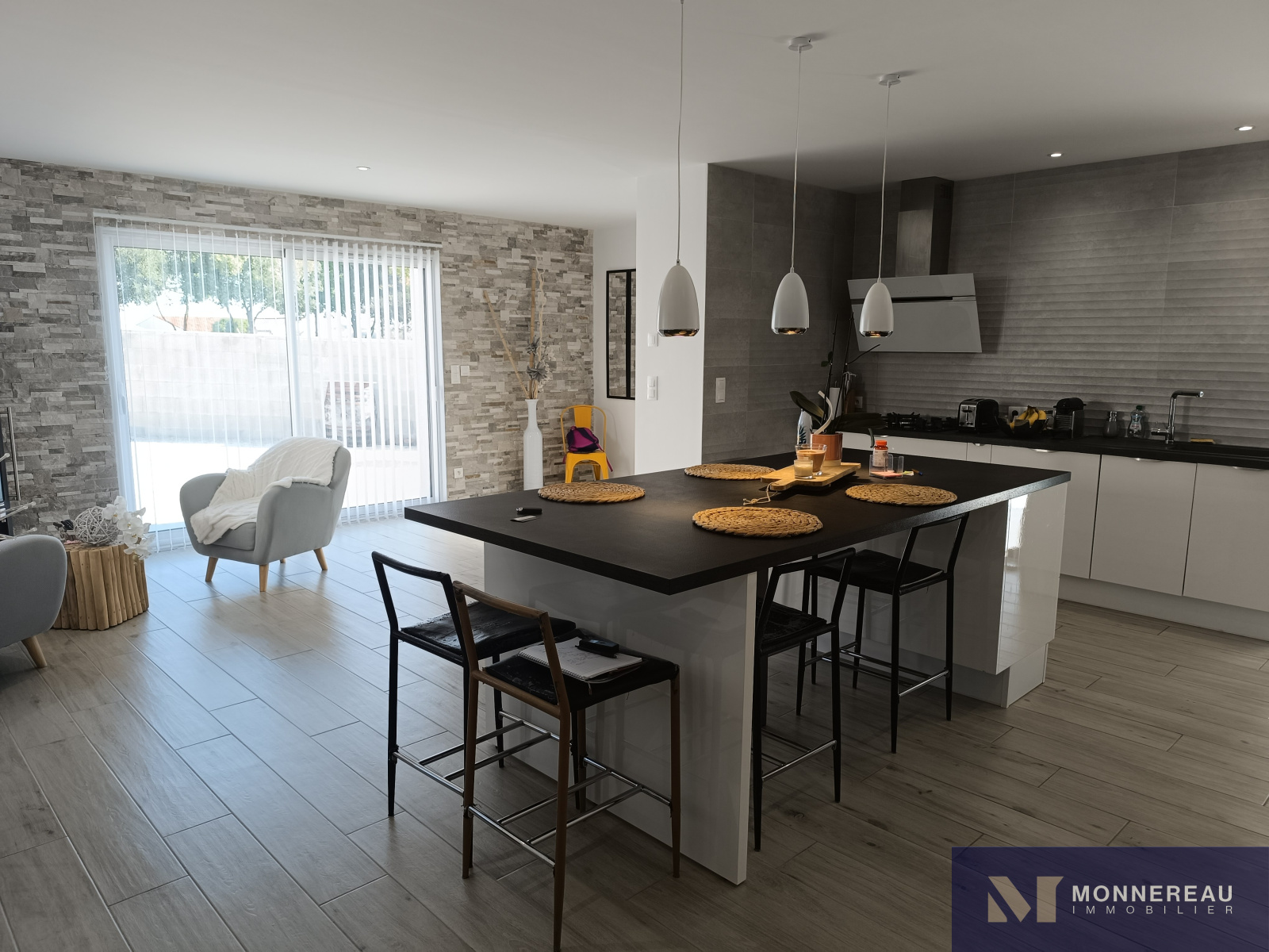 Entre BARBEZIEUX et CHATEAUNEUF (16) - Proche échangeur N10 pour BORDEAUX et ANGOULEME - Agréable maison dont la construction s'est terminée en 2018. Elle offre 132 m² habitables de plain-pied sur une parcelle d'environ 965 m². Belle pièce de vie de 73 m² très lumineuse avec cuisine équipée. Poêle à bois. Ce séjour profite d'un accès direct sur une vaste terrasse bois avec jacuzzi. La partie nuit se compose de trois chambres, dont une avec dressing. Salle d'eau et buanderie/chaufferie. Chauffage au sol par pompe à chaleur. Production électrique par panneaux solaires. Un soin tout particulier a été porté sur l'aménagement des extérieurs. Joliment paysagé, le jardin souligne parfaitement le style de la maison. L'espace piscine est mis en beauté par une autre terrasse bois et une pergola bio climatique. C'est très convivial. Mitoyenneté sur un côté, sans vis à vis. On pose ses valises ! Aucun travaux à prévoir.