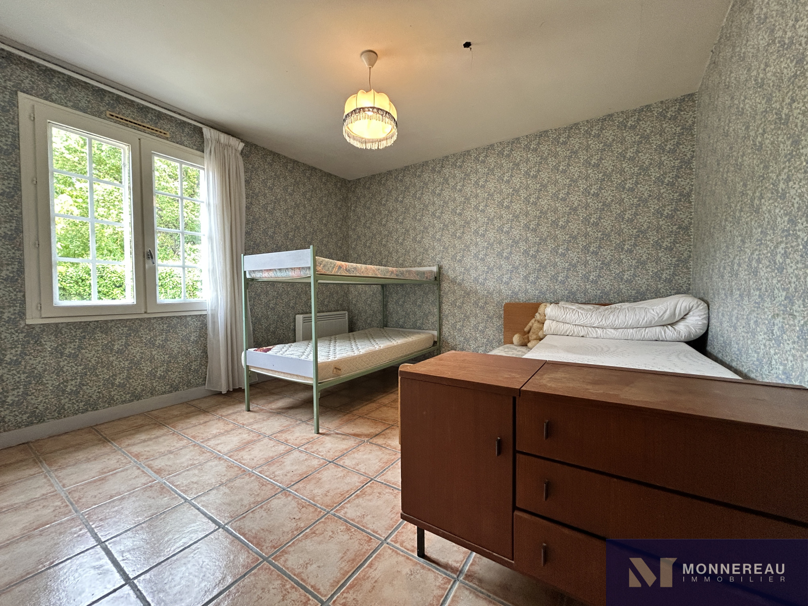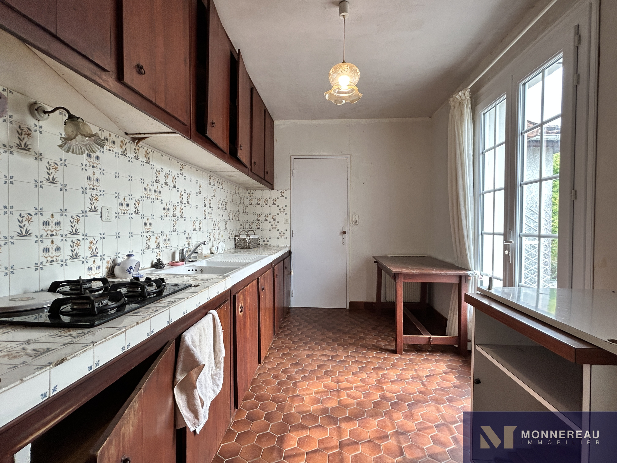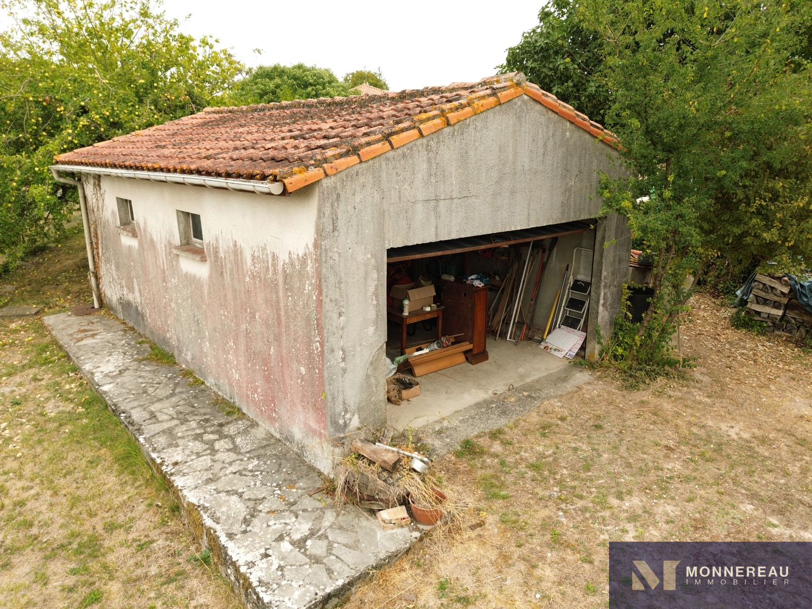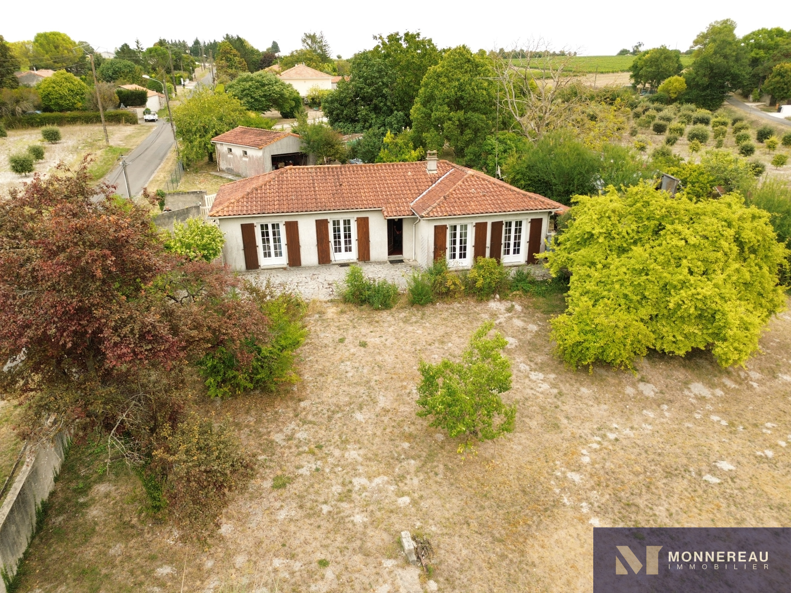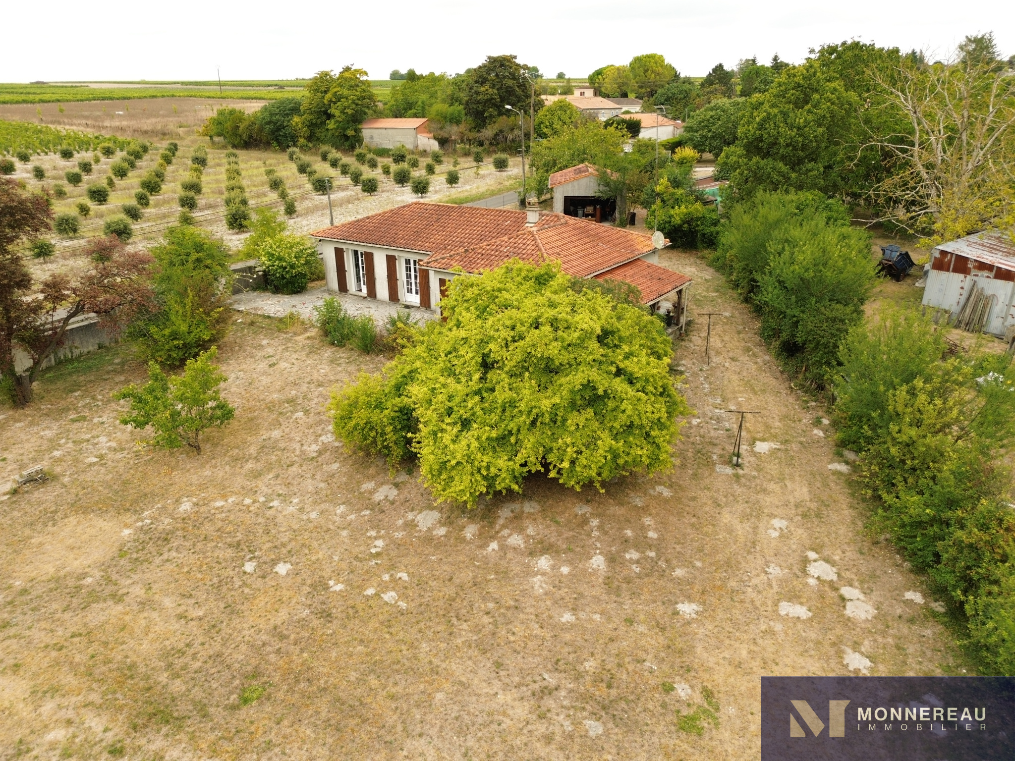 SALLES D'ANGLES (16130) - Située à 10 minutes de COGNAC et 15 minutes d'ARCHIAC, maison individuelle de 95 m² habitables de plain-pied édifiée sur un terrain clos et arboré de 1820 m². Entrée, cuisine séparée, séjour avec insert, trois chambres, buanderie, salle de bains. Chauffage électrique. Garage indépendant de 36 m². L'habitation nécessite des travaux d'isolation, d'électricité et de modernisation. Elle est pour autant entretenue et habitable en l'état. Double vitrage pvc en partie et assainissement individuel non conforme. Elle se trouve au calme d'un petit hameau, la situation est agréable.