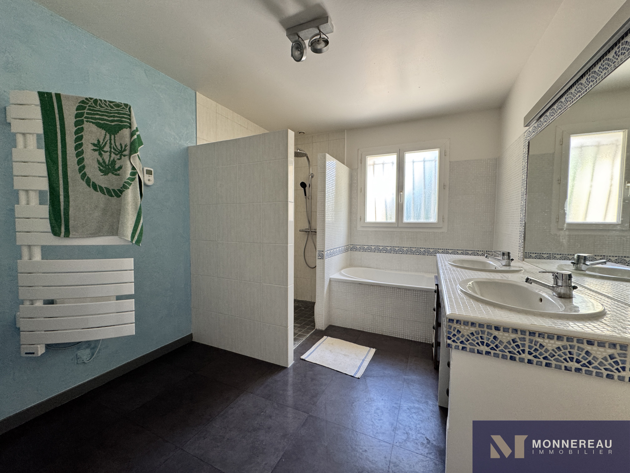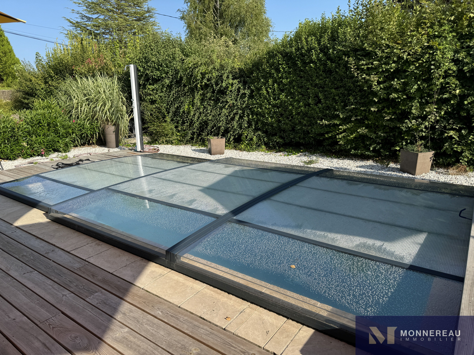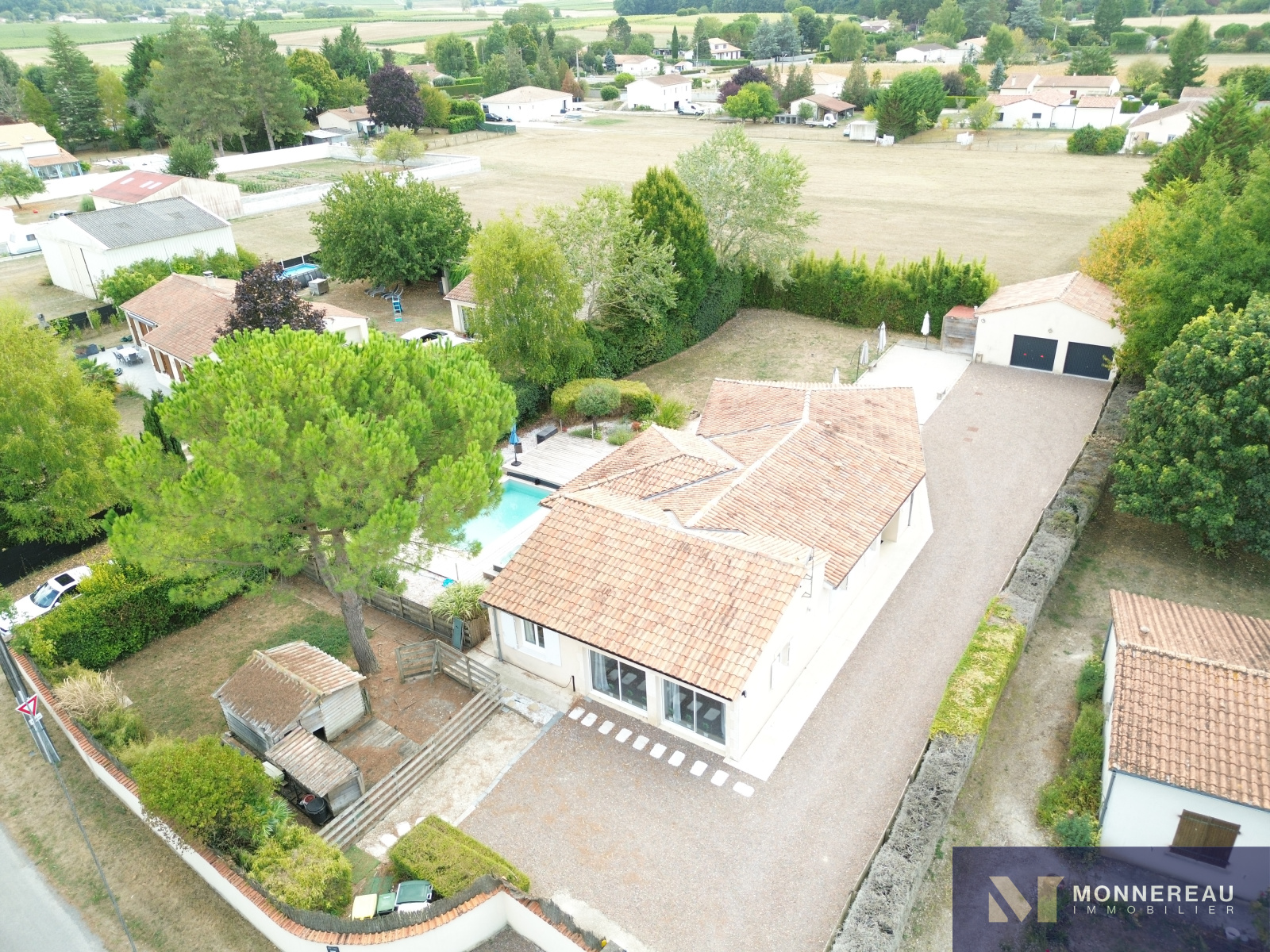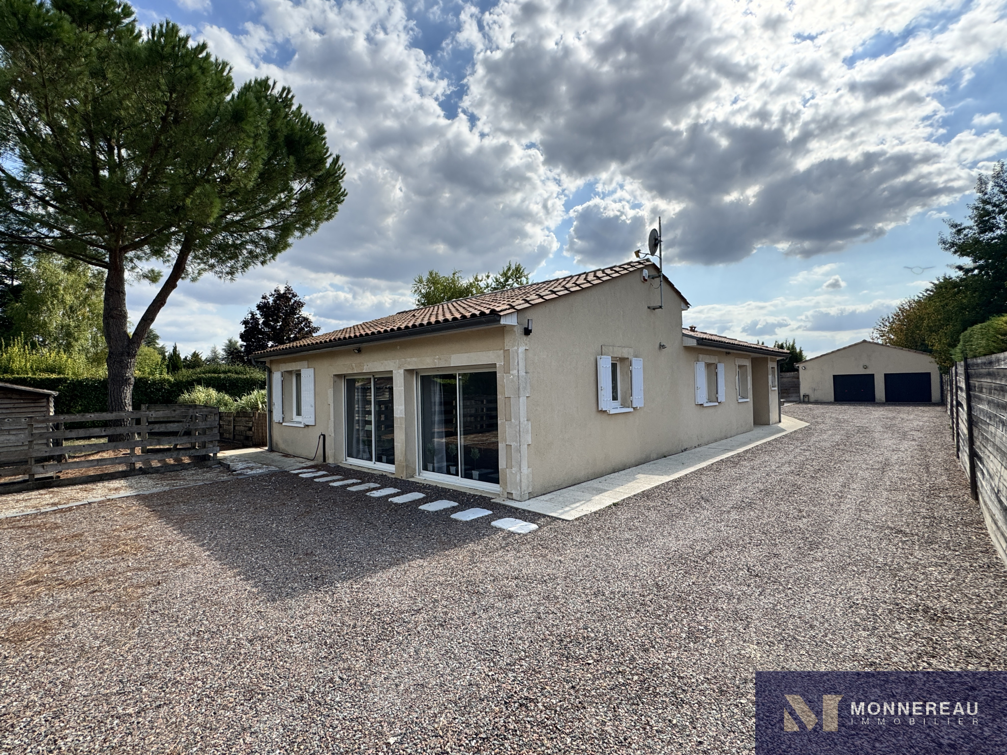 Proche de BARBEZIEUX (16) - A 3 mn de la ville, des écoles et services, maison individuelle de plain-pied d'environ 180 m² habitables édifiée sur un terrain clos de 1589 m². Vous serez séduit par l'espace piscine chauffée avec jaccuzi 6 places créé récemment. Terrasse couverte. Couverture de la piscine chauffée rétractable. Elle se glisse sous la terrasse bois surélevée. On se croirait en vacances. Beau séjour traversant avec cuisine ouverte. Grand salon séparé. Bureau ou quatrième chambre avec point d'eau et accès indépendant. Partie nuit séparée avec trois chambres et salle de bains avec douche à l'italienne. Agréable jardin clos arboré et paysager. Terrain de pétanque. Double garage indépendant avec grenier. Très belles prestations ! Exclusivité !