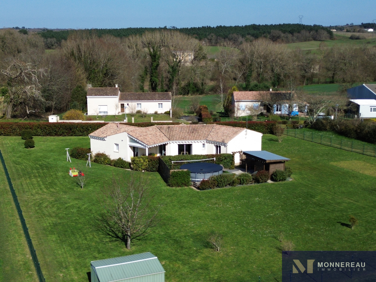 Prestations : chauffage au sol électrique, climatisation réversible, menuiseries PVC double vitrage, isolation performante. Ballon électrique neuf. Adoucisseur d'eau. Assainissement individuel.