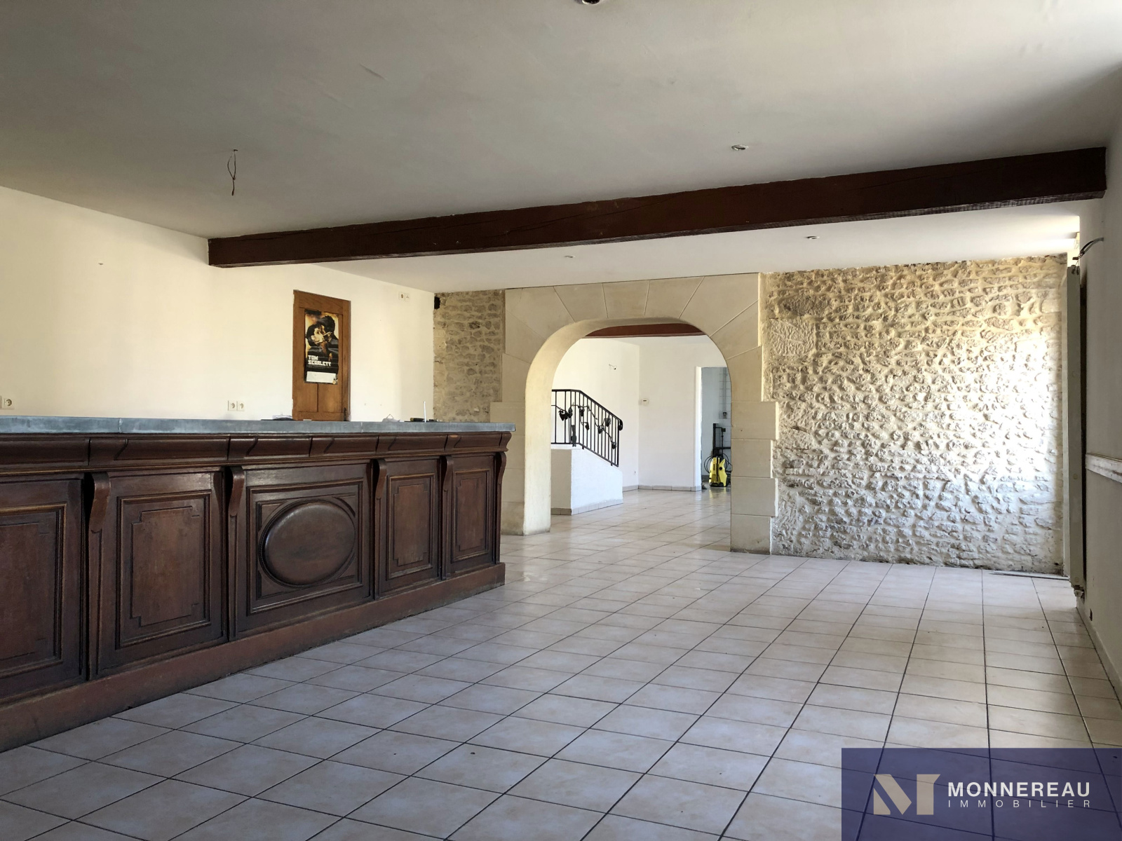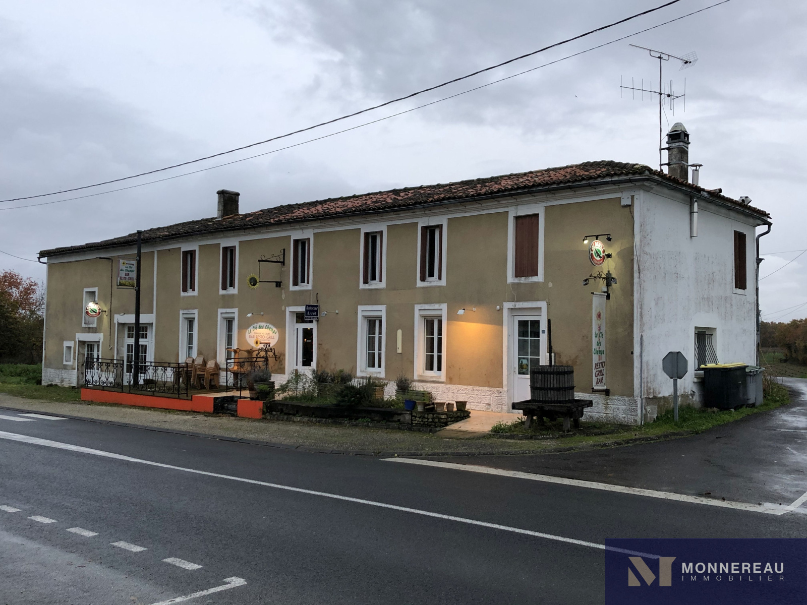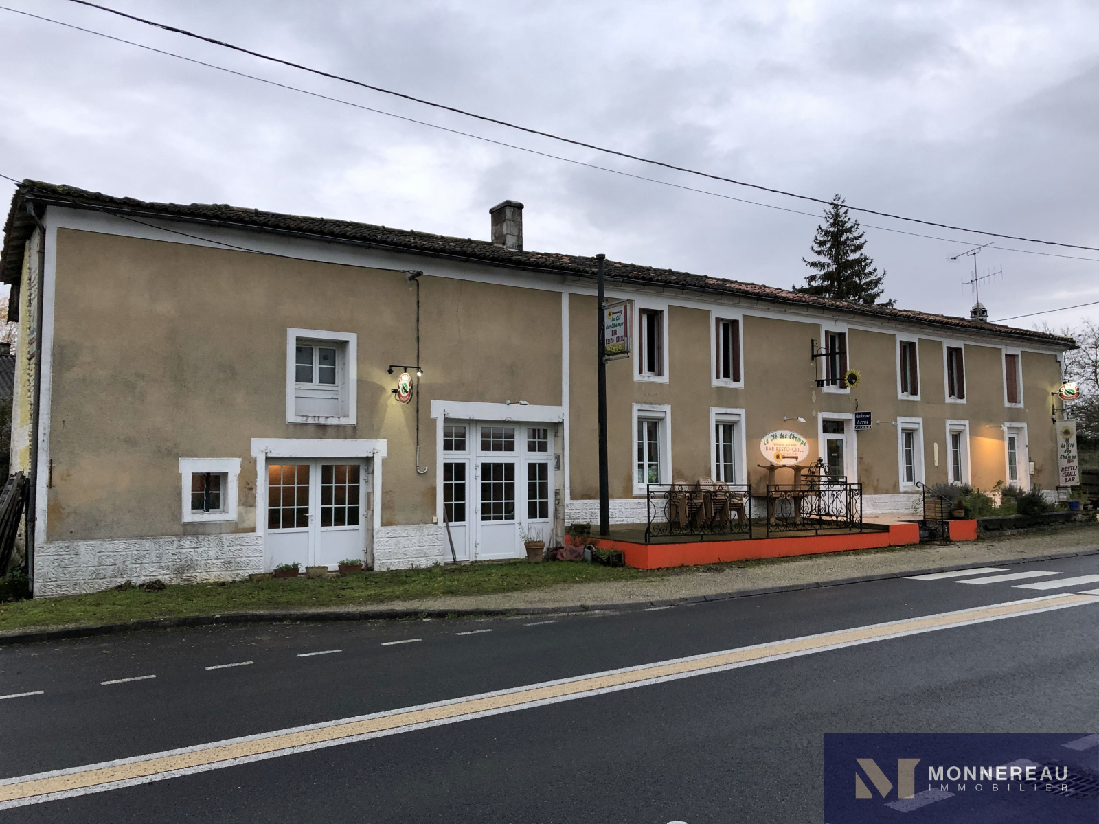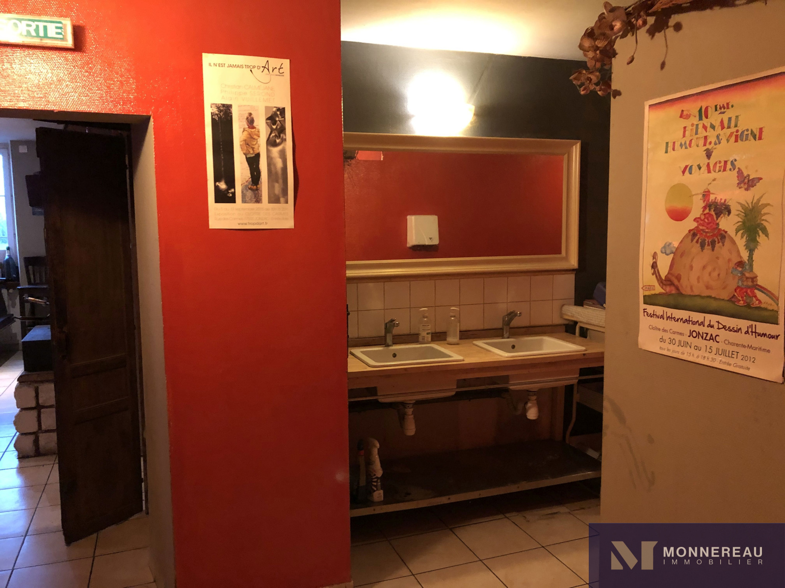 Entre BARBEZIEUX et JONZAC (17) - Immeuble mixte qui abritrait un restaurant en rez-de-chaussée et un appartement à l'étage. L'immeuble est vendu sans fonds de commerce mais avec possibilité de créer une activité bar/restaurant. Belle salle de bar avec cheminée de 53 m², deux autres salles de restaurant, cuisine, sanitaires aux normes handicapés, cave et salle de musique de 45 m². L'appartement offre un séjour dee 35 m² , 3 grandes chambres et salle de bains. Un grenier aménageable de 70 m² au volume surprenant est un vrai potentiel. Chauffage central au gaz. Des travaux importants réalisés en 2005 font que les lieux peuvent recevoir immédiatement du public sur 328 m² habitables. Cour sur l'arrière. Assainisssement individuel conforme. Possibilité de licence IV. Convient aussi à autre activité commerciale.