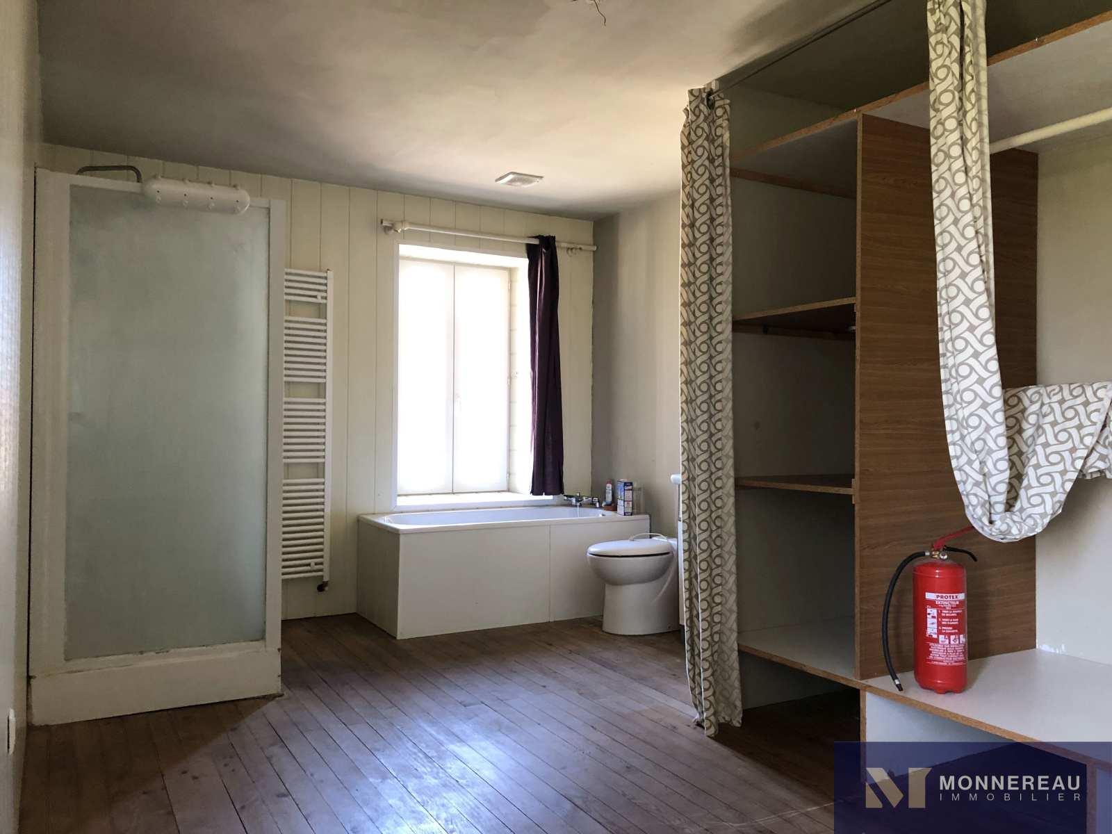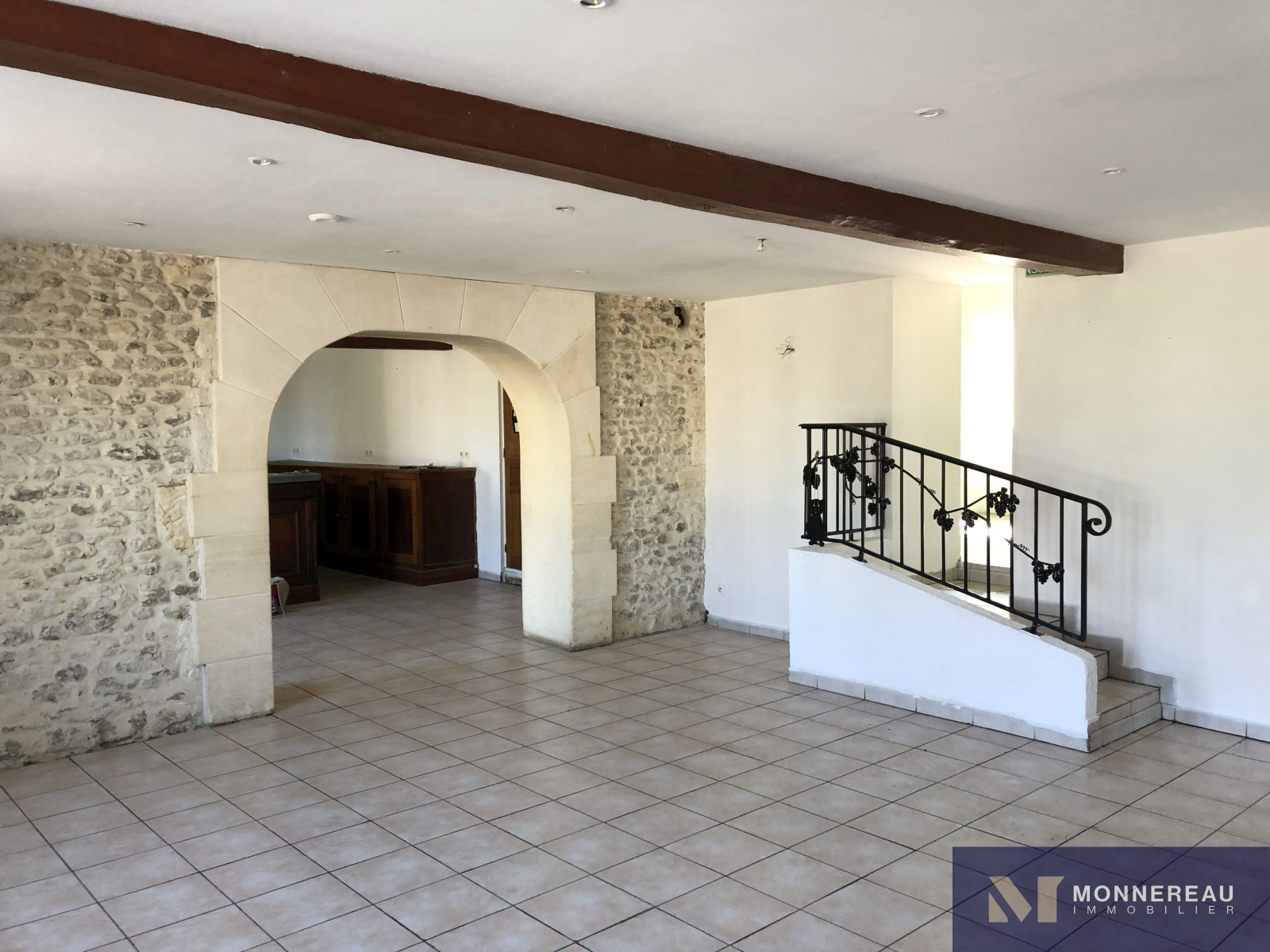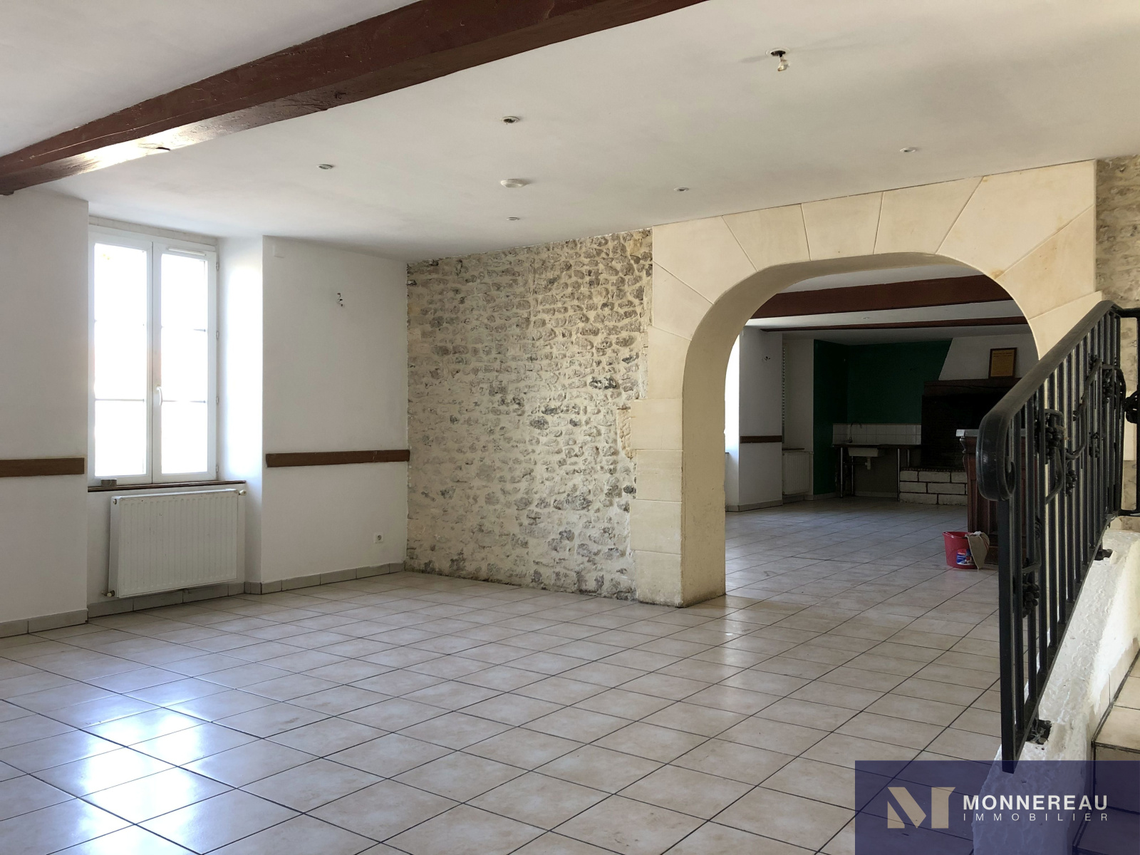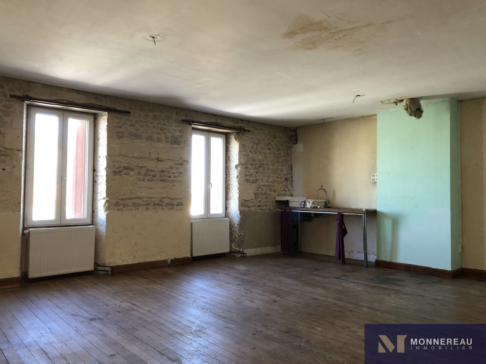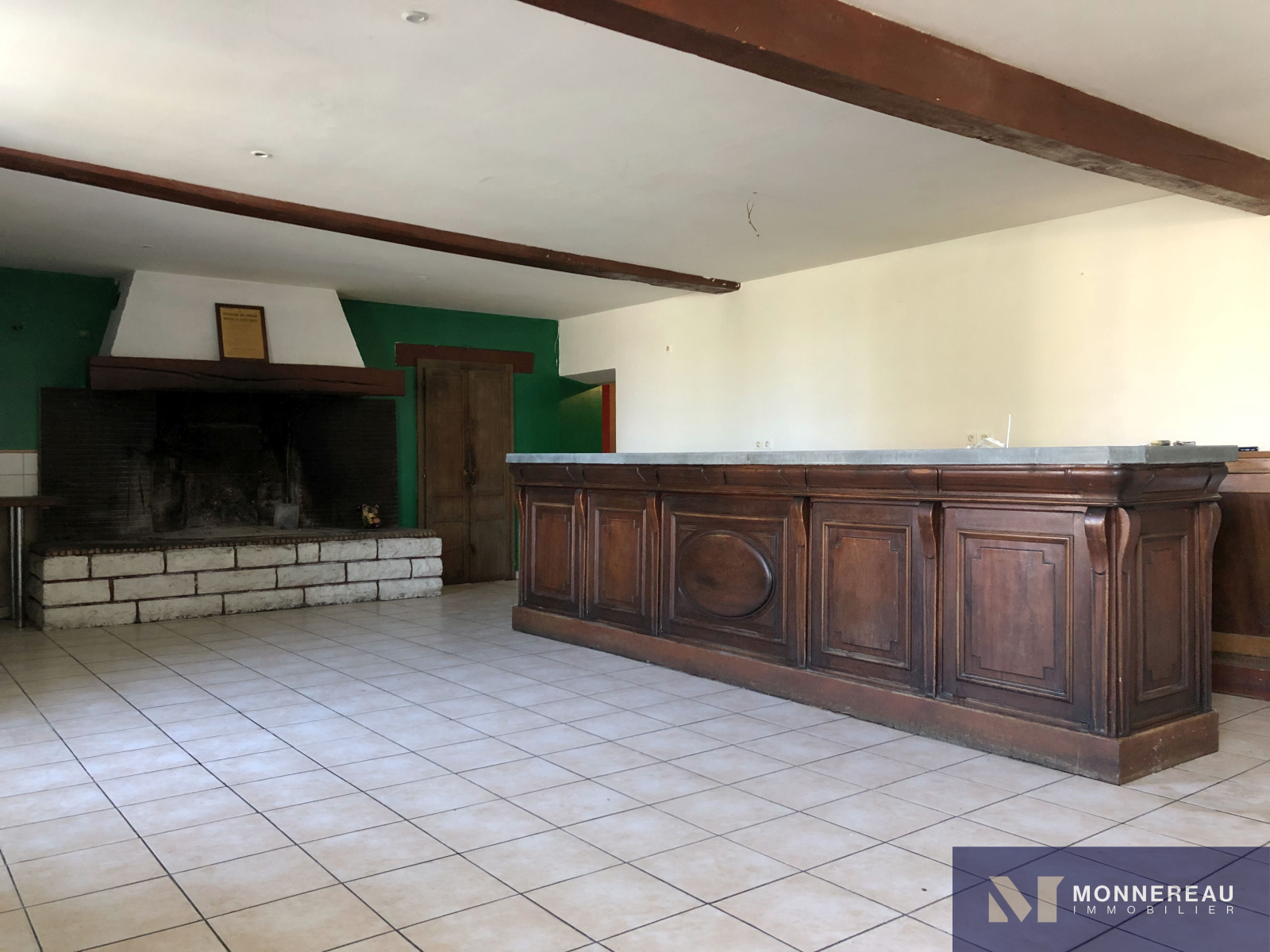 Entre BARBEZIEUX et JONZAC (17) - Immeuble mixte qui abritrait un restaurant en rez-de-chaussée et un appartement à l'étage. L'immeuble est vendu sans fonds de commerce mais avec possibilité de créer une activité bar/restaurant. Belle salle de bar avec cheminée de 53 m², deux autres salles de restaurant, cuisine, sanitaires aux normes handicapés, cave et salle de musique de 45 m². L'appartement offre un séjour dee 35 m² , 3 grandes chambres et salle de bains. Un grenier aménageable de 70 m² au volume surprenant est un vrai potentiel. Chauffage central au gaz. Des travaux importants réalisés en 2005 font que les lieux peuvent recevoir immédiatement du public sur 328 m² habitables. Cour sur l'arrière. Assainisssement individuel conforme. Possibilité de licence IV. Convient aussi à autre activité commerciale.