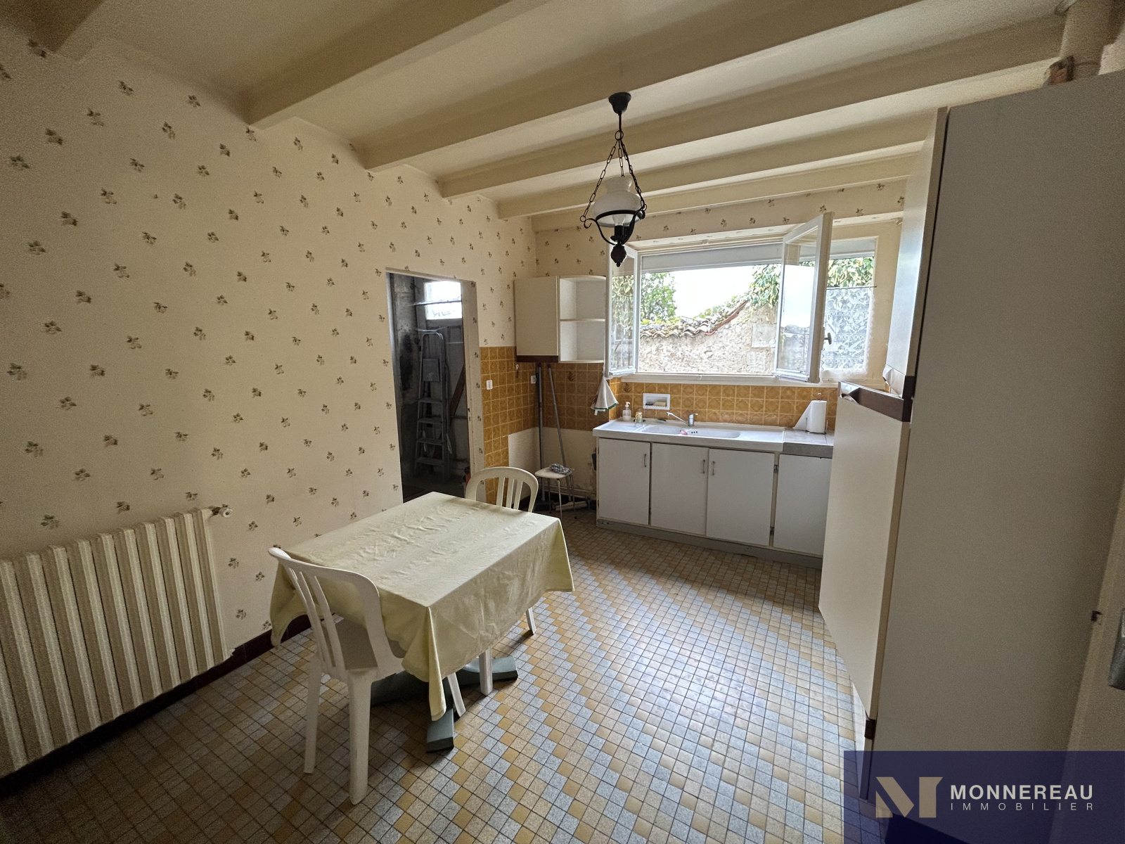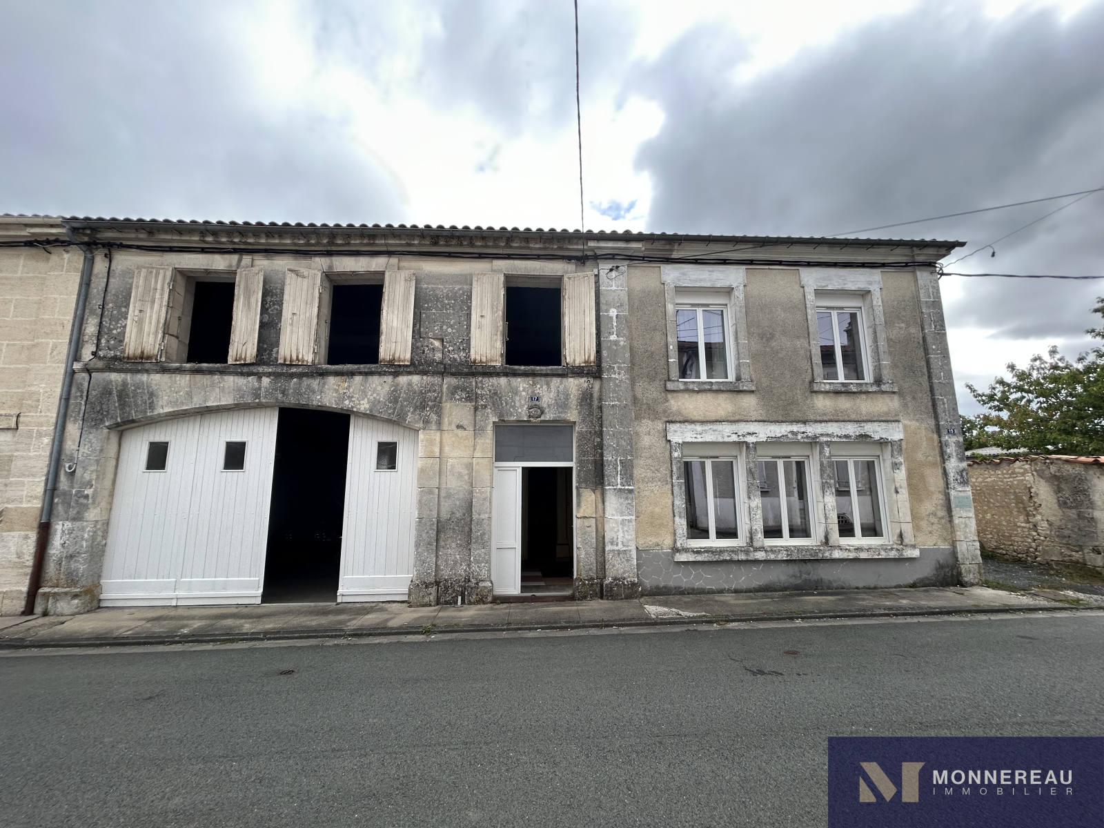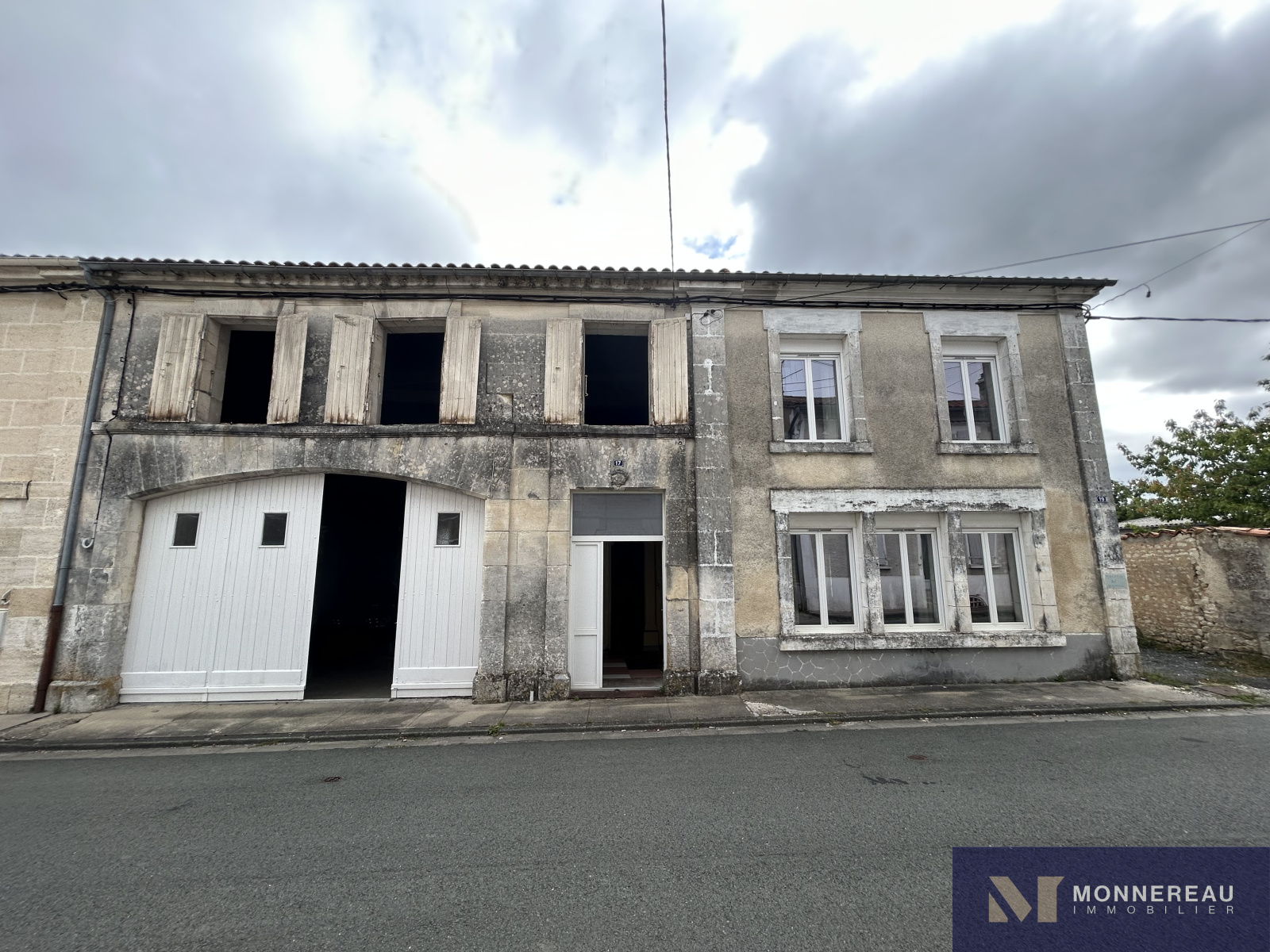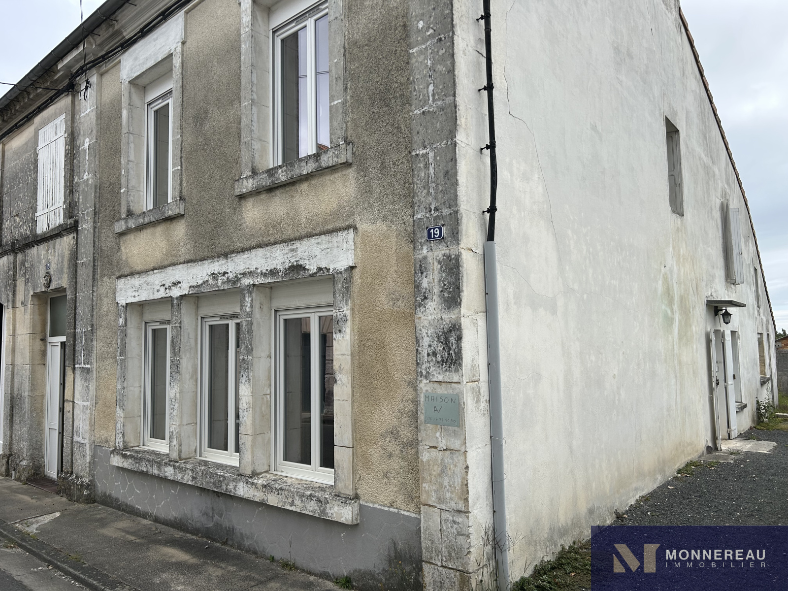 ARCHIAC (17) - Située au coeur du bourg, proche des services. Maison ancienne à rénover d'environ 120 m² habitables. Au rez-de-chaussée, entrée, salon, salle à manger avec cheminée/insert, cuisine équipée des années 70, chaufferie et remise. A l'étage, trois chambres et une salle d'eau. Grand garage attenant d'environ 75 m² avec grenier aménageable accessible par un bel escalier. Annexes attenantes et indépendantes. Courette sur l'arrière avec appentis. Jardinet clos de l'autre côté de l'impasse qui longe le pignon de la maison, face aux ouvertures de la cuisine. L'ensemble édifié sur un terrain de 462 m². Exclusivité.