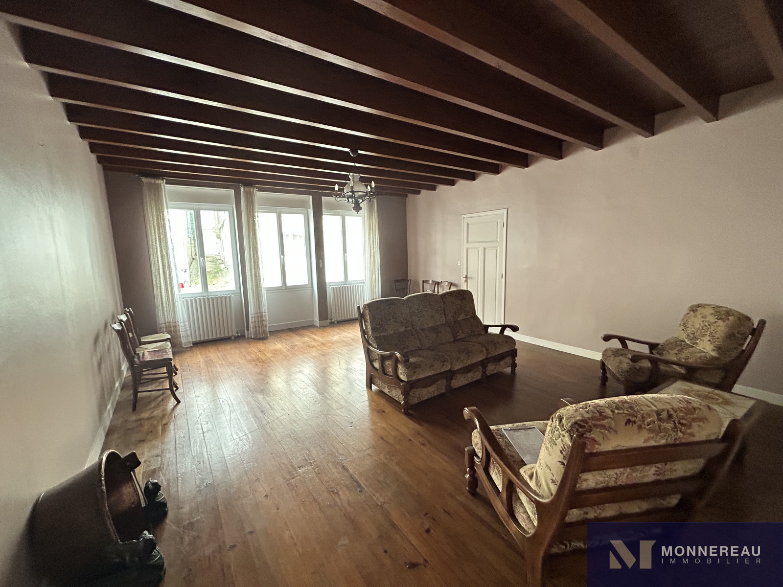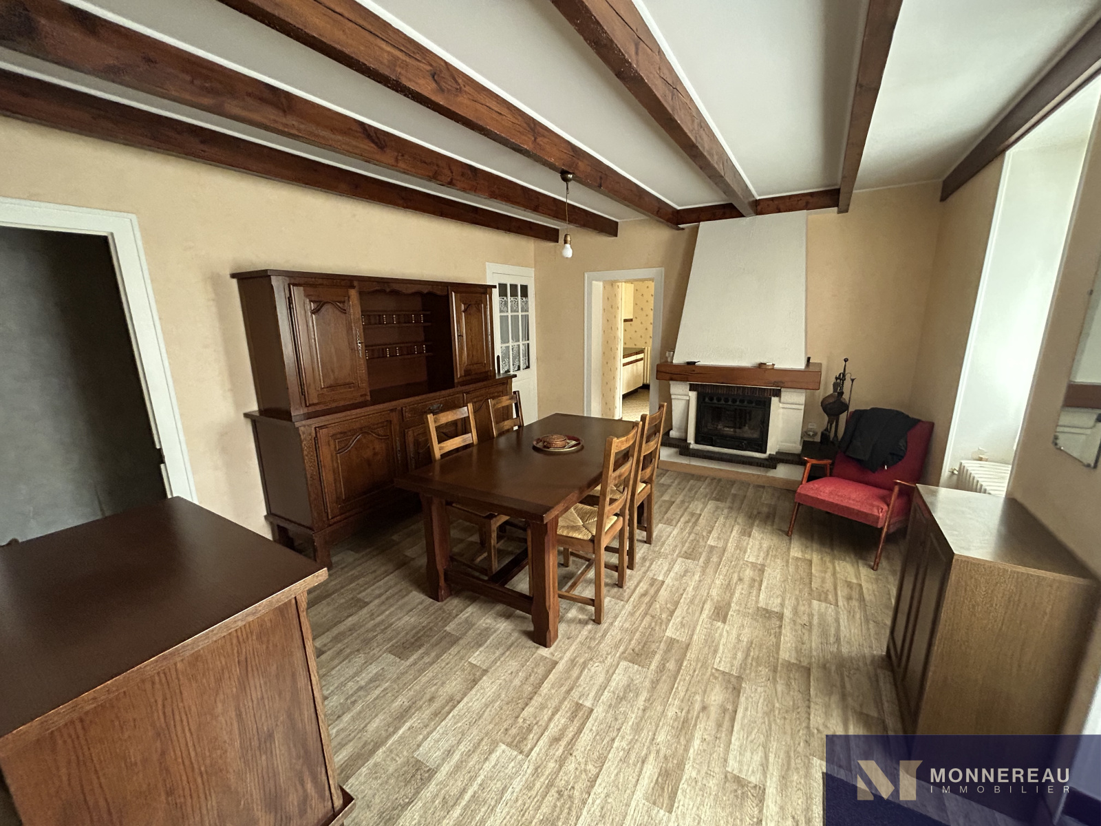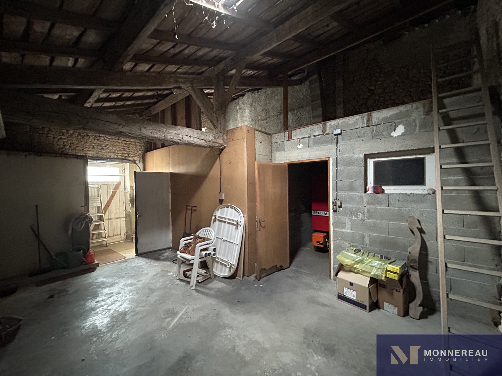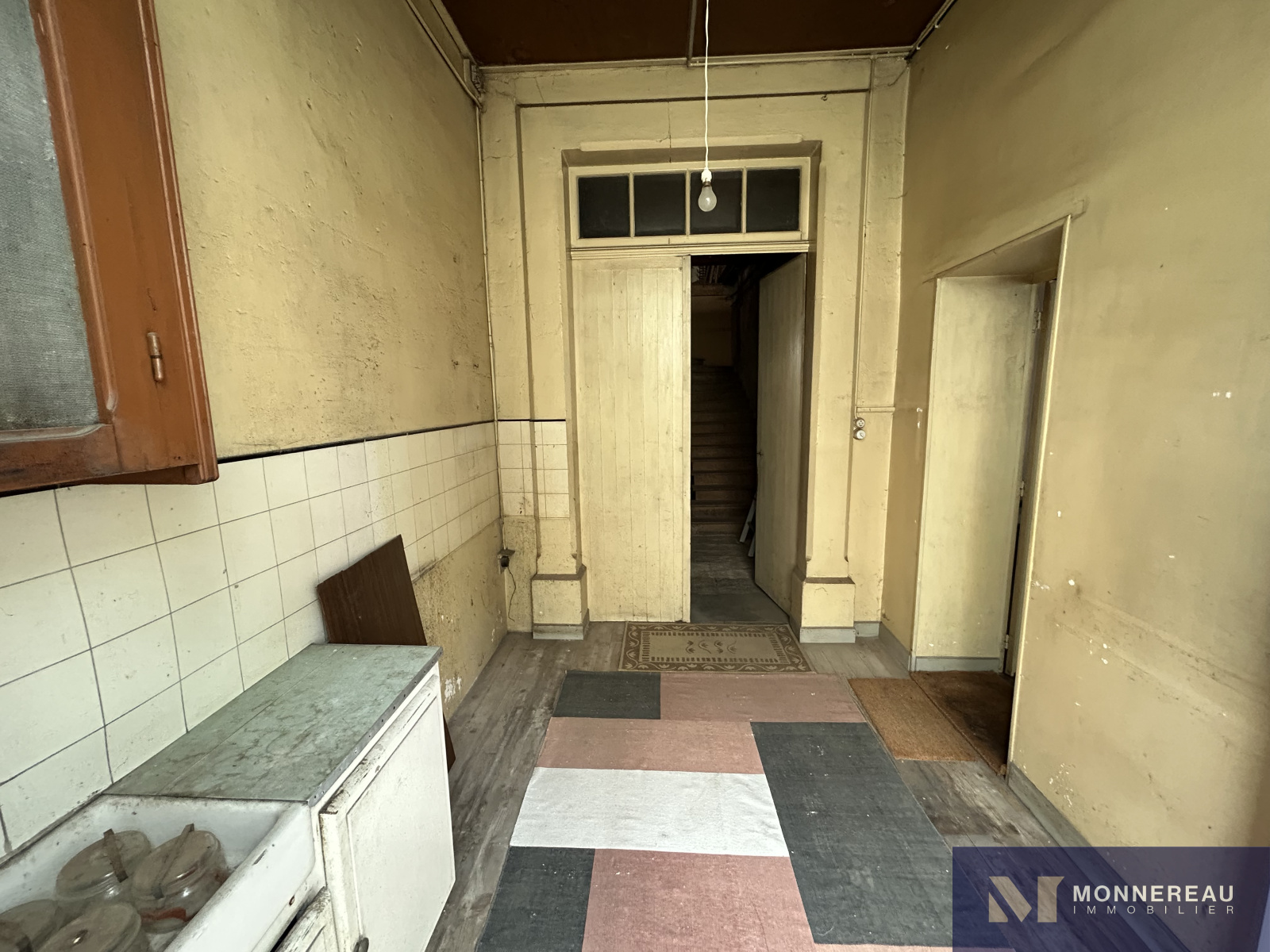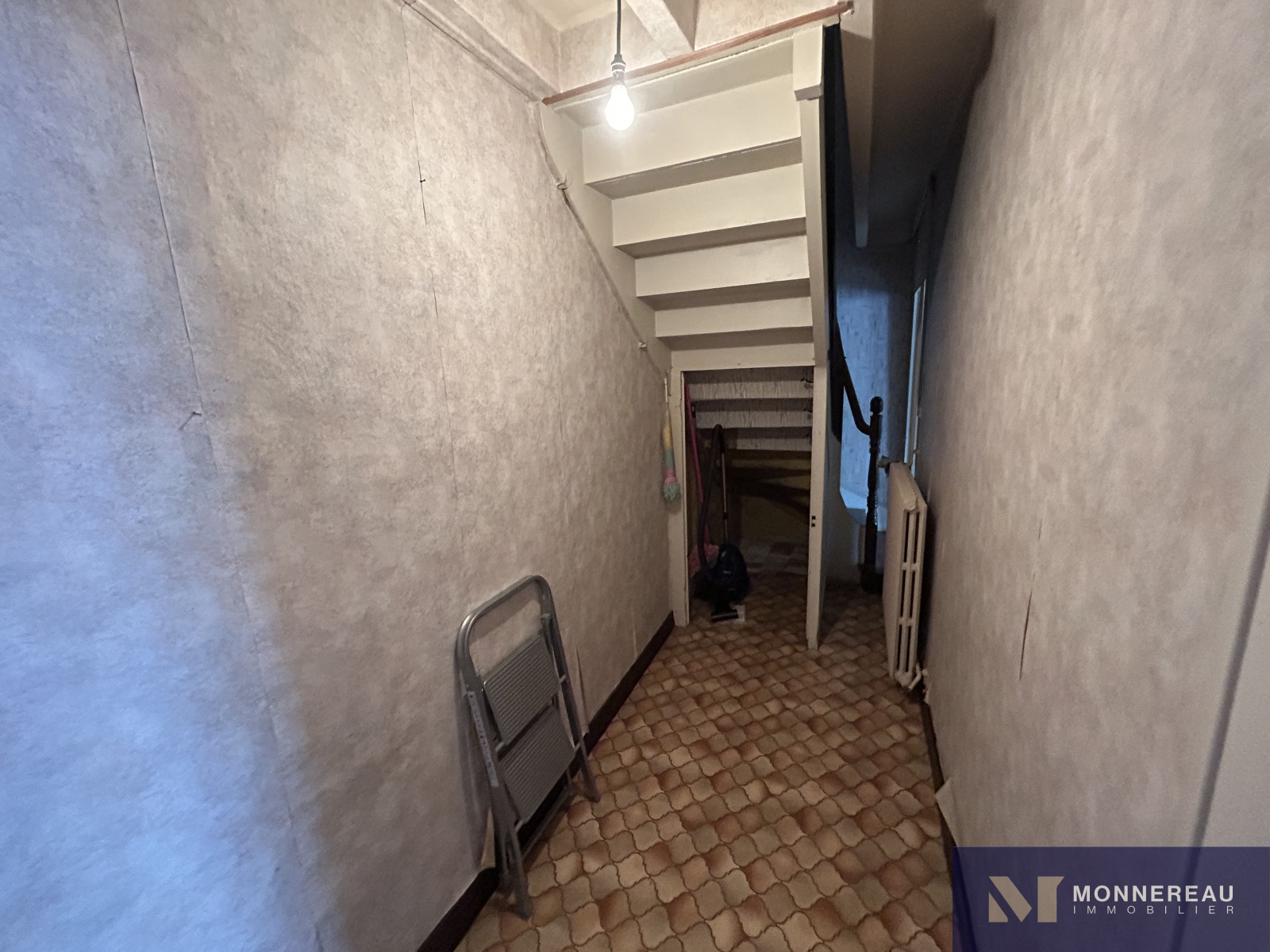 ARCHIAC (17) - Située au coeur du bourg, proche des services. Maison ancienne à rénover d'environ 120 m² habitables. Au rez-de-chaussée, entrée, salon, salle à manger avec cheminée/insert, cuisine équipée des années 70, chaufferie et remise. A l'étage, trois chambres et une salle d'eau. Grand garage attenant d'environ 75 m² avec grenier aménageable accessible par un bel escalier. Annexes attenantes et indépendantes. Courette sur l'arrière avec appentis. Jardinet clos de l'autre côté de l'impasse qui longe le pignon de la maison, face aux ouvertures de la cuisine. L'ensemble édifié sur un terrain de 462 m². Exclusivité.