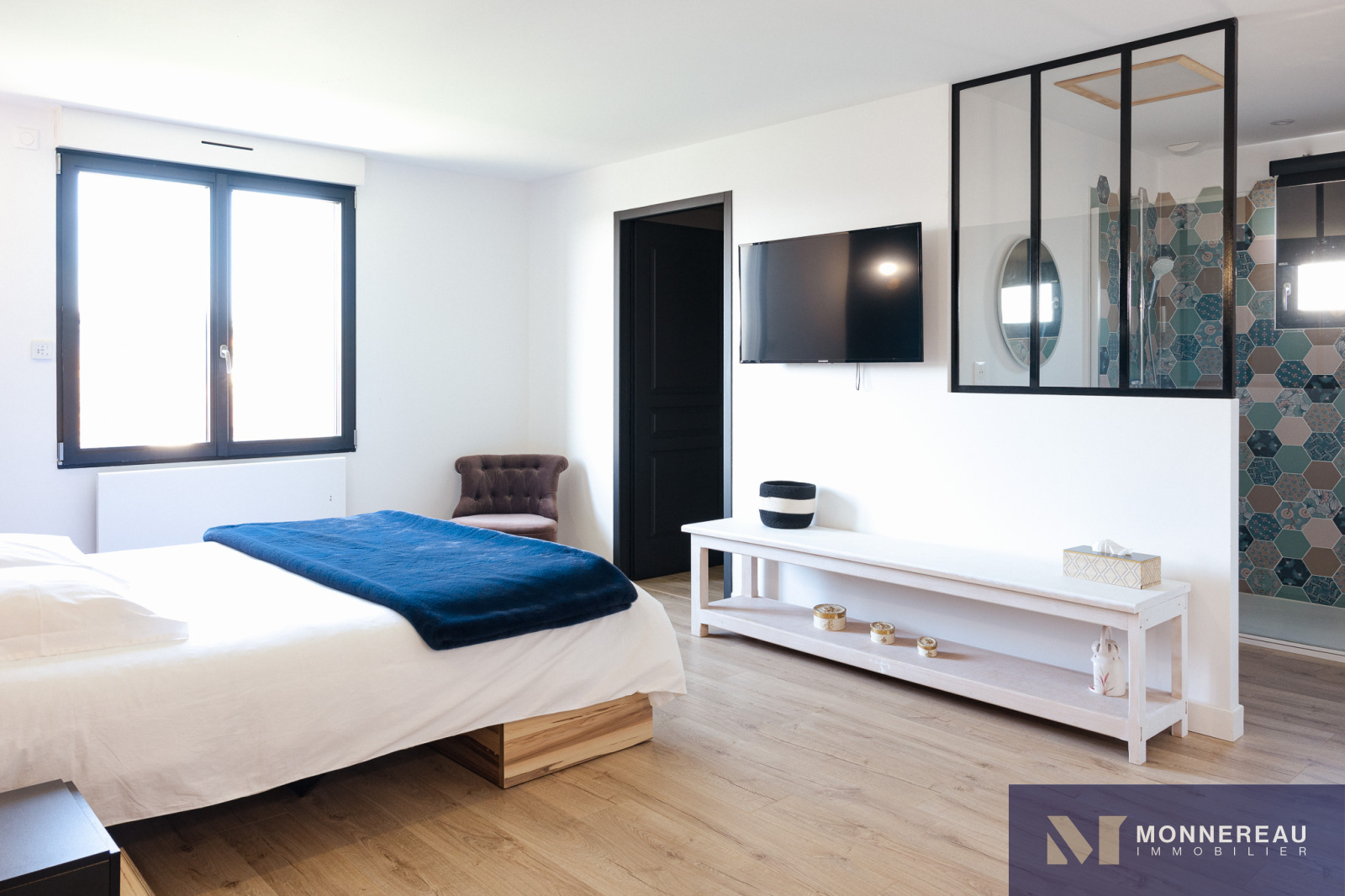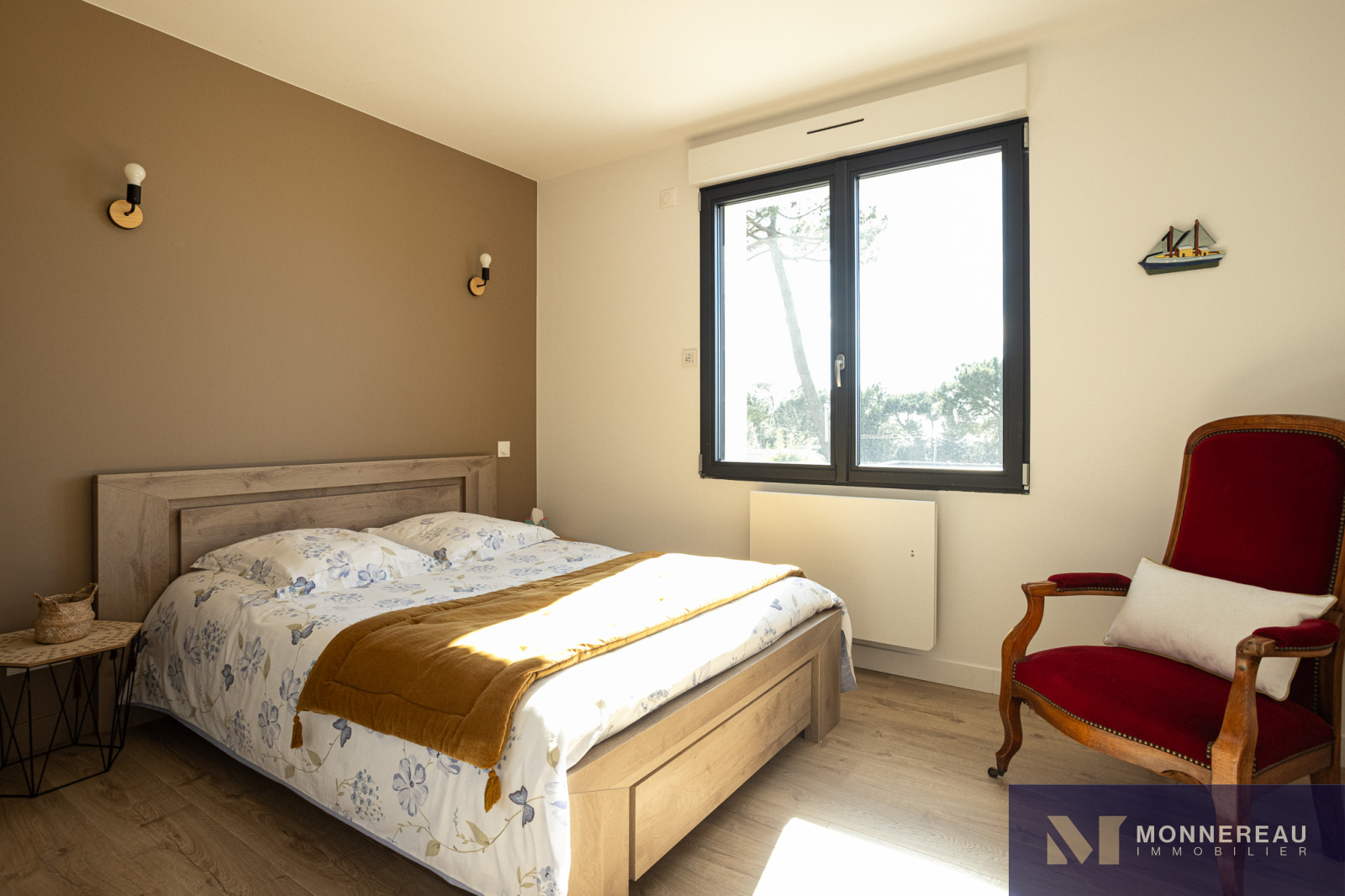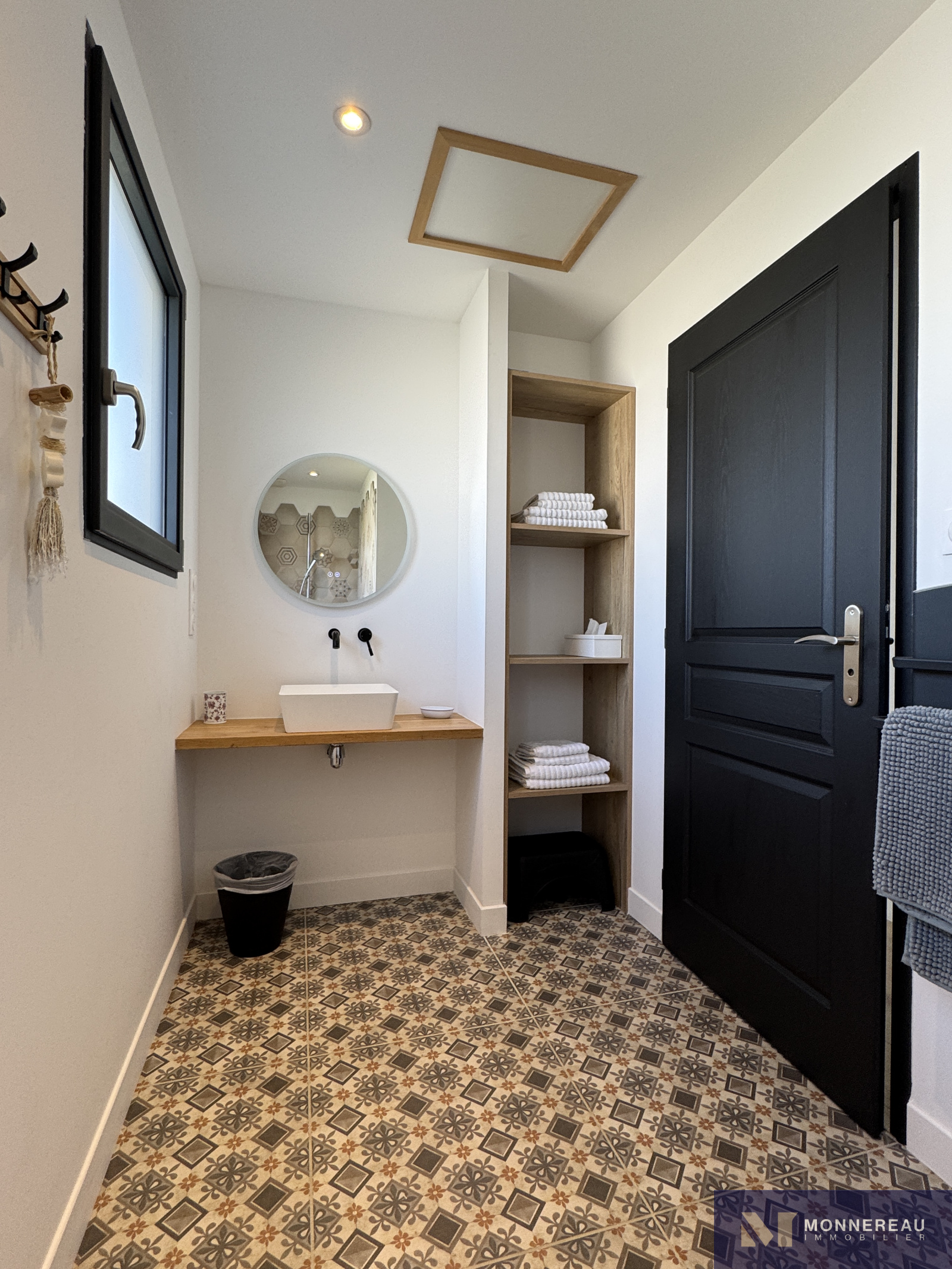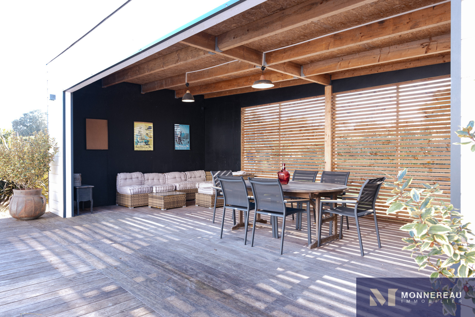 SAINT-PALAIS-SUR-MER (17) - Cette villa édifiée sur un terrain clos de 1589 m² avec dépendances profite d'une situation exceptionnelle. Elle a fait l'objet d'un grand soin. C'est une maison ancienne, en pierre, qui a été transformée et agrandie très récemment. De franche inspiration Californienne, la bâtisse et le pool-house entoure la piscine et la terrasse en cumaru. Il y régne une atmosphère reposante dès plus agréable. Un toit terrasse prolonge le salon de l'étage. En position dominante, le panorama avec vue sur l'océan y est vraiment remarquable. Ce cadre est priviligié ! Vaste séjour avec cuisine ouverte et cave climatisée derrière une verrière en métal du plus bel effet. Quatre chambres dont deux suites très agréables et intimes. Garage et carport au bout de l'allée goudronnée. Meublée et entièrement équipée ! Elle est belle et en parfait état !