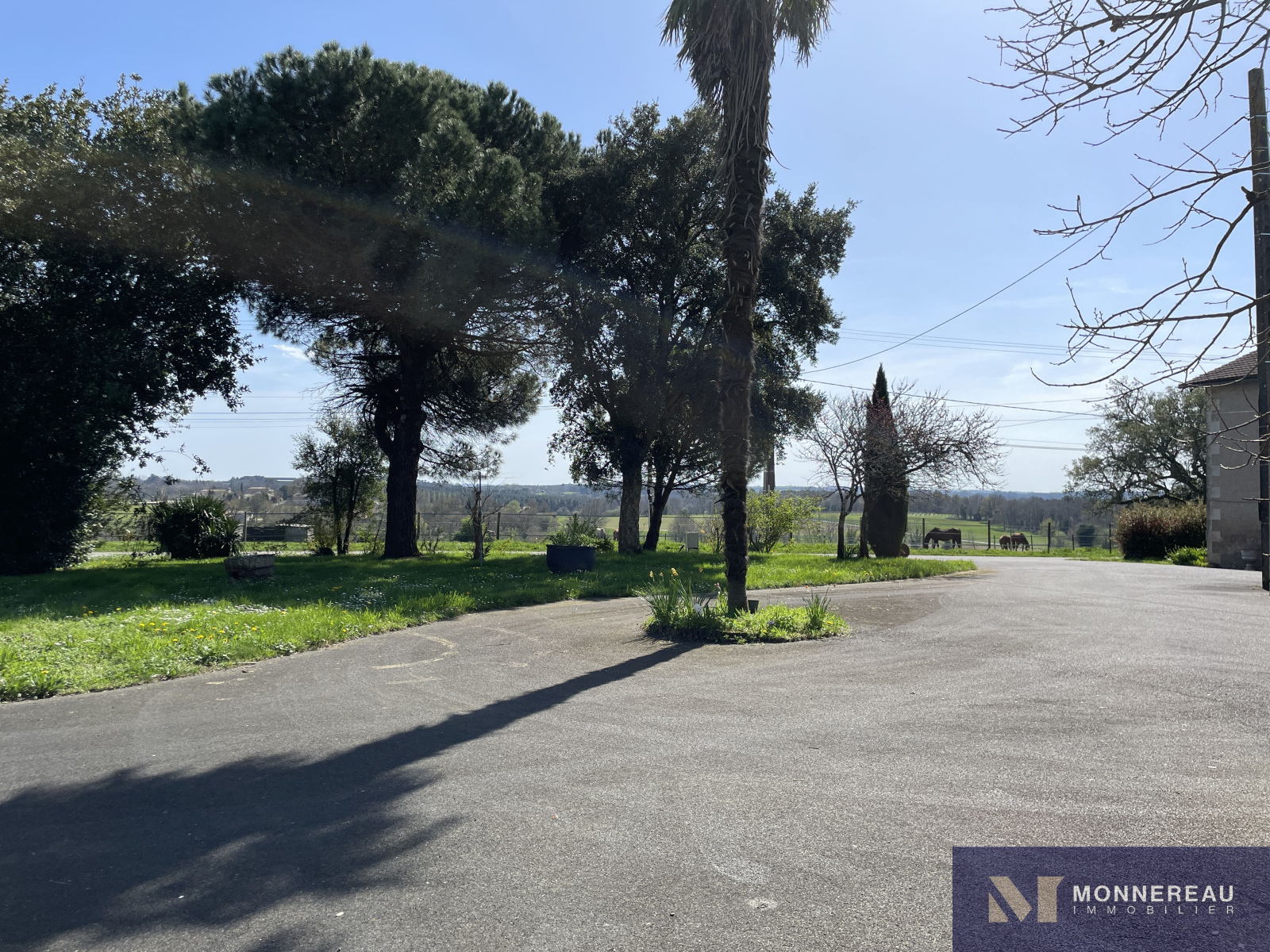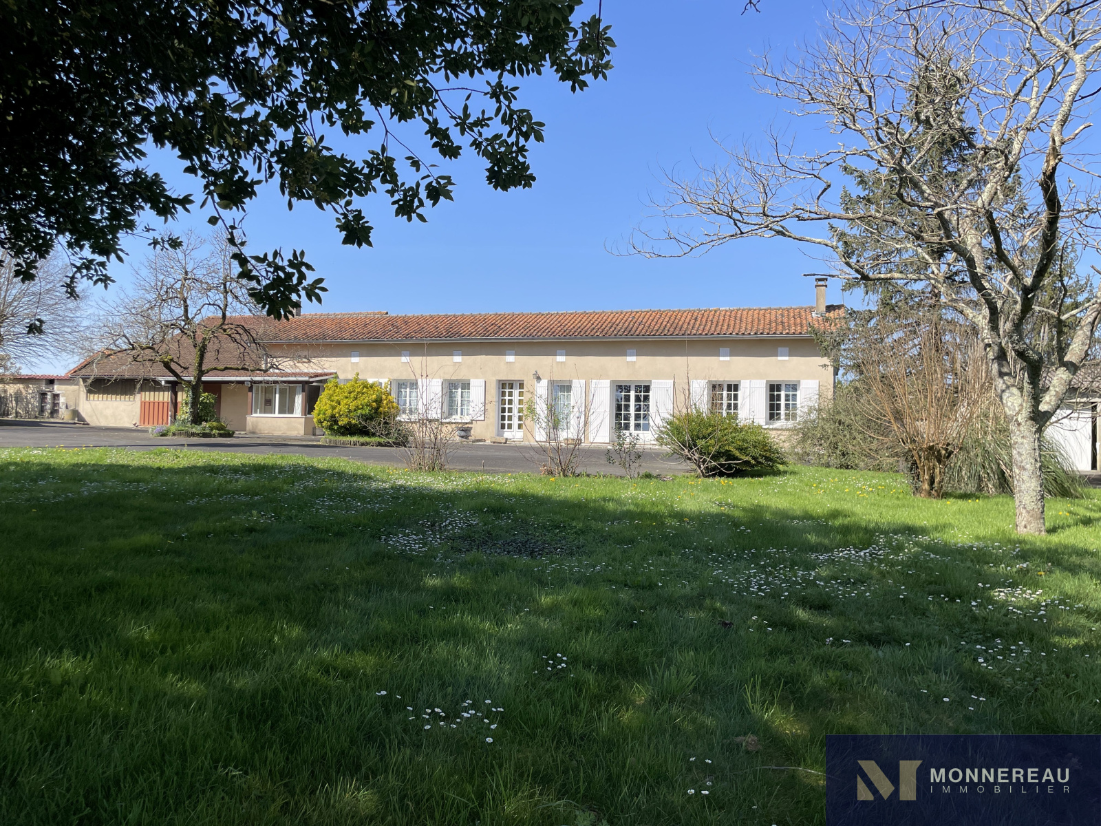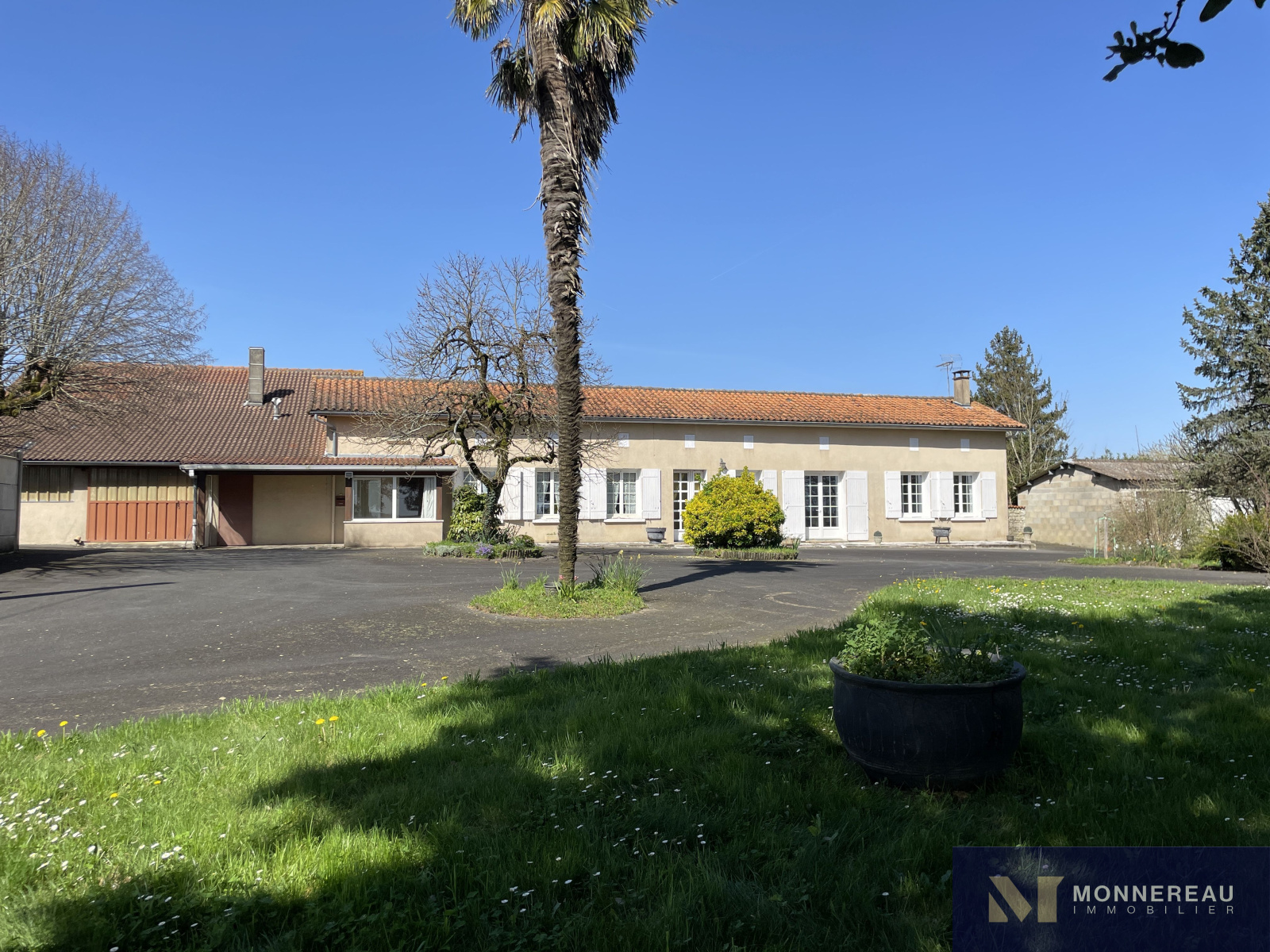 15 min Sud de BARBEZIEUX (16) - Proche échangeur N10 pour BORDEAUX et ANGOULEME. Dans un environnement calme et dégagé avec façade plein sud. Maison ancienne de 186 m² habitables de plain-pied édifiée sur un terrain de 6 784 m². Bien qu'elle ne soit pas au goût du jour elle est habitable et bien entretenue. Grande cuisine aménagée, vaste arrière-cuisine avec entrée de service, séjour avec cheminée, trois chambres, deux salles d'eau dont une avec douche italienne récente et lingerie. Chauffage central au gaz. Double garage non attenant. Vaste dépendance attenante à la maison en trois compartiments à usage de garage et atelier. Jardin naturel sur l'arrière et confortable cour goudronnée sur l'avant. En position dominante, les lieux offre un agréable point de vue, de chaque côté !