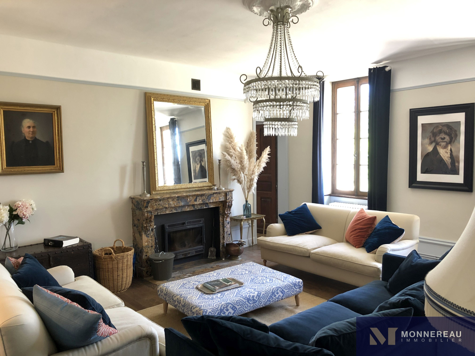 boudoir/bibliothèque parquet, cheminée décorative