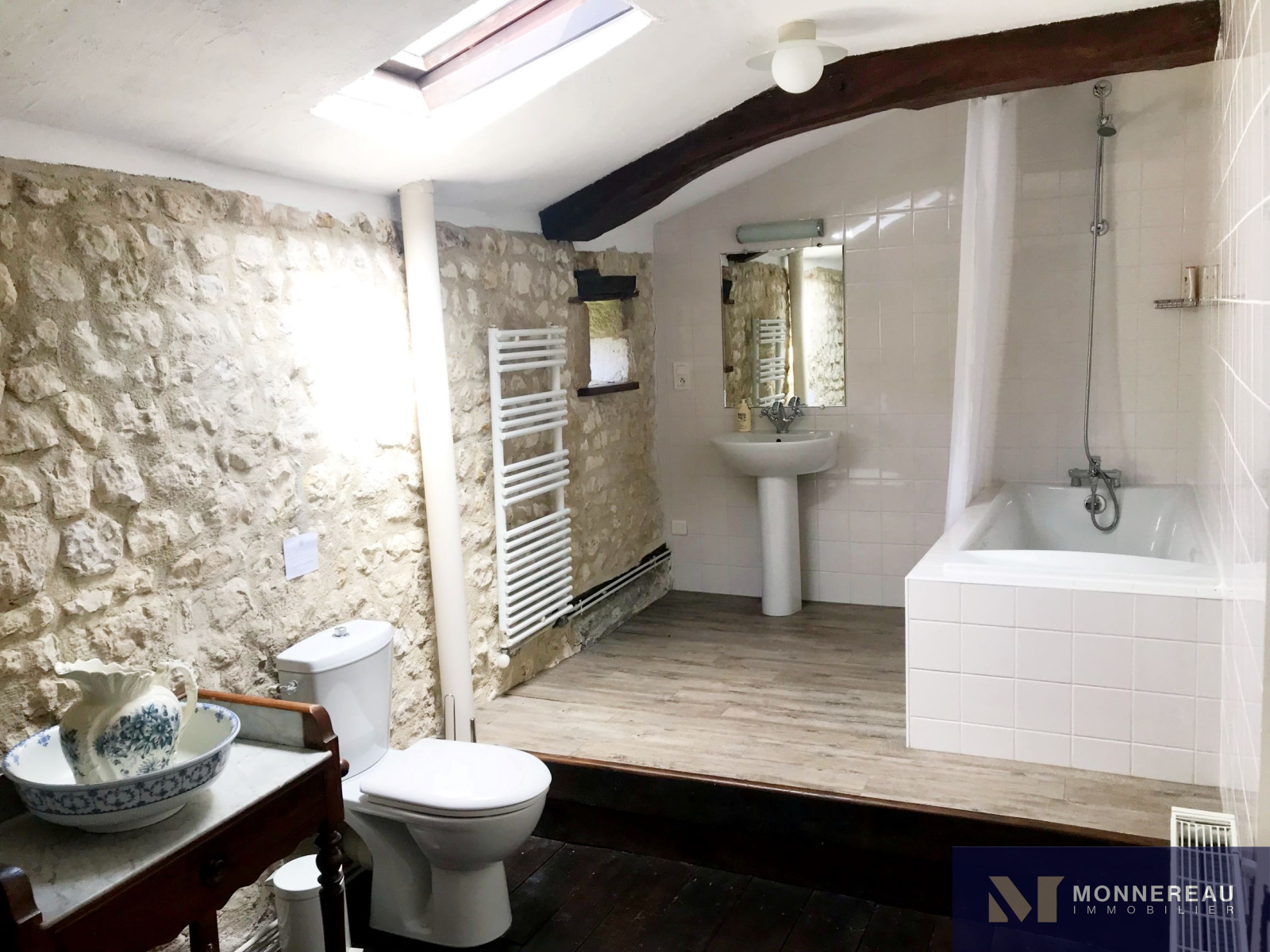 chambre suite avec baignoire, salle d'eau+wc attenants, parquet bois