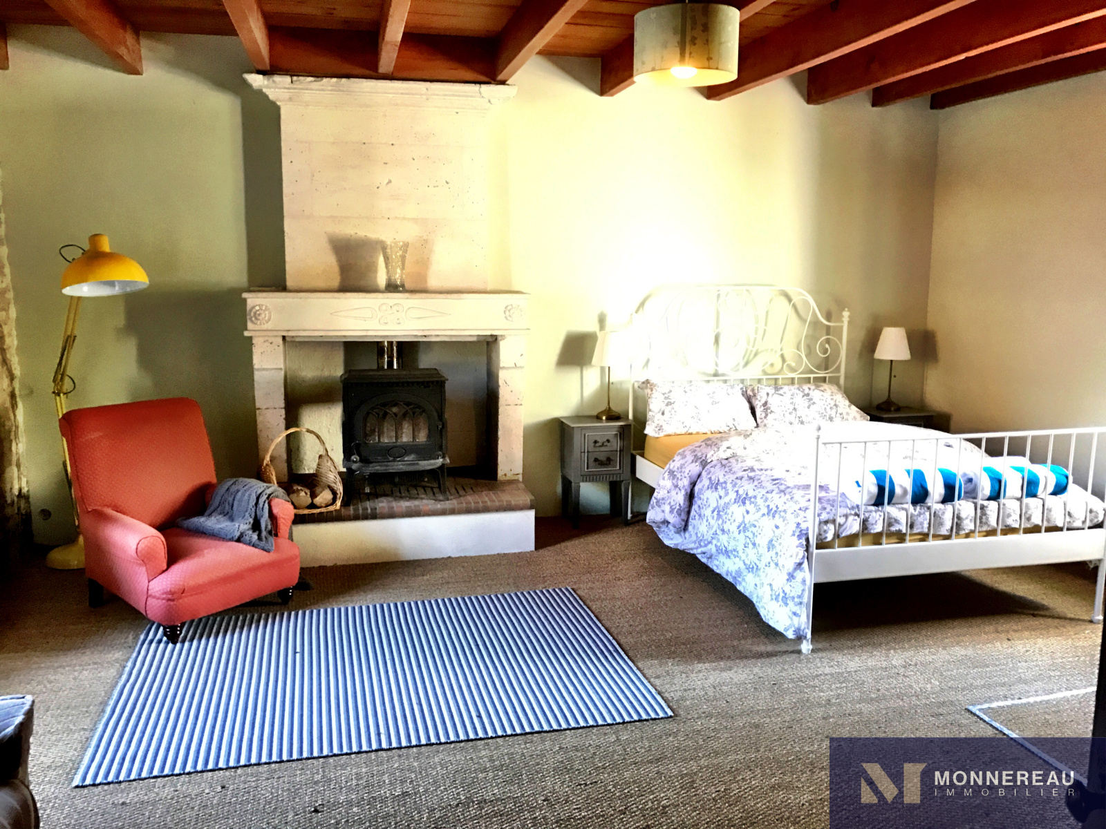parquet, cheminée avec poêle insert