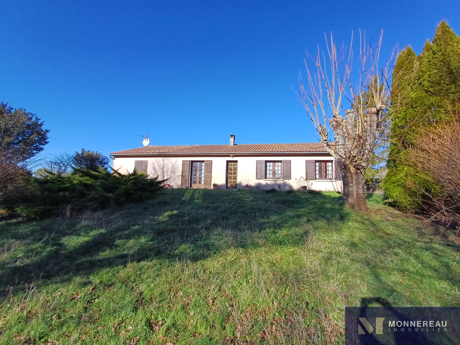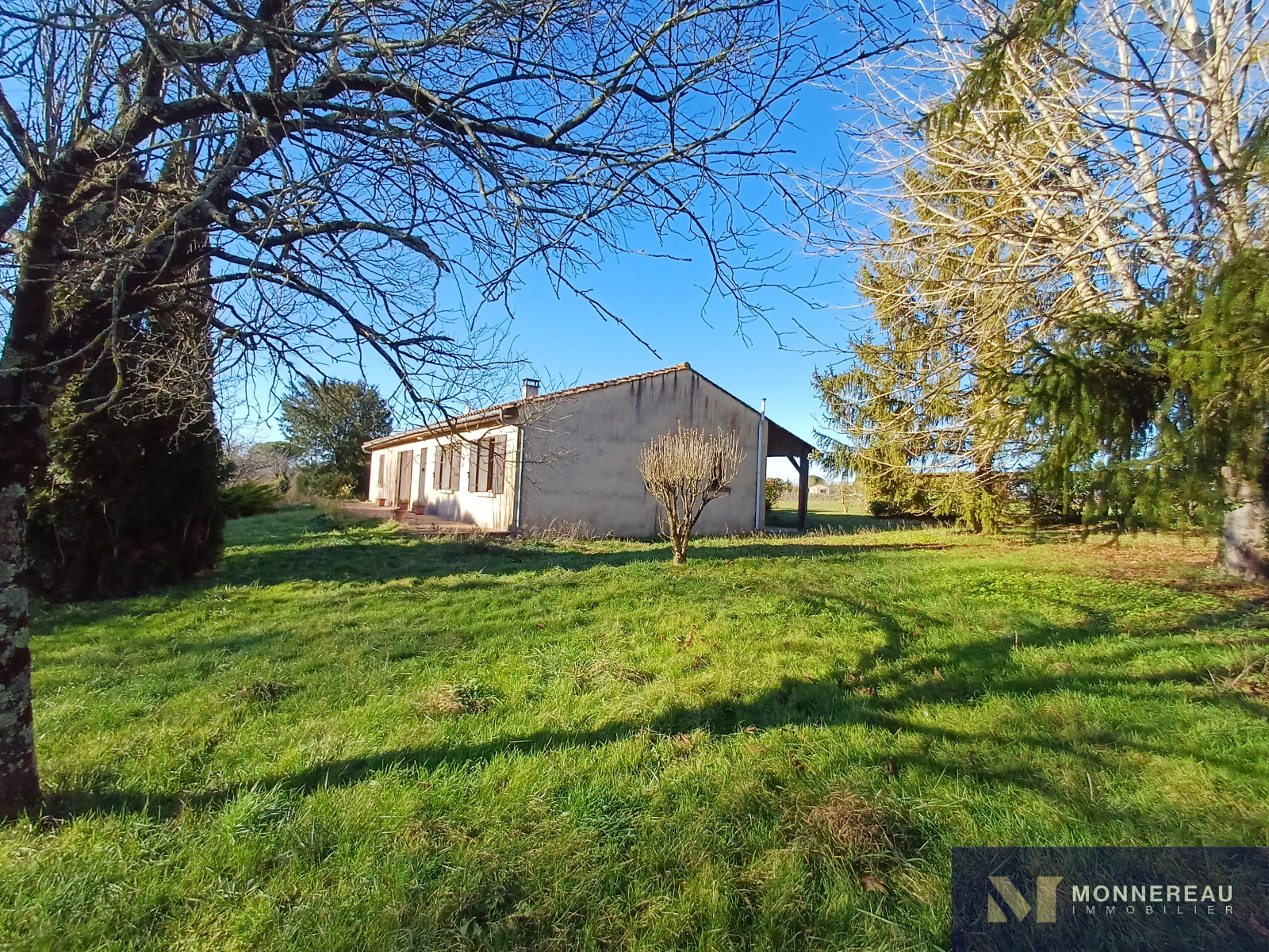 SAINT BONNET (16) - Maison individuelle d'environ 78 m² habitables construite dans les années 80 édifiée sur un terrain arboré d'environ 3763 m². Entrée, salon avec cheminée/insert, cuisine équipée, arriére cuisine/buanderie, deux chambres, salle de bains. Garage attenant d'environ 50 m² avec cave et espace rangement en mezzanine. Terrasse. Barbecue. Chauffage central au bois communal. Cumulus. Menuiseries bois simple vitrage. Assainissement individuel non conforme.