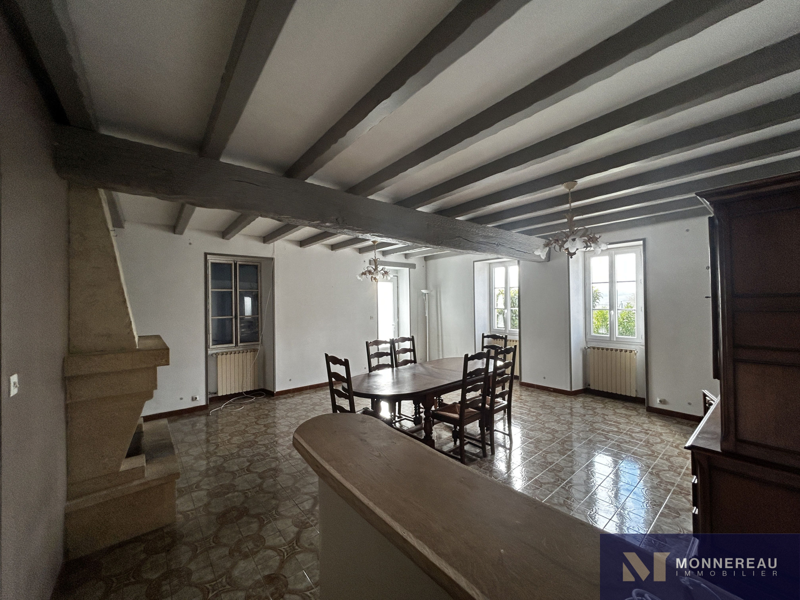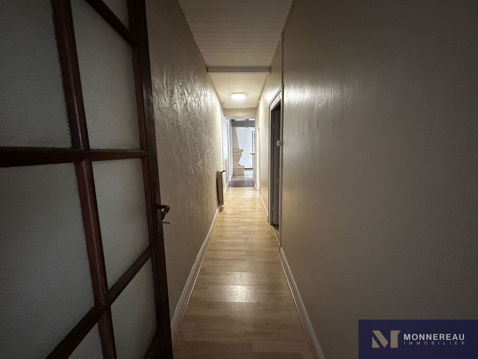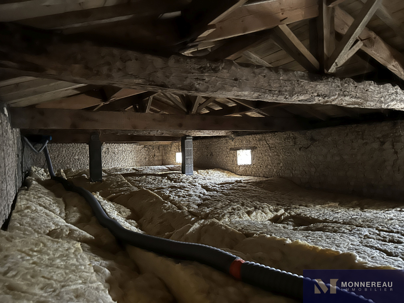 ARTHENAC (17) - Entre ARCHIAC et JONZAC - Longère saintongeaise de 128 m² habitables de plain-pied édifiée sur un terrain clos et arboré d'environ 1700 m². Il y a des travaux à prévoir, il faut également repenser la distribution pour exploiter tout son potentiel. Cuisine, salon, salle à manger avec cheminée, trois chambres, salle d'eau et arrière cuisine. Chauffage central au fuel. Assainissement à créer. Menuiserie PVC. Puits. Barbecue couvert. Sur l'arrière, ancien atelier de menuiserie de 150 m² au sol ainsi qu'un garage idéal pour camping car. Charme indéniable de la pierre. Gros-oeuvre sain. Nuisance de bordure de route. Exclusivité !