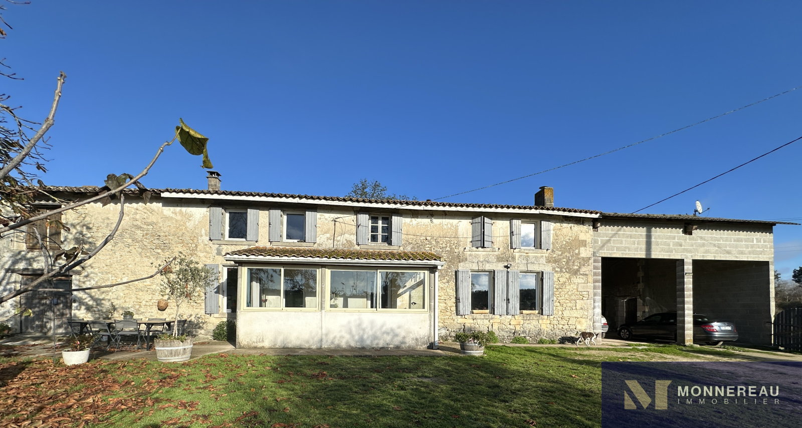 BARBEZIEUX (16) - A 12 min au Sud. Maison en pierre d'environ 159 m² habitables avec terrain d'envion 2065 m². Son orientation au sud lui confère une luminosité très agréable. Vue dégagée sur la campagne. Les espaces de vie salon, salle à manger, cuisine développent près de 67 m². C'est très chaleureux avec le poêle à granulés ! Au rez-de-chaussée, trois chambres, salle de bains, cellier et dressing. L'étage dispose déjà de deux chambres, mais il est possible d'aménager deux pièces supplémentaires. Garage/appentis. L'environnement calme et bucolique des lieux invite au repos en famille.