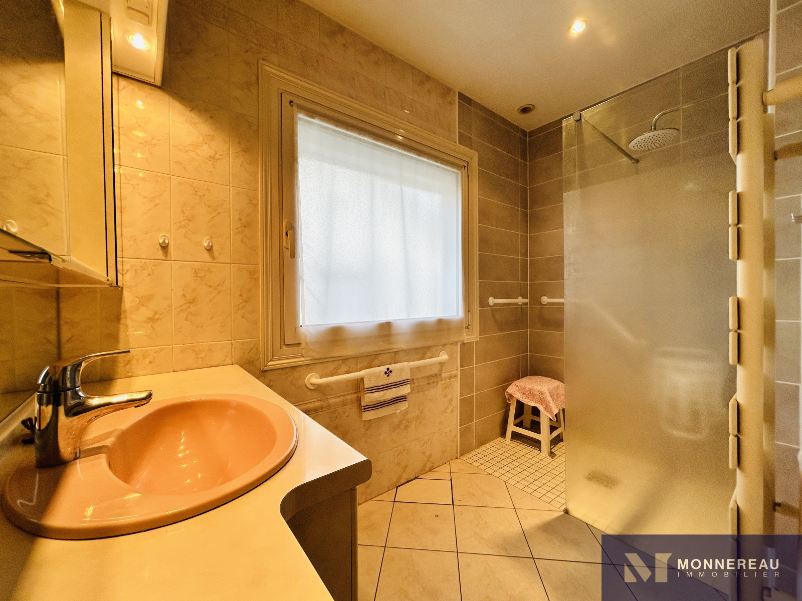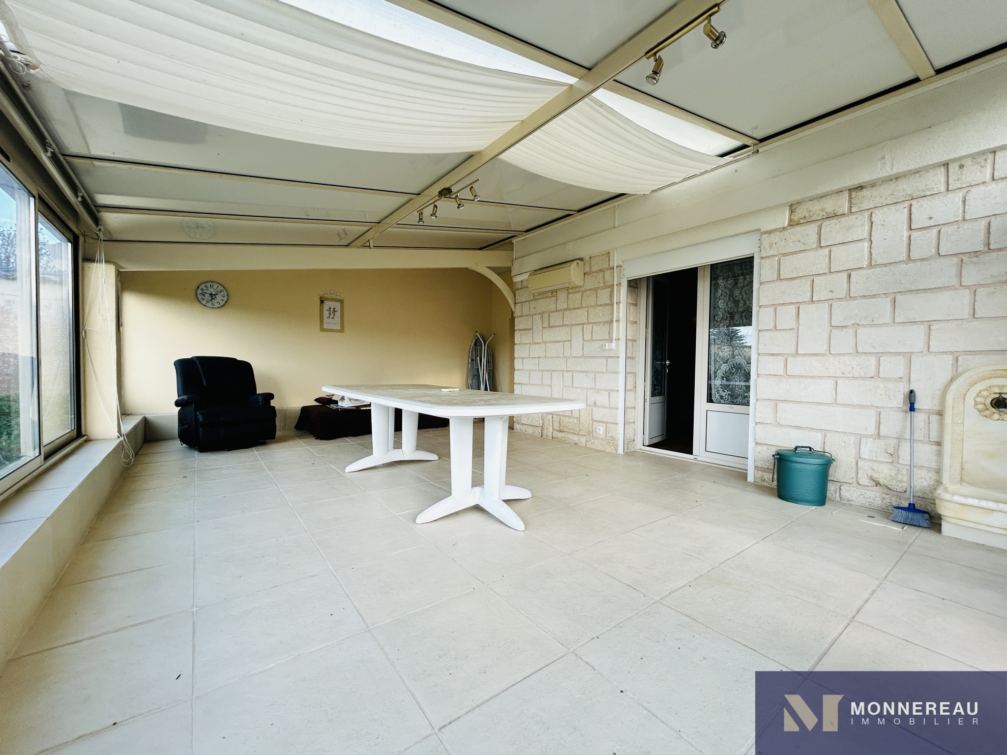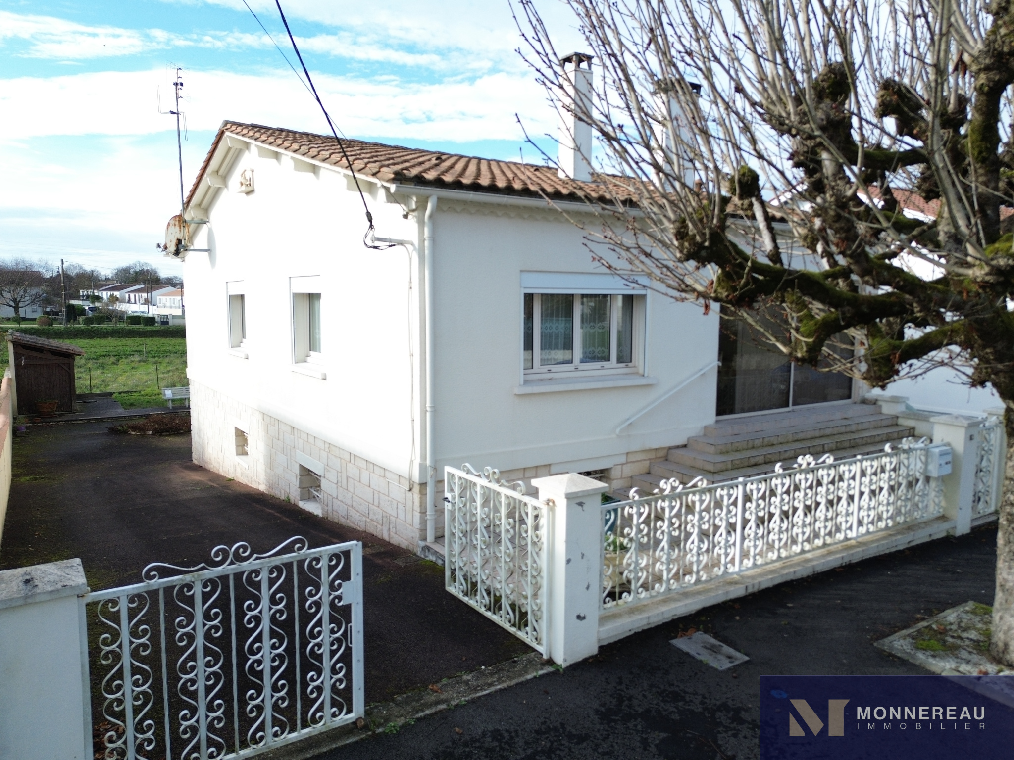 JONZAC (17) - Proche du centre-ville, cette maison individuelle est située dans un quartier calme et agréable. Elle profite d'un terrain clos de 444m². Elle est en bon état et très bien entretenue. Véranda, séjour lumineux avec insert bois, cuisine séparée, deux chambres, salle d'eau et grenier aménagée en partie sous toiture. En rez-de-jardin, autre véranda spacieuse et chauffée, chambre, cuisine d'été, pièce à aménager, atelier et cave. Des travaux sont à prévoir. Abri de jardin. Partie enherbée sur l'arrière.