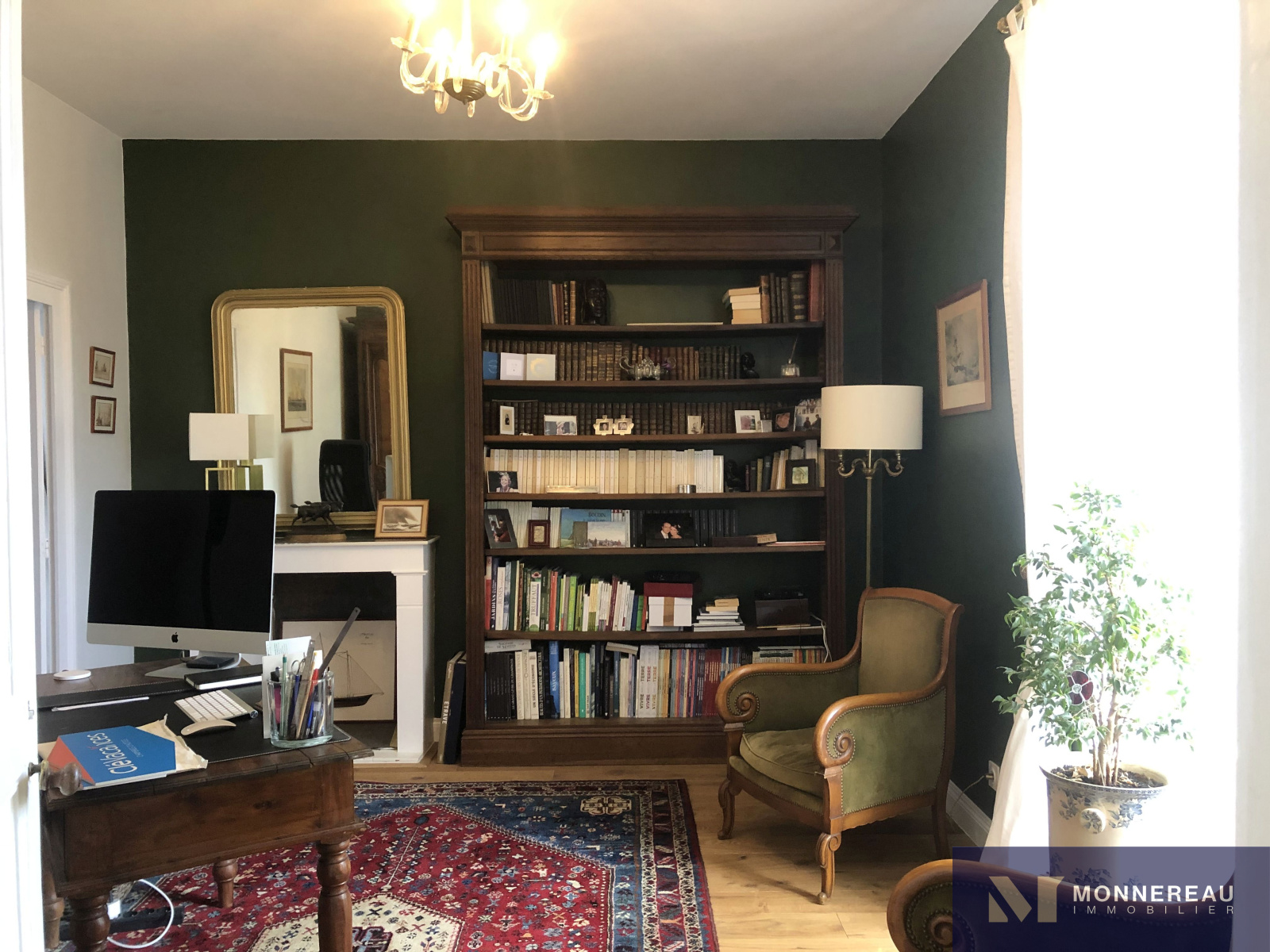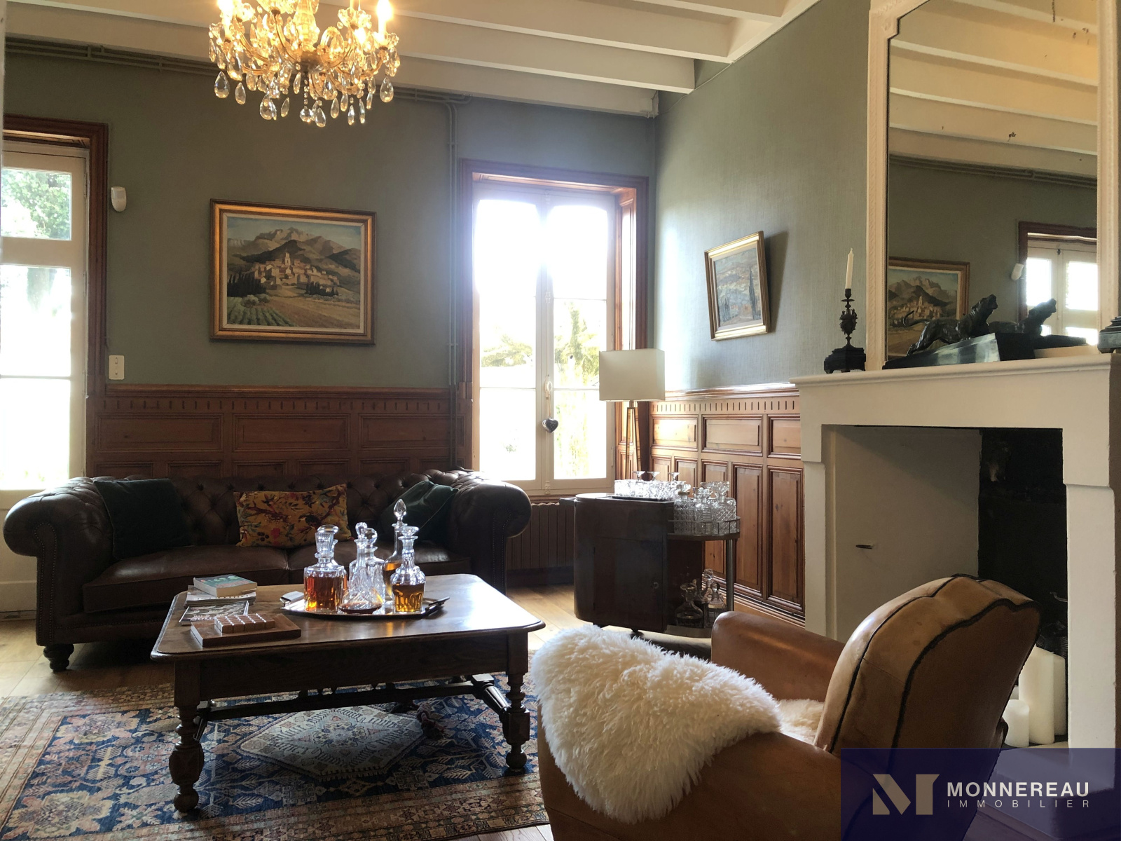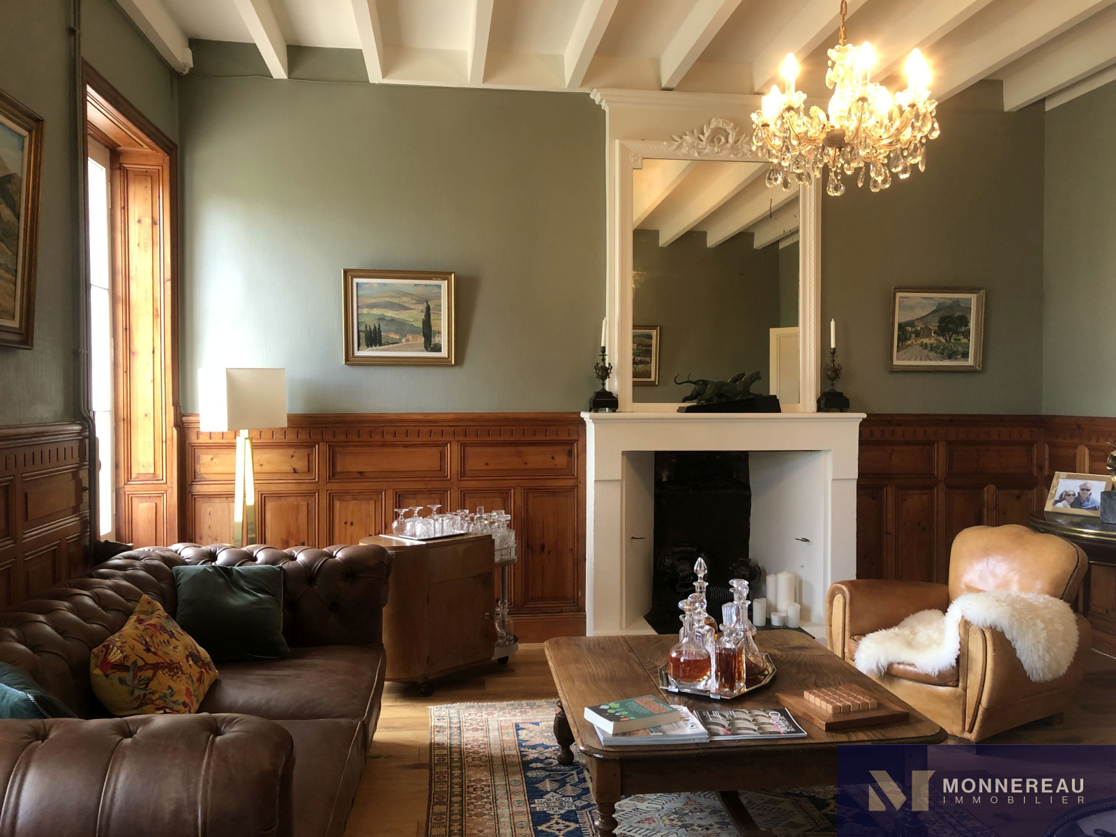 Sol parquet contre-collé, cheminée, boiseries