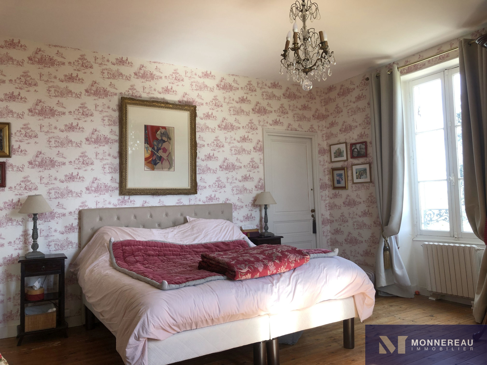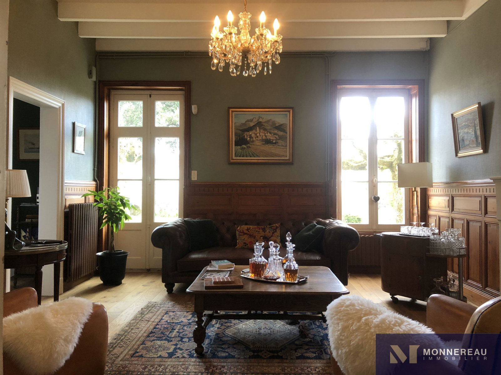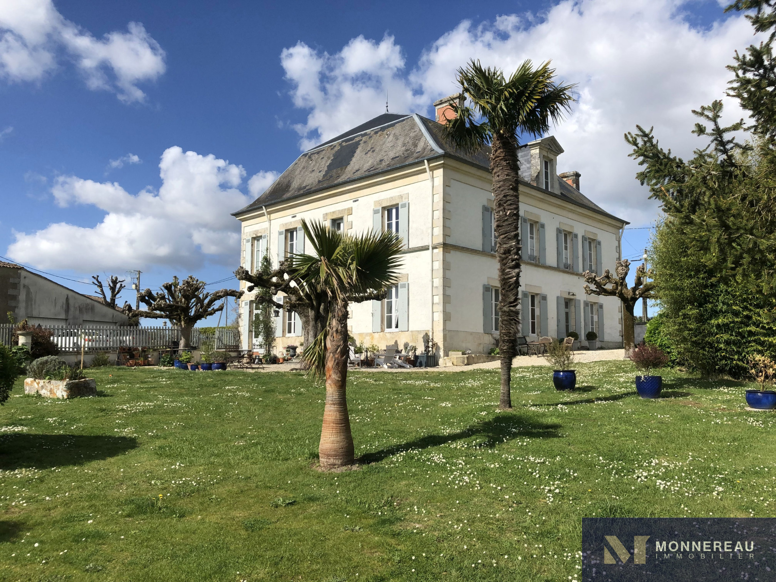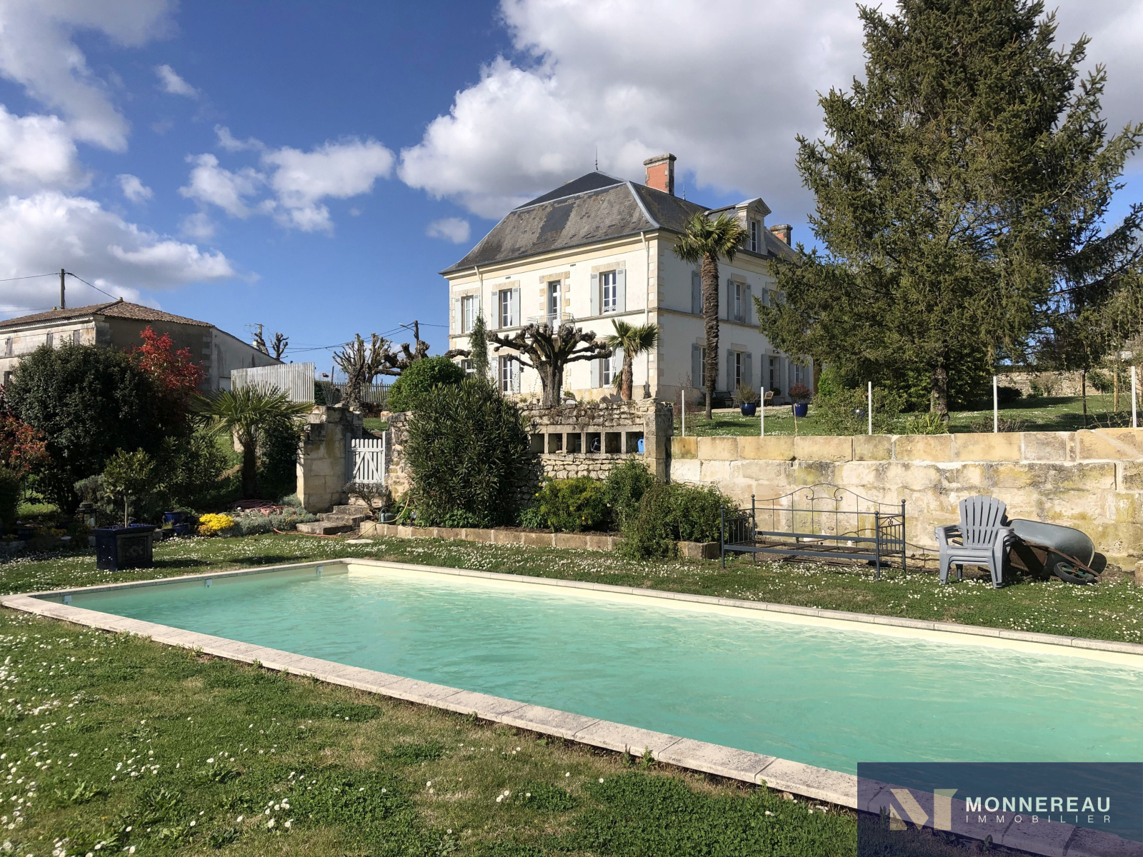 Proche de MORTAGNE SUR GIRONDE (17) - En position dominante, cette belle demeure bourgeoise profite d'une vue dégagée sur l'estuaire qui se trouve à moins de 5kms. Edifiée dans un hameau, sur un terrain en partie clos de 4863m², elle offre un environnement au calme sans être isolé. La bâtisse a été rénovée avec soin et respect sur 285 m² habitables. Elle est très élégante, sobre. Le choix des matières, les tons pastels, les hauteurs sous plafond la rendent plus qu'agréable. Hall d'entrée sur dégagement escalier avec sol d'origine en ciment peint. Grande cuisine récente, moderne et très accueillante. Salle à manger avec cheminée. Salon avec cheminée et boiseries très cosy. Bureau et chambre d'hôtes avec salle d'eau. L'étage dispose de 5 autres chambres dont une suite avec salle de bains, une avec dressing et sanitaires. Autres salle de bains et salle d'eau. Le fantastique volume du grenier sous charpente offre un potentiel pour ceux qui auraient besoin de plus d'espace. Le jardin entouré de clôture en ganivelle est charmant. A l'écart et avec un accès indépendant, un ravissant gîte de 48 m² habitables a été récemmment aménagé. Là aussi la sobriété et l'authenticité sont ses point forts. Le mariage des terres cuites au sol, des murs en pierre et des couleurs douces confère au lieu une atmosphère inimitable. Un magnifique chêne vert, impressionnant par sa taille, abrite une terrasse en bois intime. L'espace paysager avec piscine en contre bas, bien exposé, est idéalement situé. Il se prolonge par une partie plus naturelle avec un ancien forage. A l'entrée de la propriété, une ancienne maison saintongeaise de deux pièces à réhabiliter et trois garages complétent cet ensemble remarquable.