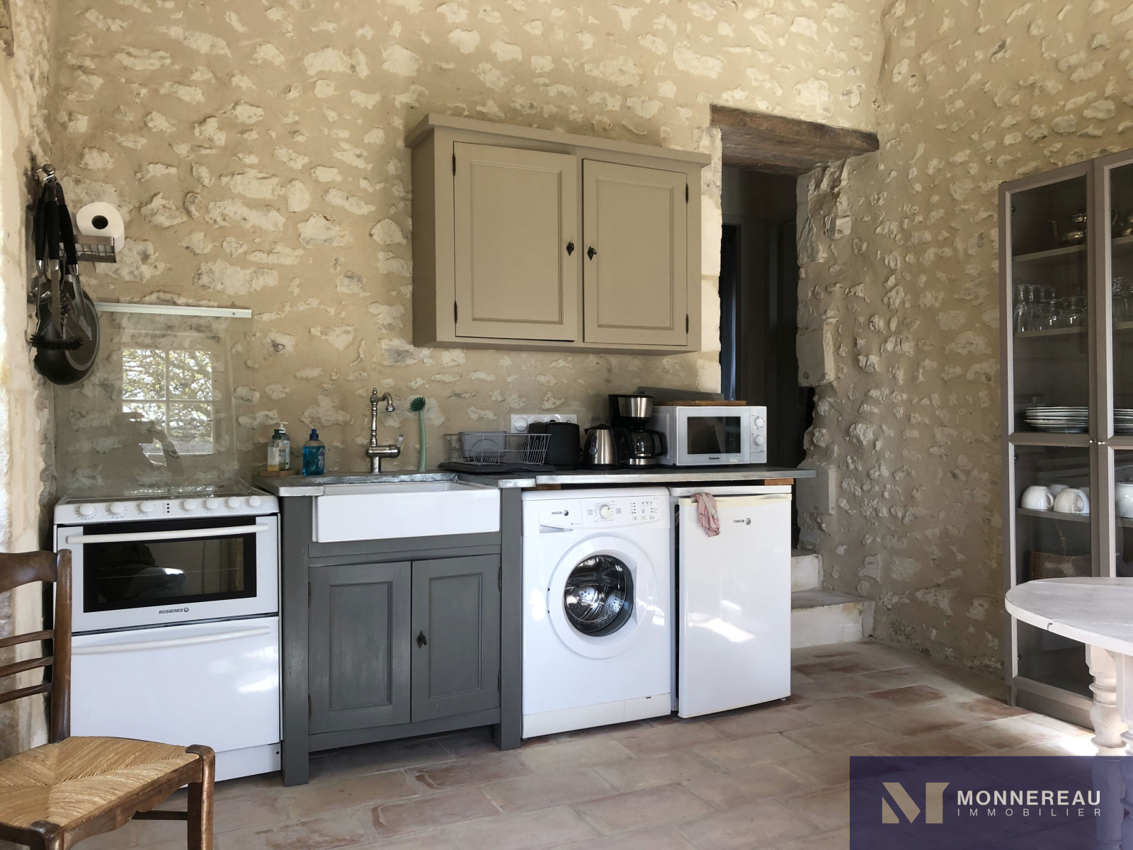Sol béton, point d'eau, adoucisseur, partie cave et réserves