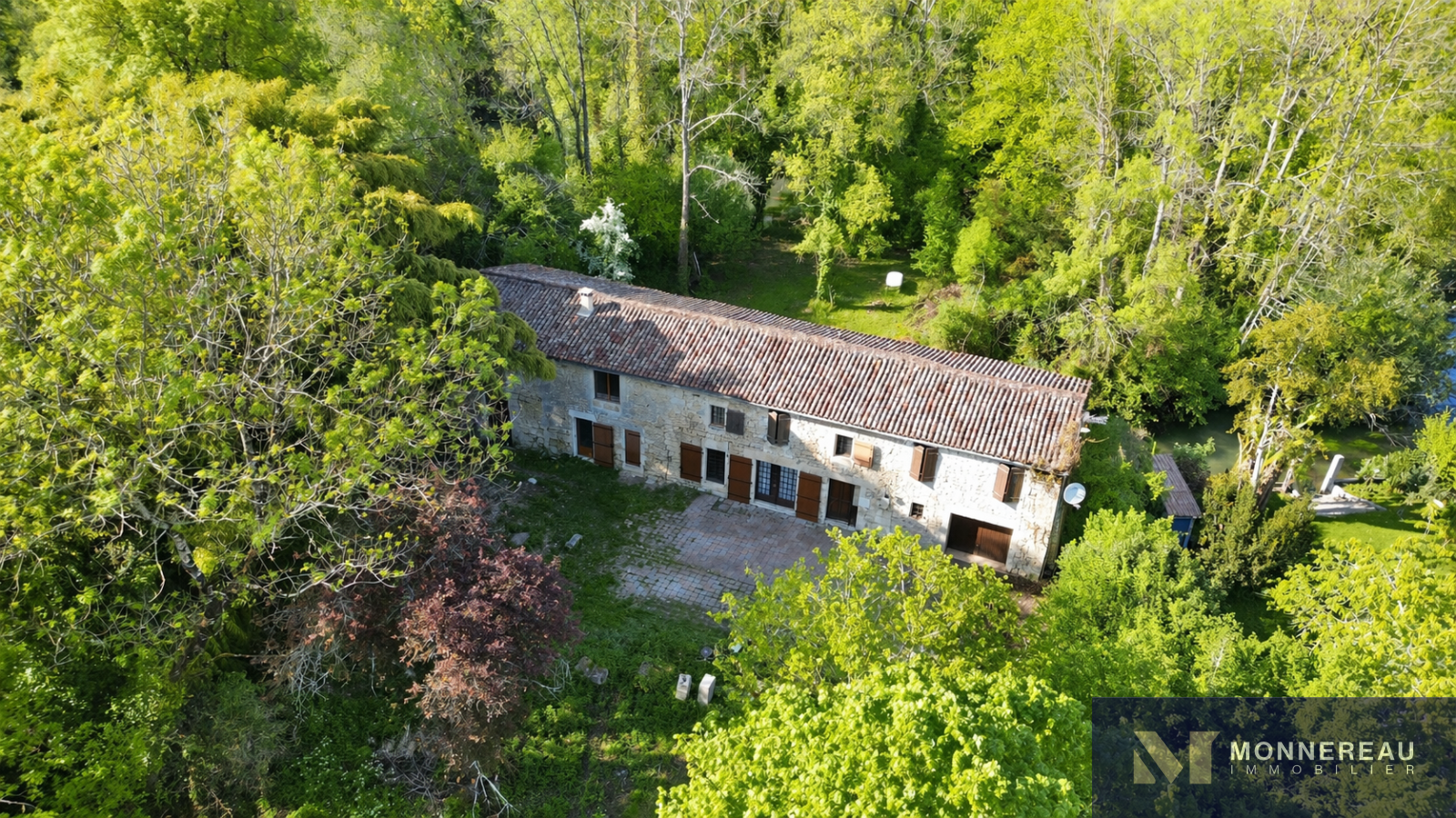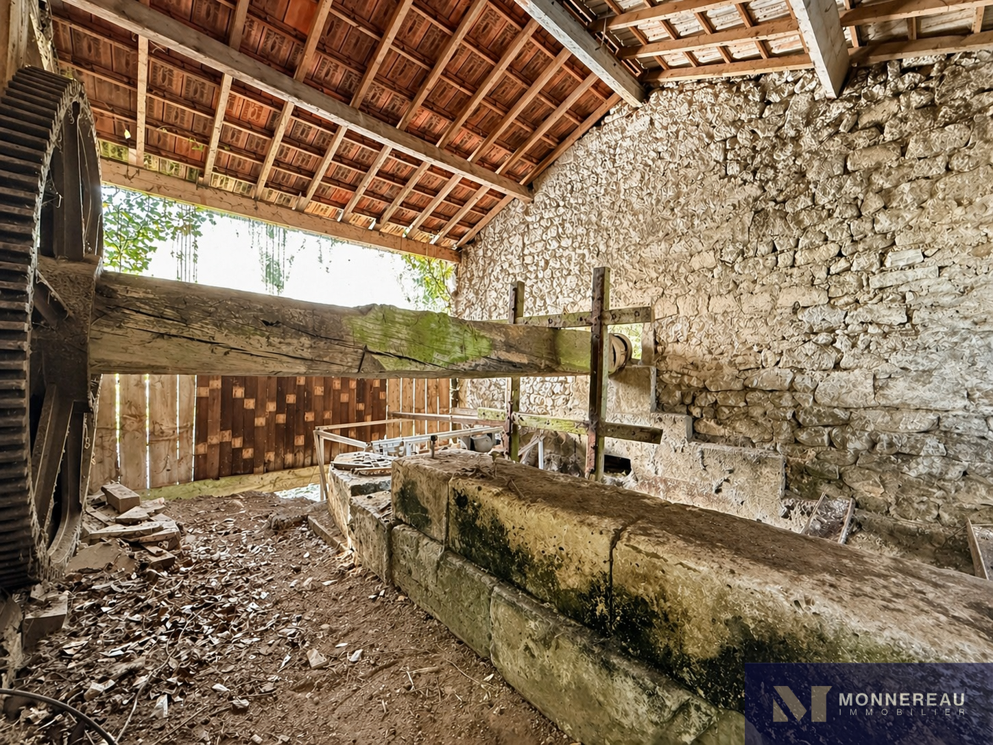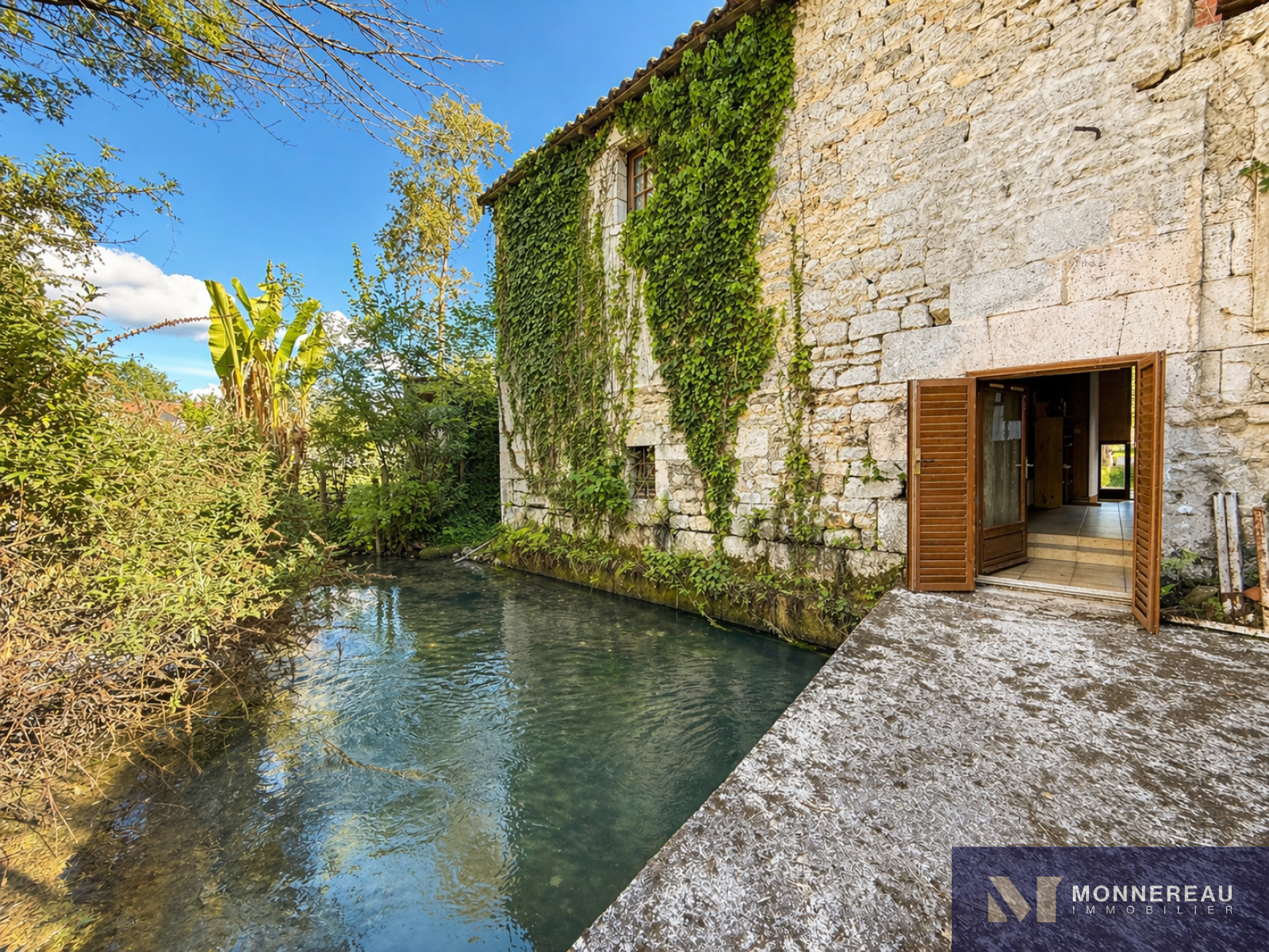 Exclusivité. Au coeur de Ruelle-sur-Touvre (16), ancien moulin d'environ 150 m² habitables, dans un environnement privilégié avec accès direct à la Touvre. Il est édifié sur un terrain arboré d'environ 5 000 m², sans vis-à-vis, offrant un cadre rare et préservé. Derrière son portail, la propriété dévoile un ensemble au cachet authentique avec sa belle façade en pierre. Potentiel d'évolution remarquable. Entrée, pièce de vie avec cuisine, salon cathédrale avec cheminée et insert, wc et cave. A l'étage, quatre chambres et une salle de bains. Dépendance attenante avec embarcadère et garage. Des travaux sont à prévoir. Projet de rénovation à forte valeur ajoutée dans un cadre naturel unique. Un bien singulier et rare !